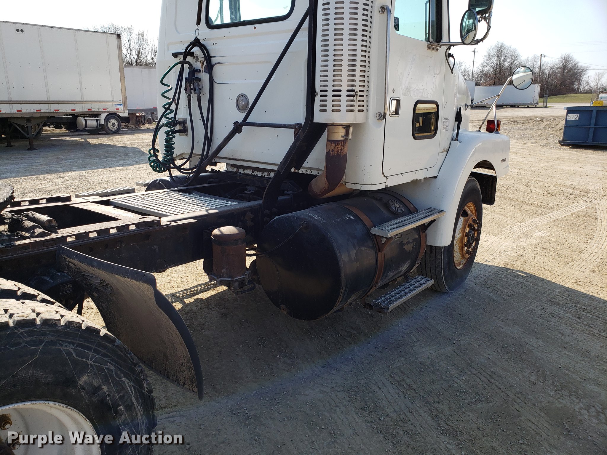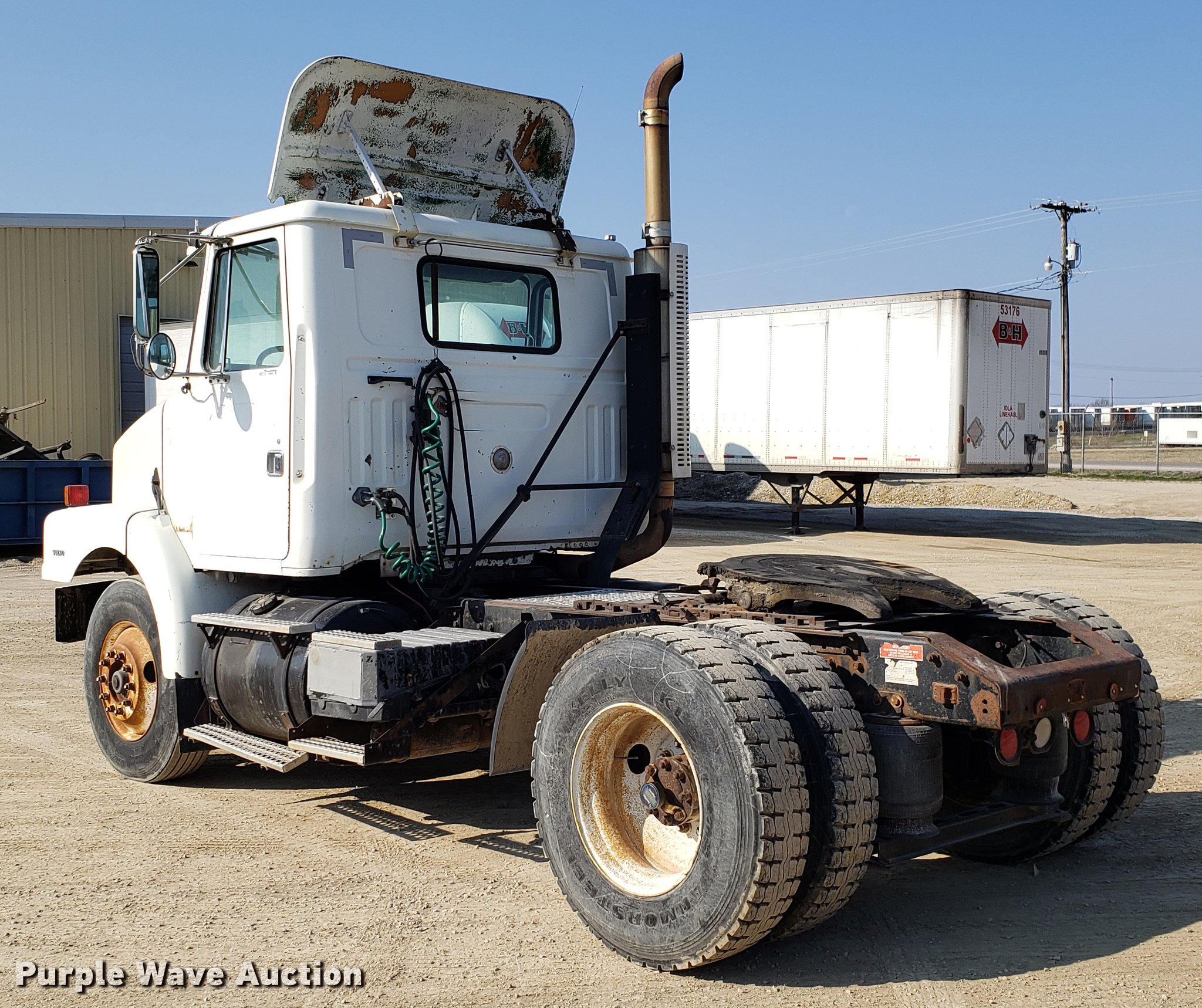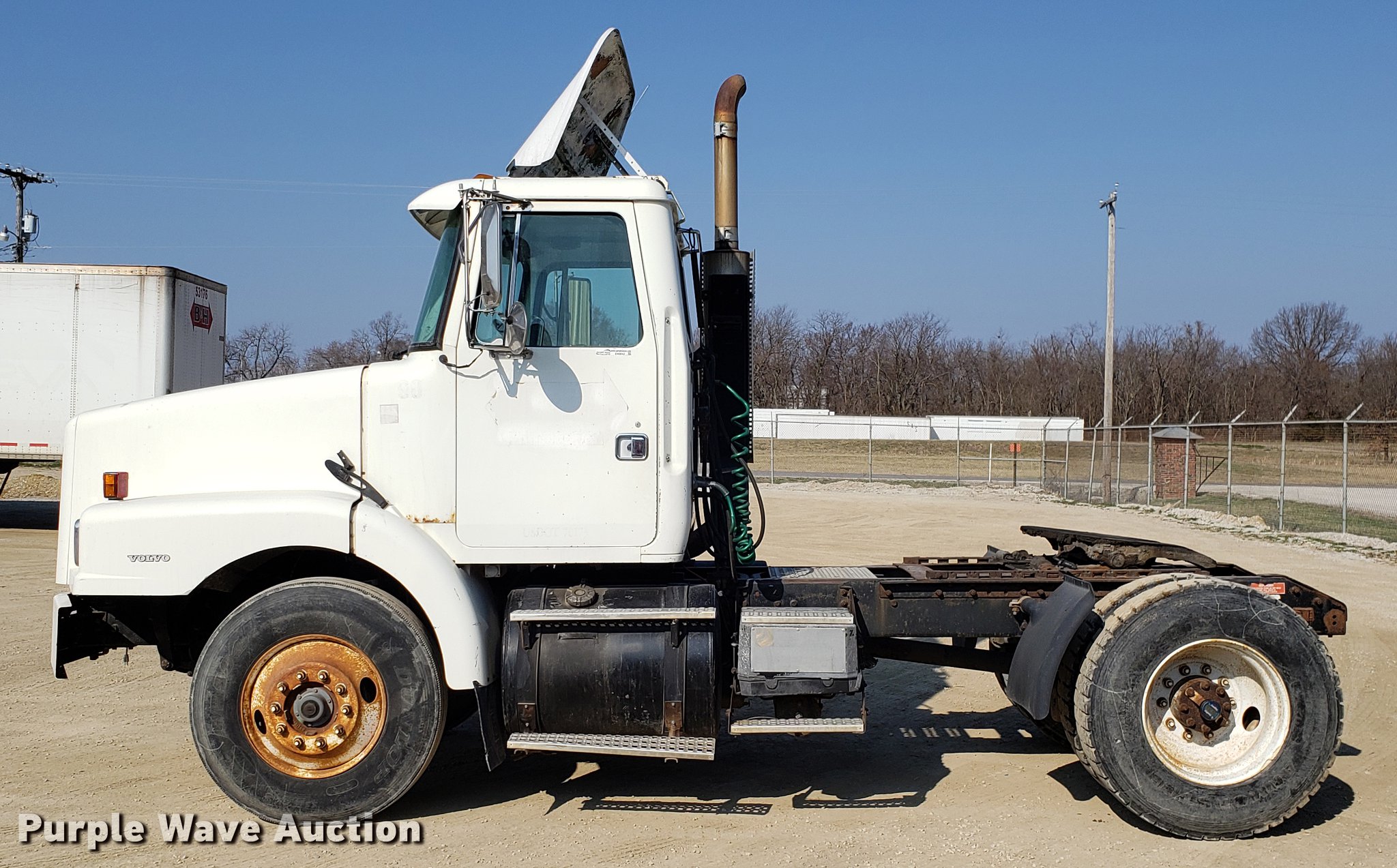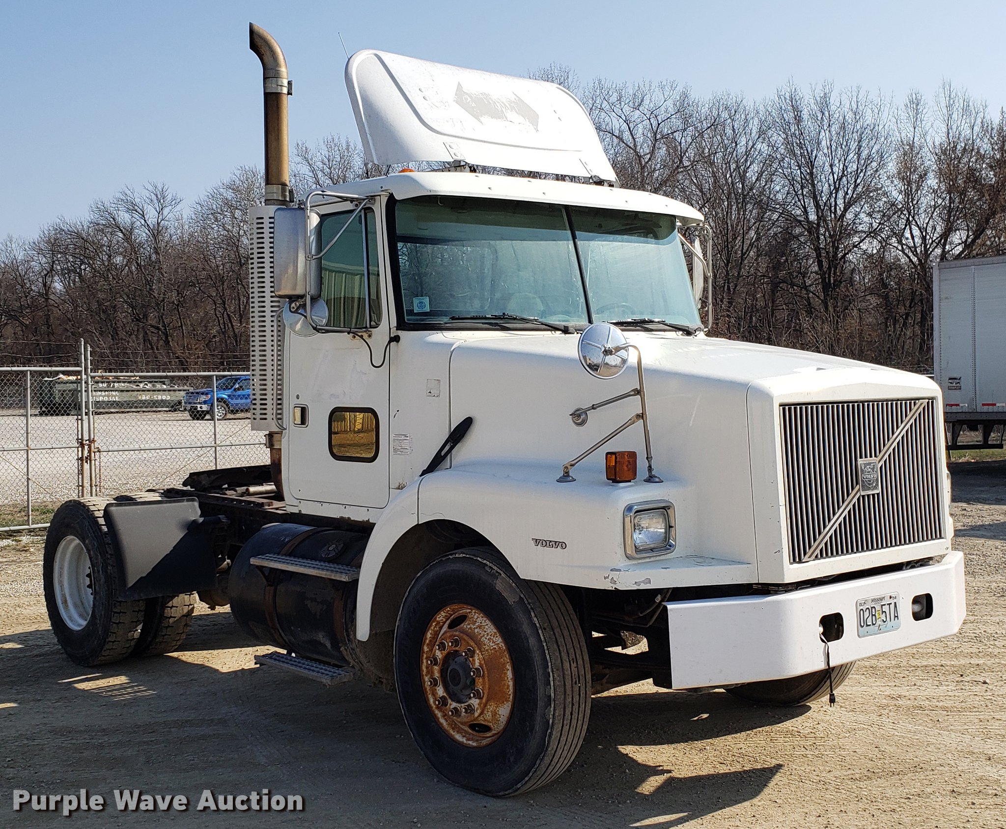 Purple Wave is selling a used Truck Tractor in Missouri. This item is a 1996 Volvo WG semi truck with the following: 129,508 miles on odometer, Detroit Diesel Series 60 12.7L L6 turbo diesel engine, Eaton Fuller nine speed manual transmission, Single axle, AC and heat, Cruise, AM/FM/CD, Power and heated mirrors, Air suspension seat, Single rear exhaust stack, Fixed fifth wheel plate, Dual fuel tanks, Air suspension, Air brakes, 11R22.5 tires, GVWR 32,000 lbs, Check engine light on