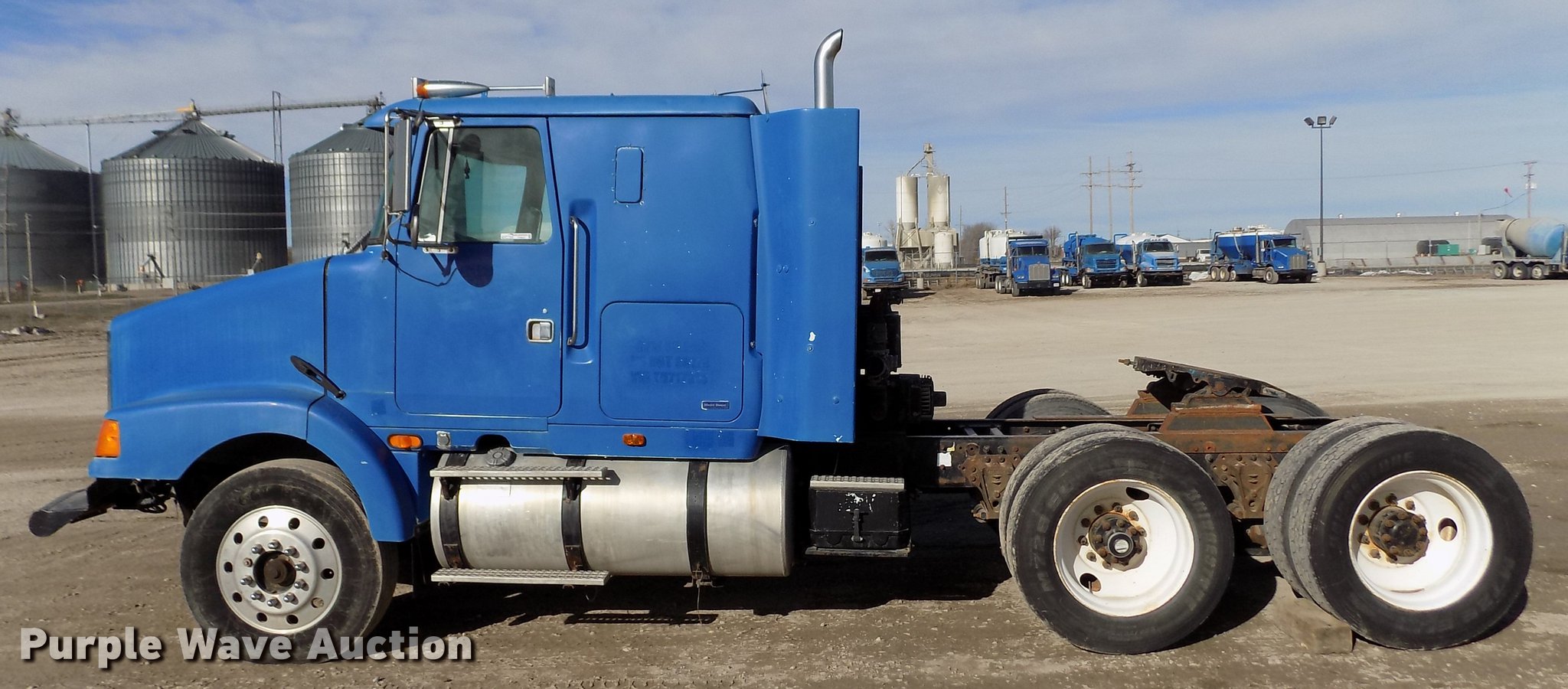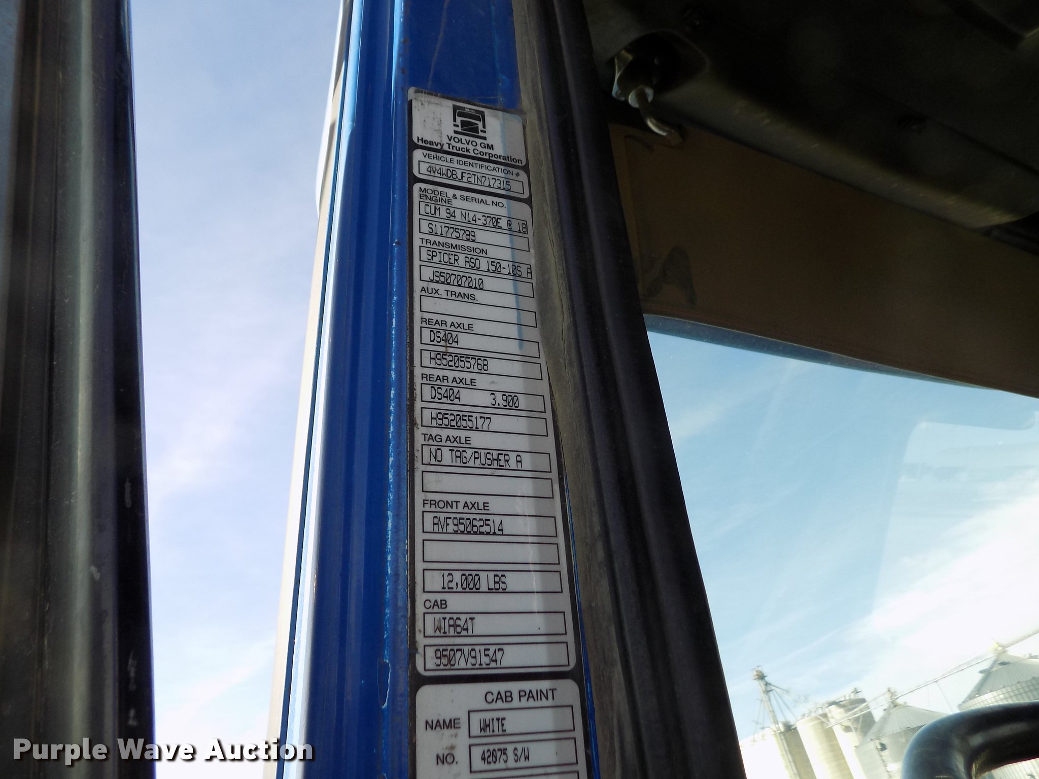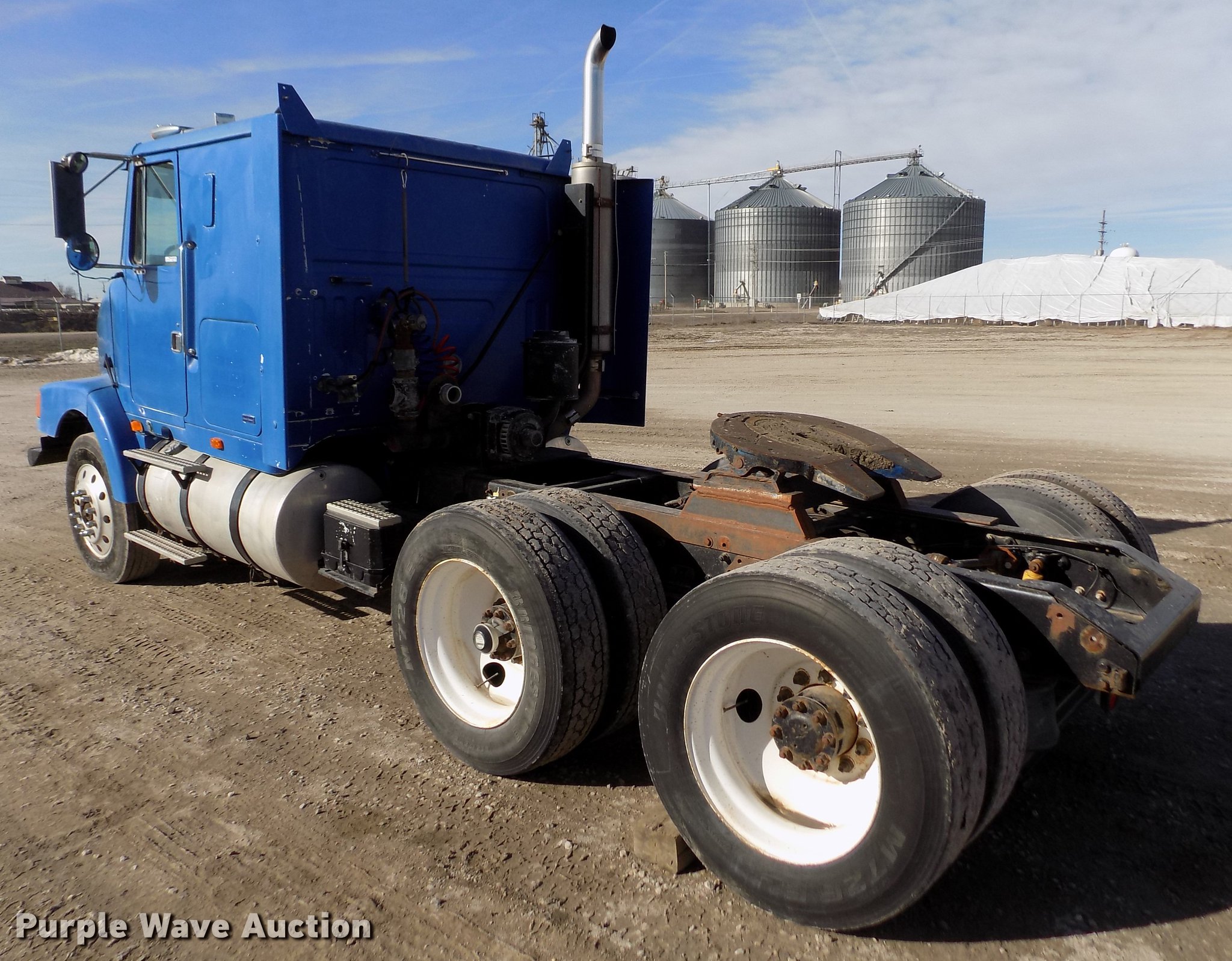 Purple Wave is selling a used Truck Tractor in Kansas. This item is a 1996 Volvo WIA semi truck with the following: 702,289 miles on odometer, Cummins N14 14.0L L6 turbo diesel engine, Eaton Fuller 10 speed manual transmission, Tandem axle, Inter-axle differential lock, AC and heat, Cruise, AM/FM/Cassette, Power and heated mirrors, Air suspension seat, Air ride cab, Sleeper, Single bed, Dump valves, Block heater, PTO, PTO driven blower, Single exhaust stack, Fixed fifth wheel plate, Dual fuel tanks, Air suspension, Air brakes, Engine brake, 285/75R24.5 tires, GVWR 50,000 lbs, ECM issues, Non-operational unit, Unit# 456