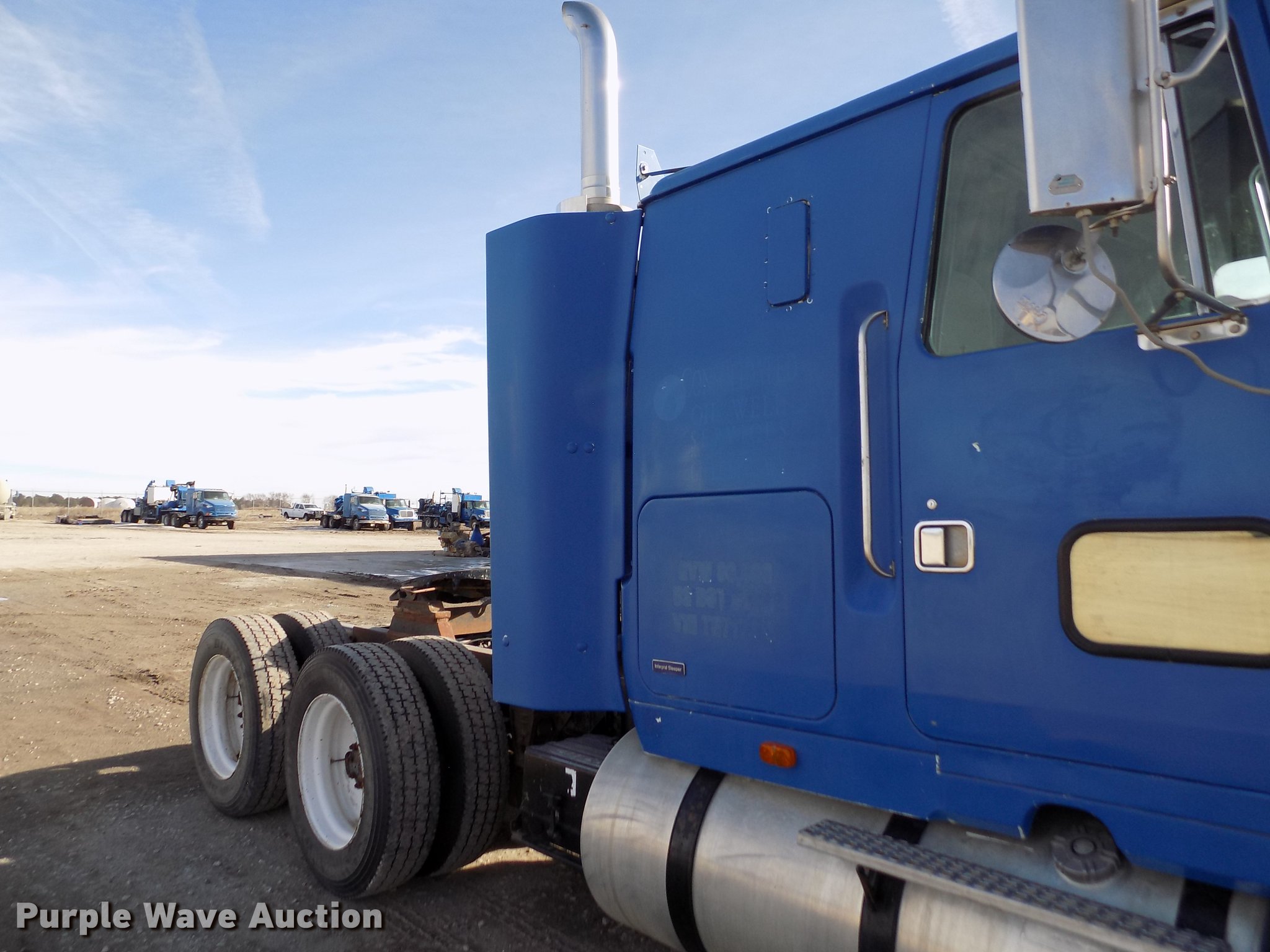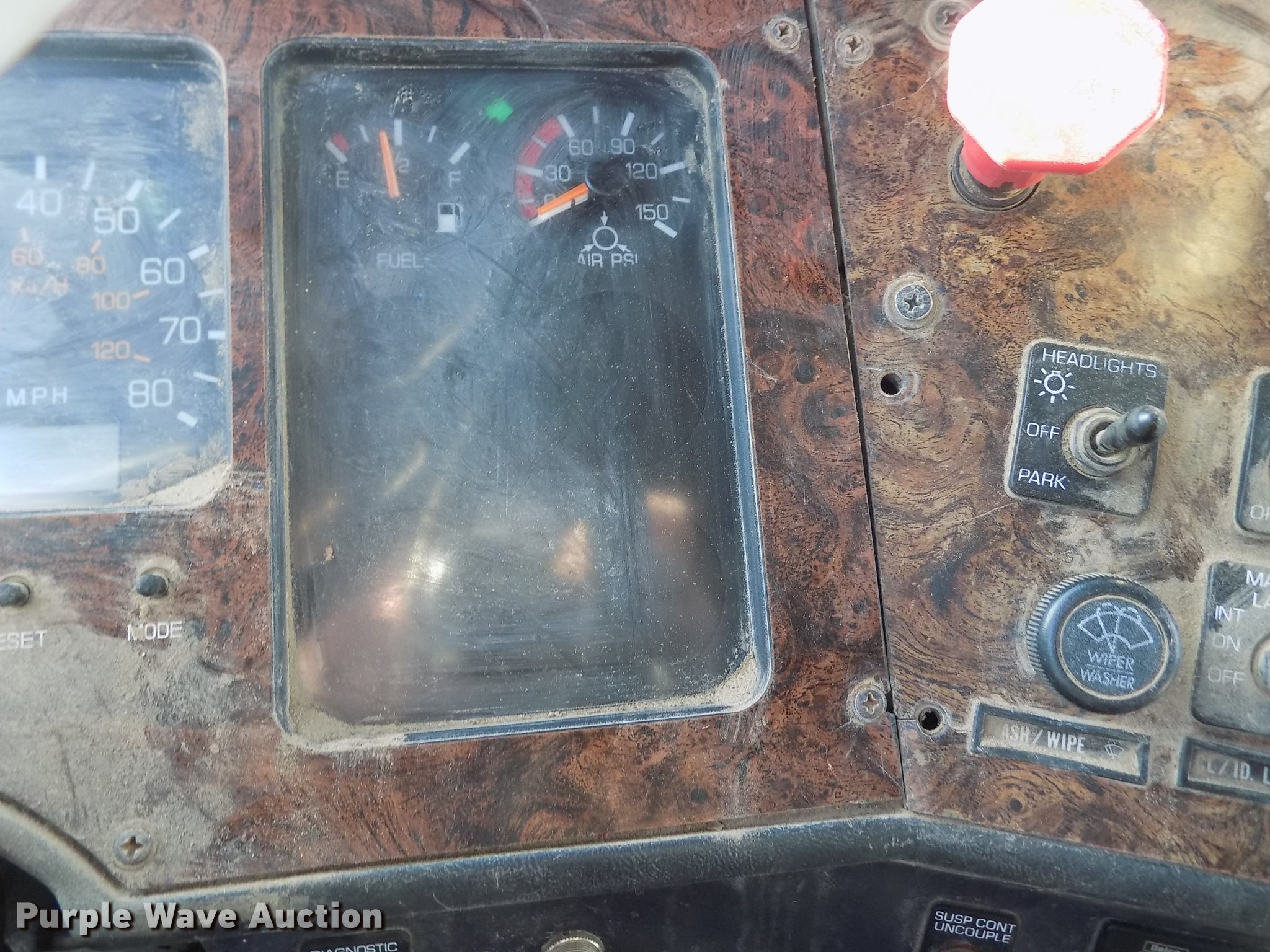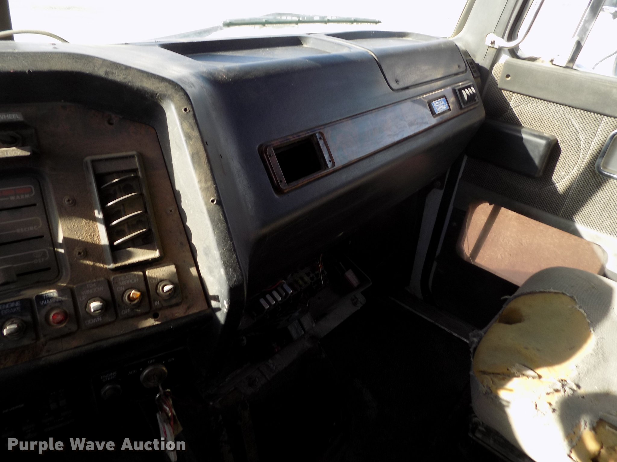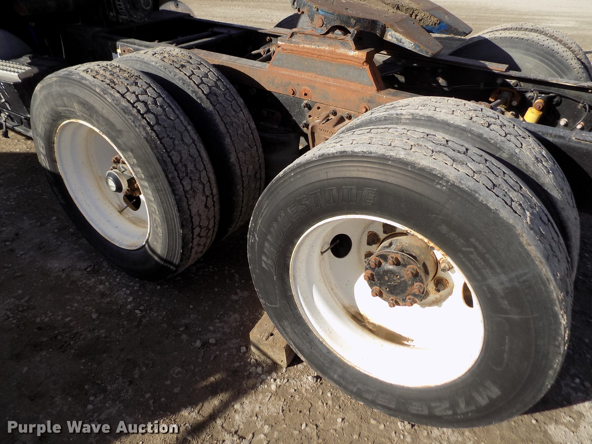 Purple Wave is selling a used Truck Tractor in Kansas. This item is a 1996 Volvo WIA semi truck with the following: 702,289 miles on odometer, Cummins N14 14.0L L6 turbo diesel engine, Eaton Fuller 10 speed manual transmission, Tandem axle, Inter-axle differential lock, AC and heat, Cruise, AM/FM/Cassette, Power and heated mirrors, Air suspension seat, Air ride cab, Sleeper, Single bed, Dump valves, Block heater, PTO, PTO driven blower, Single exhaust stack, Fixed fifth wheel plate, Dual fuel tanks, Air suspension, Air brakes, Engine brake, 285/75R24.5 tires, GVWR 50,000 lbs, ECM issues, Non-operational unit, Unit# 456