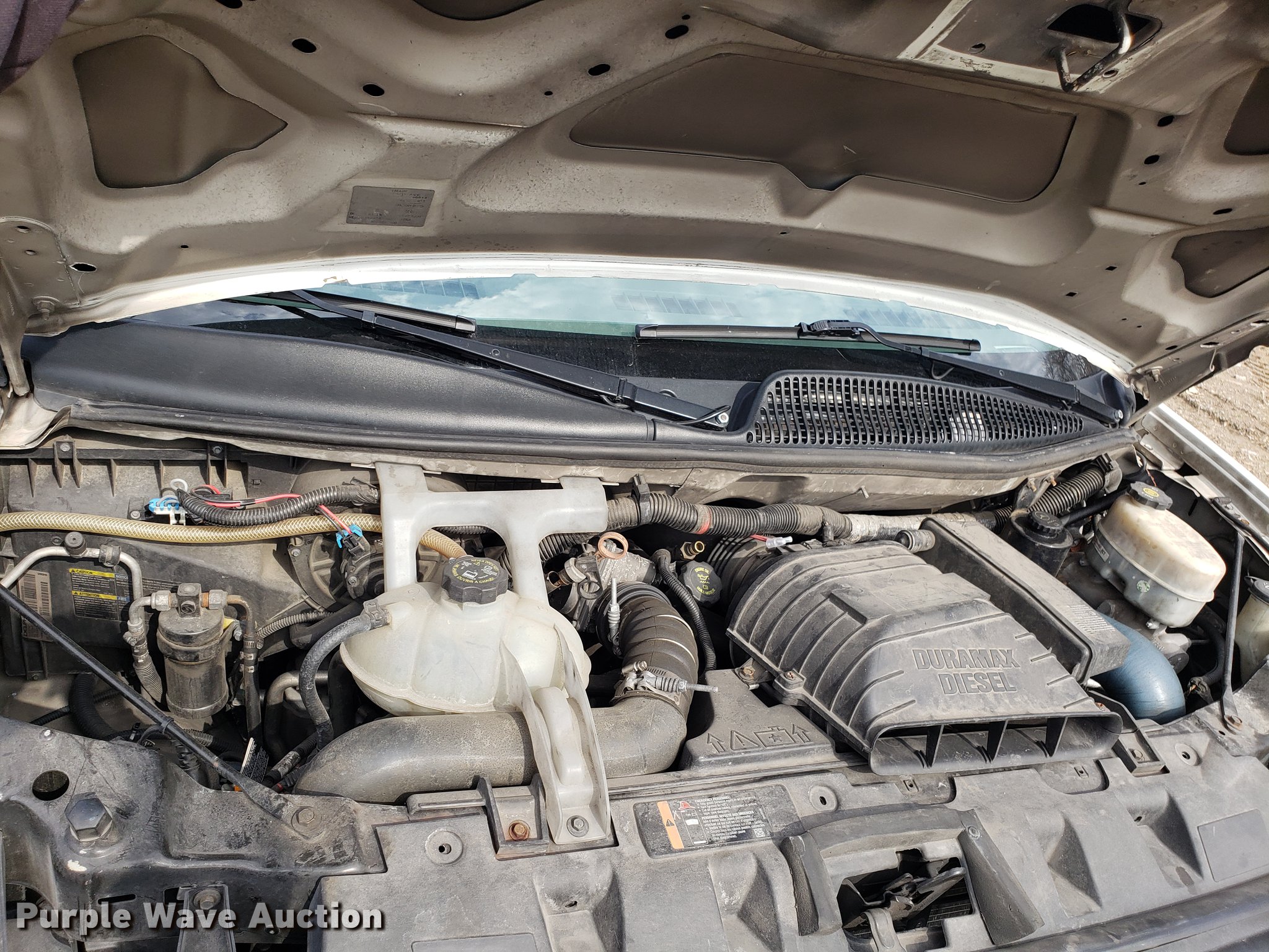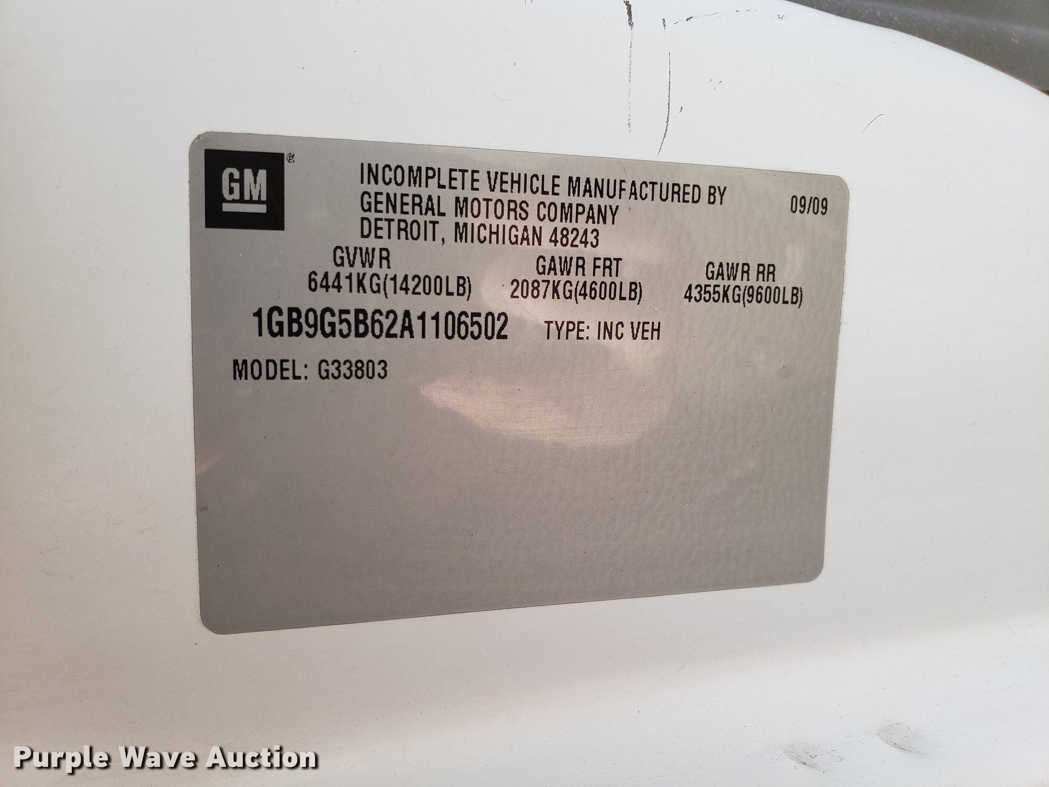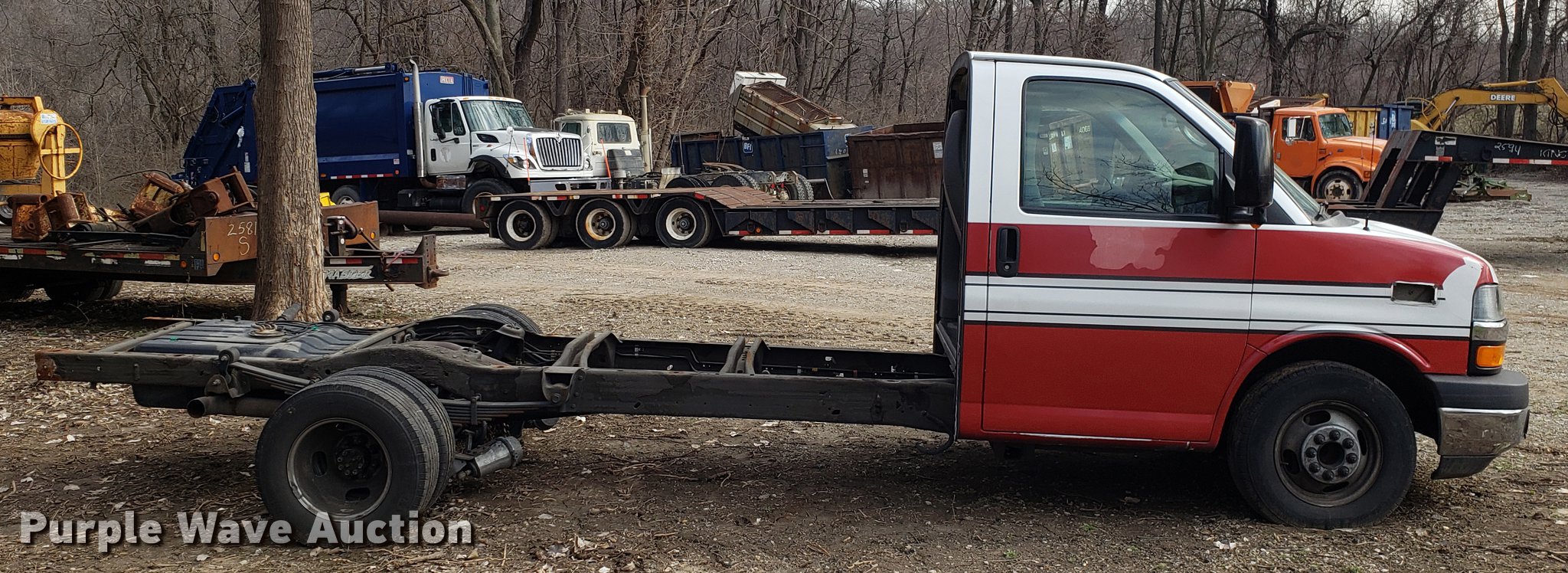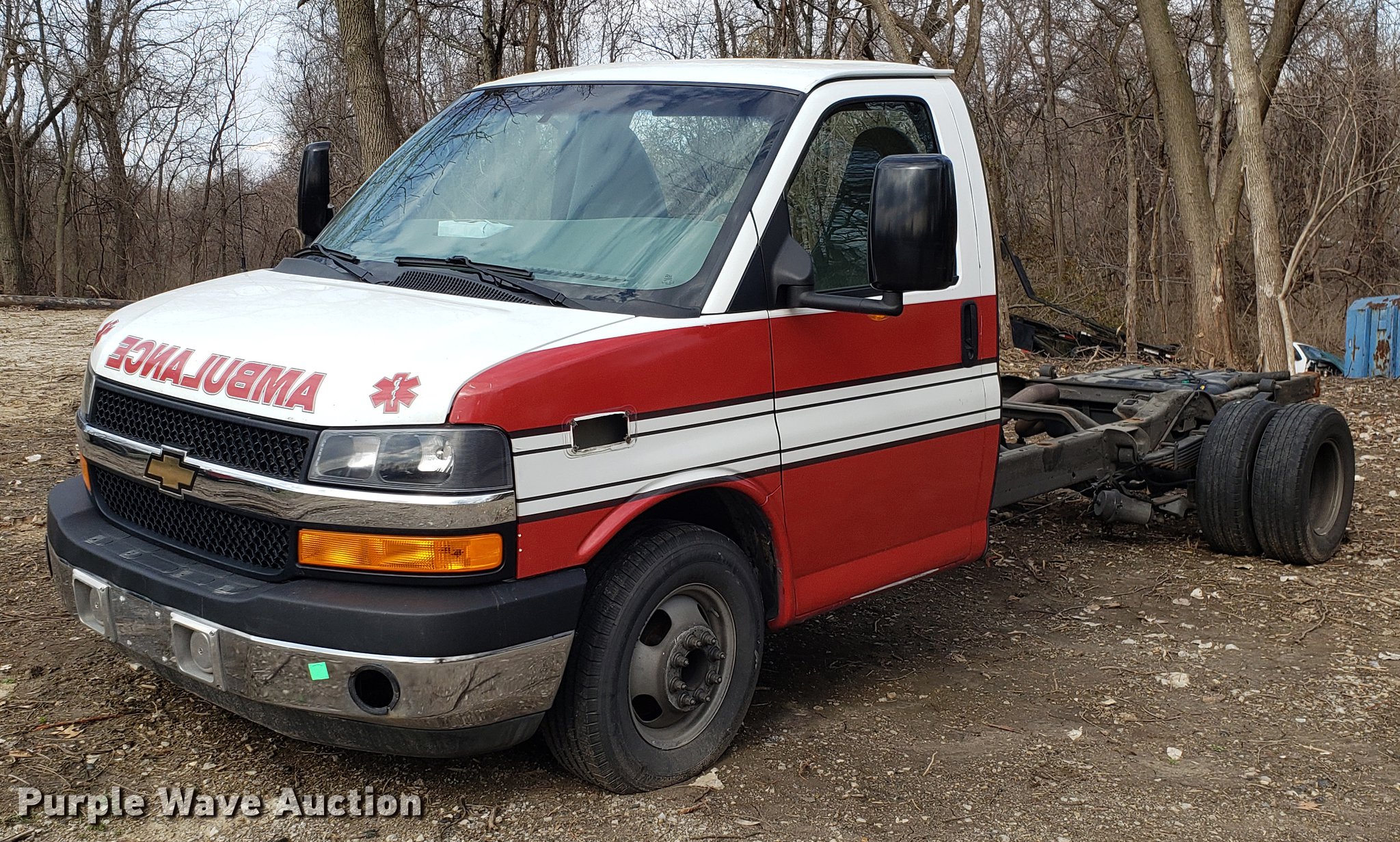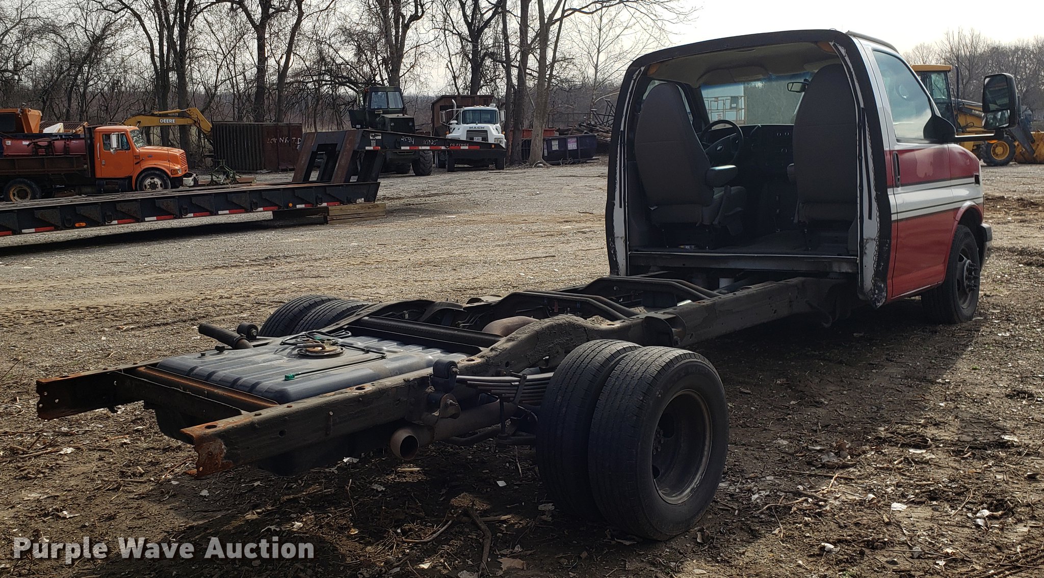 Purple Wave is selling a used Truck Chassis in Missouri. This item is a 2010 Chevrolet Express G4500 cab and chassis with the following: 266,747 miles on odometer, 6.6L V8 OHV 32V diesel engine, Automatic transmission, AC and heat, Tilt, Cruise, Power locks, Cloth interior, 98" from rear of cab to center of rear axle, 14' from rear of cab to rear of frame, Tire chains, 225/75R16 tires, Unknown operating condition of AC, No battery