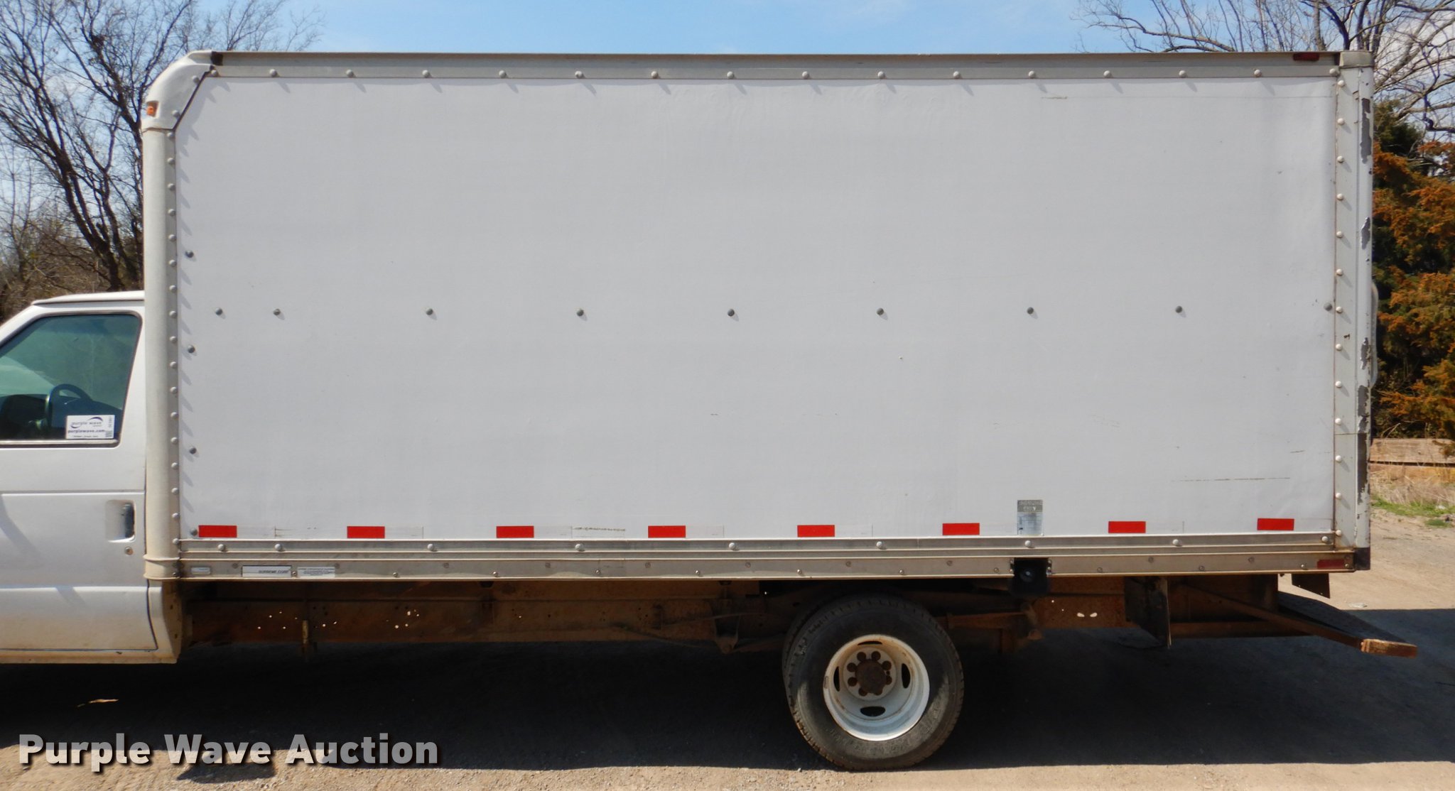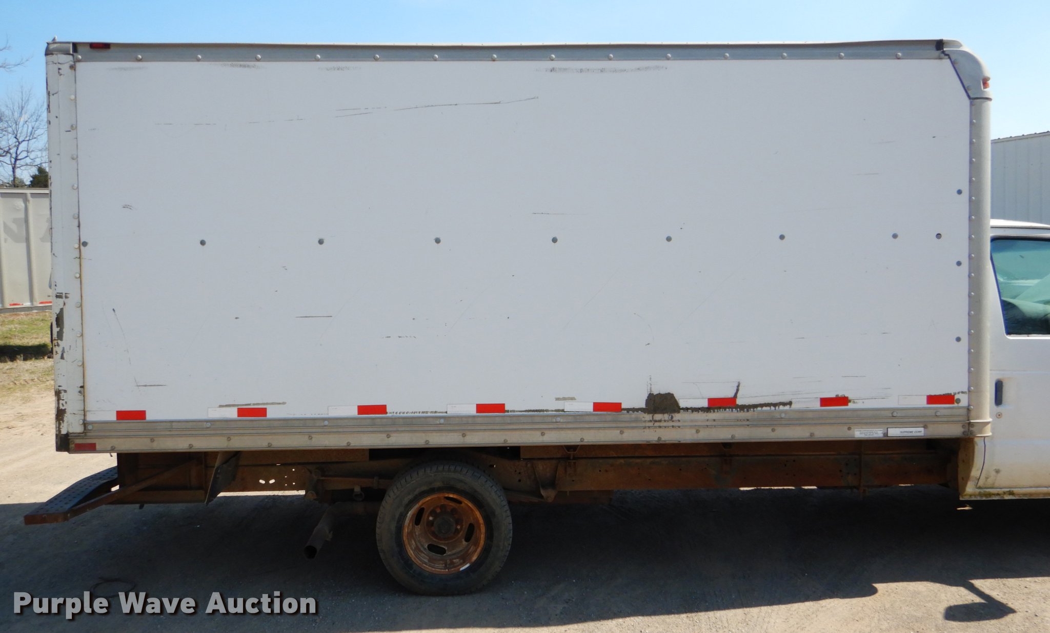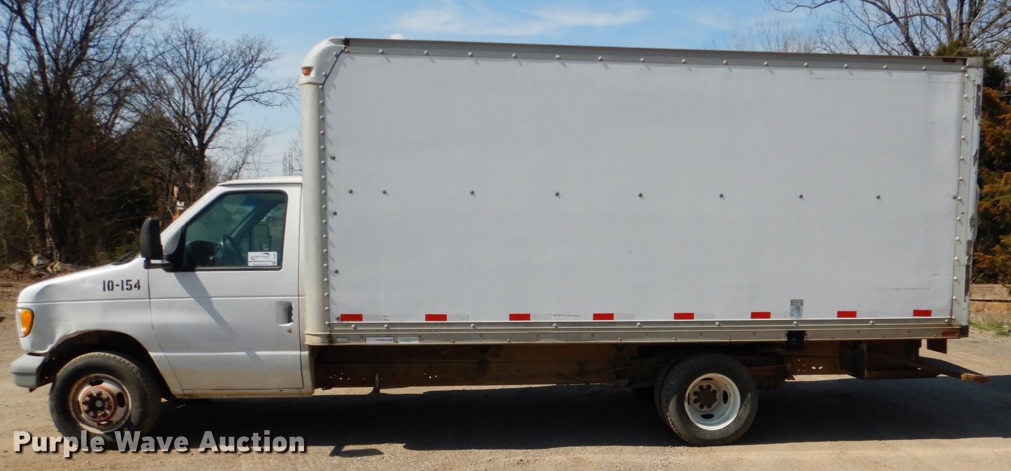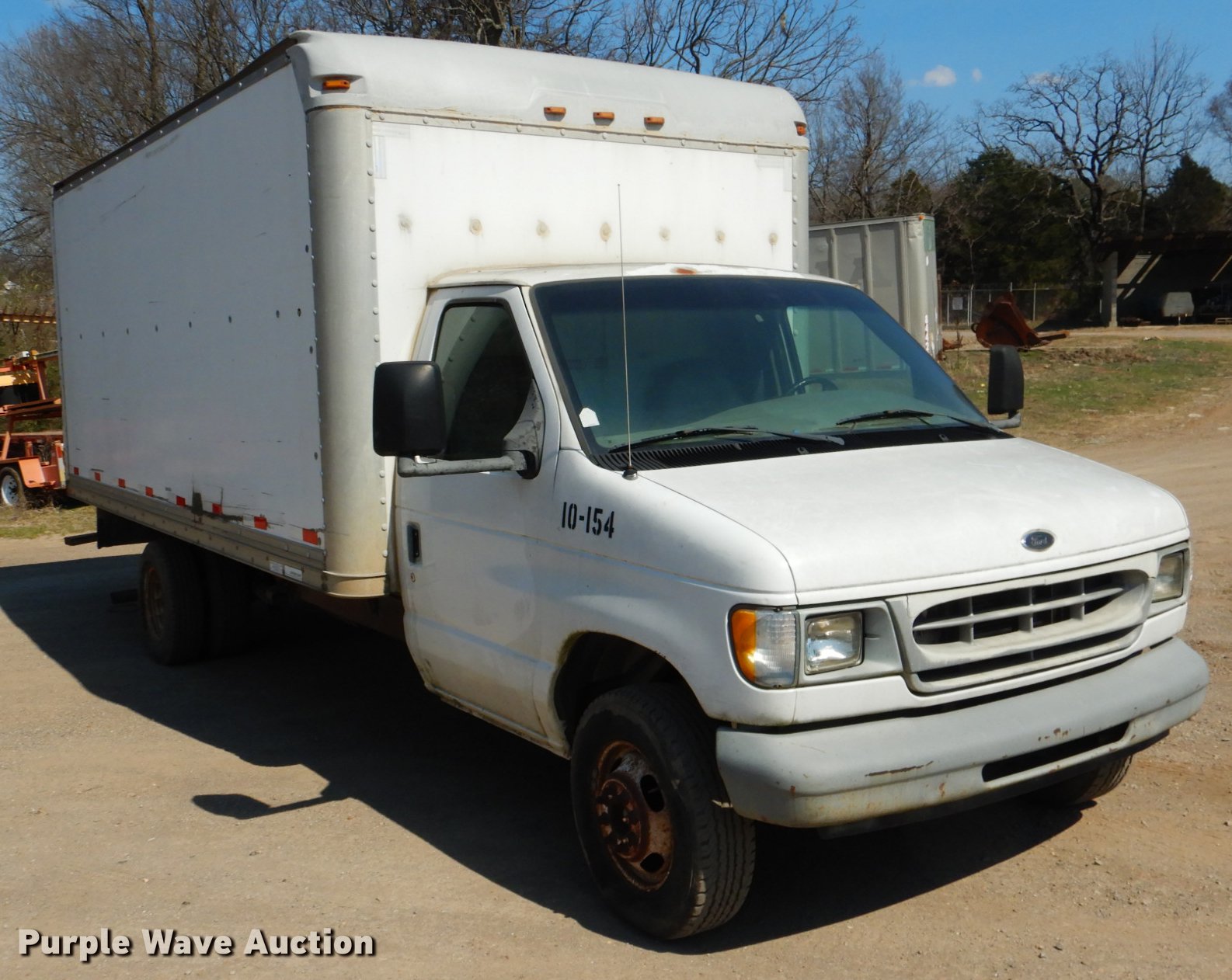 Purple Wave is selling a used Box Truck in Oklahoma. This item is a 2000 Ford Econoline E350 box truck with the following: 136,454 miles on odometer, 5.4L V8 SOHC 16V gas engine, Automatic transmission, AC and heat, AM, Supreme dry van body, 16'L x 8'W, Wood floor, Roll-up rear door, Slider ramp, Interior shelving, Serial 1F160780960V0400149, Receiver hitch, LT225/75R16 tires, Windshield cracked, Unit# 10-154