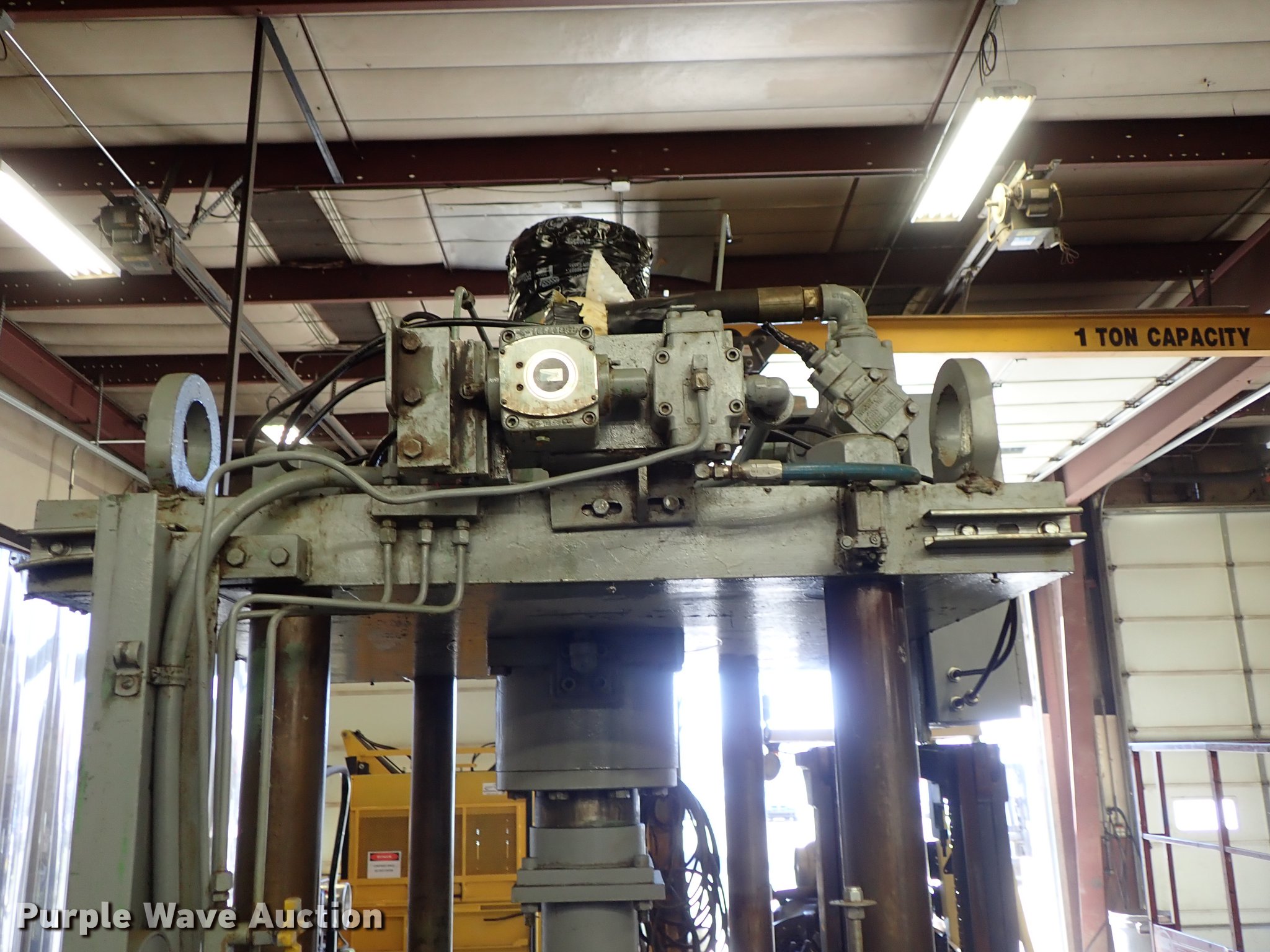 Purple Wave is selling a used Machine Shop Tools and Equip. in Kansas. This item is a KR Wilson DCT-50 vertical trim press with the following: 50 ton capacity, Four column, 4" column diameter, Power unit, Serial 2897