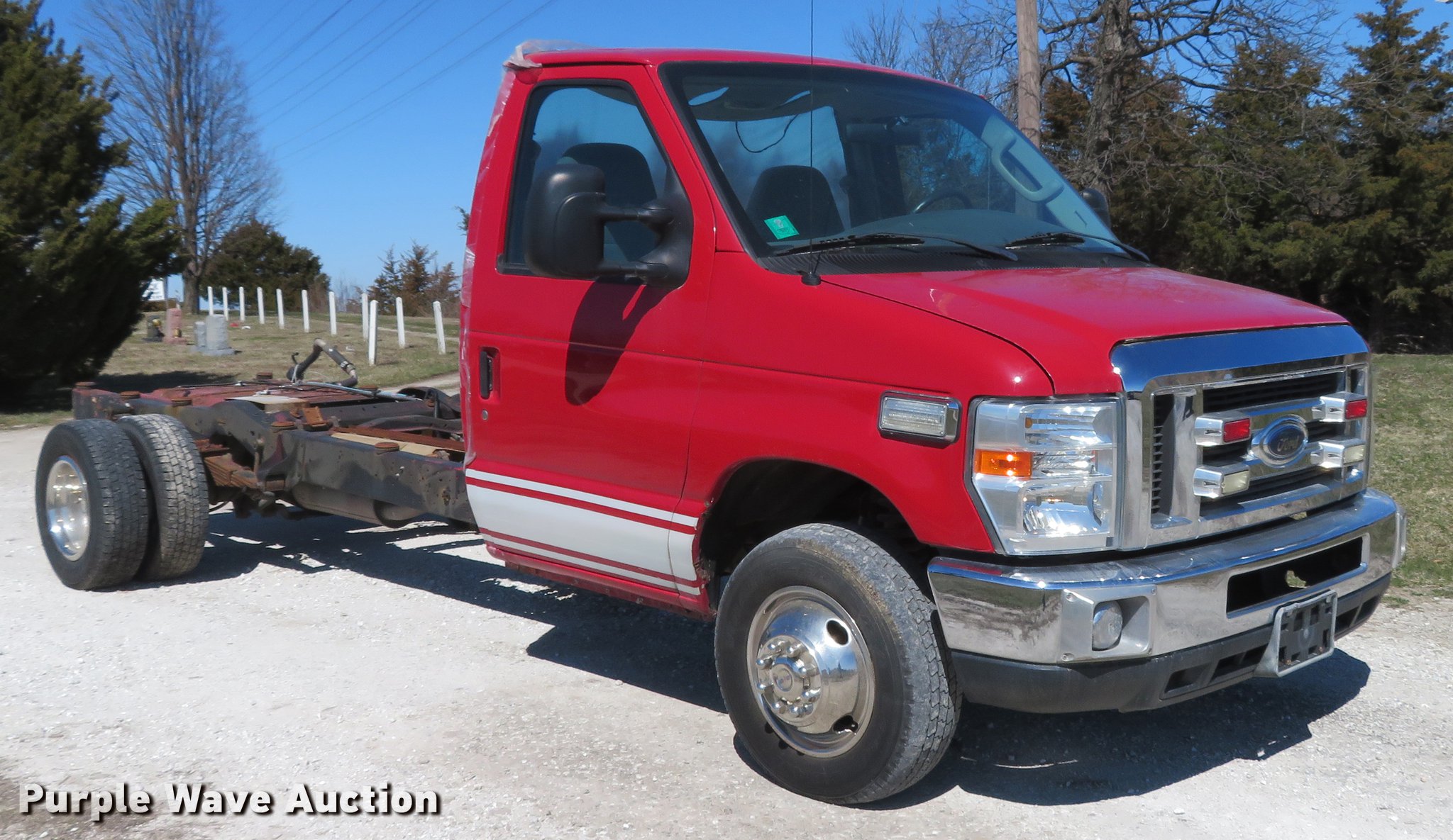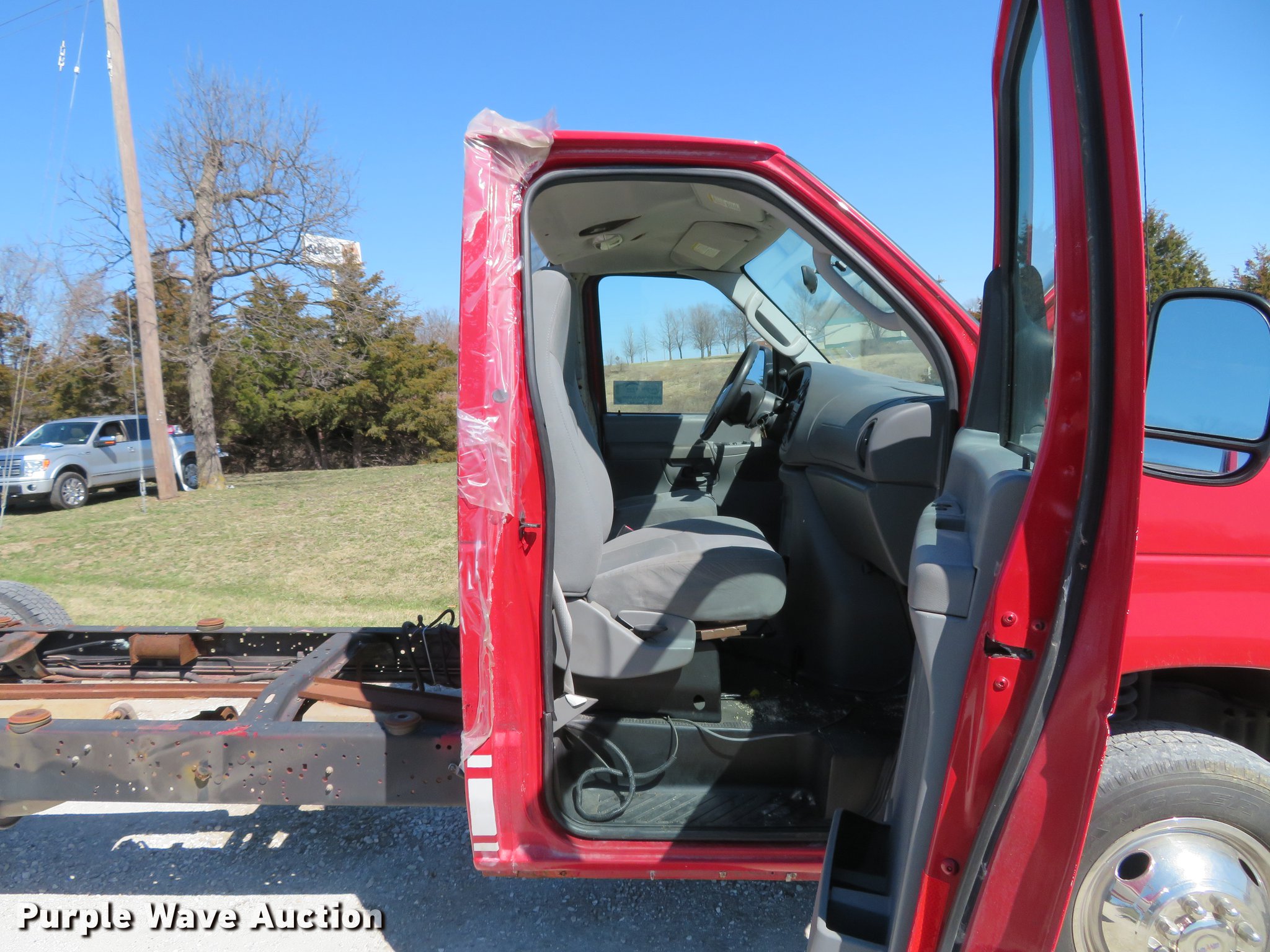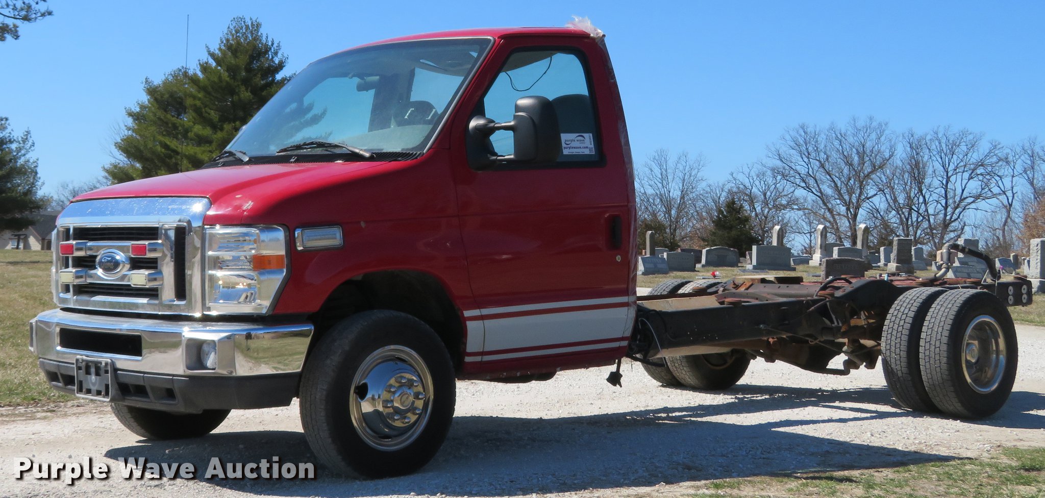 Purple Wave is selling a used Truck Chassis in Missouri. This item is a 2008 Ford E450 cab and chassis with the following: 56,974 miles on odometer, 6.0L V8 OHV 32V turbo diesel engine, Automatic transmission, Single axle, AC and heat, Cruise, AM/FM/CD, Power windows and locks, 165" from rear of cab to end of frame, LT225/75R16 tires, GVWR 14,500 lbs, Non-operational AC, may need recharged, Check airbag light on, Passenger door will not open from exterior, Decals have been removed