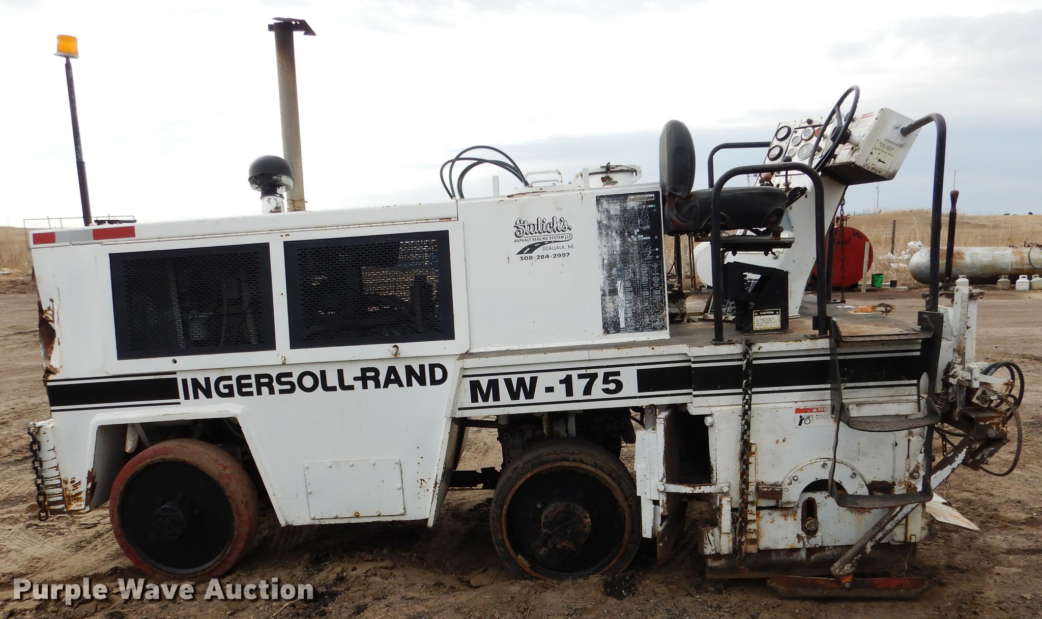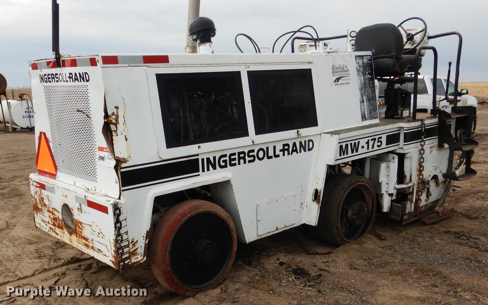 Purple Wave is selling a used Planer or Milling Machine in Nebraska. This item is a 2000 Ingersoll Rand MW175 milling machine with the following: 3,266 hours on meter, Detroit Diesel four cylinder diesel engine, Hydrostatic transmission, Spring suspension seat, 23"W head, Electronic depth and speed control, On-board water storage, Steel wheels, 9"W front tires, 26"W rear tires, Serial 513755