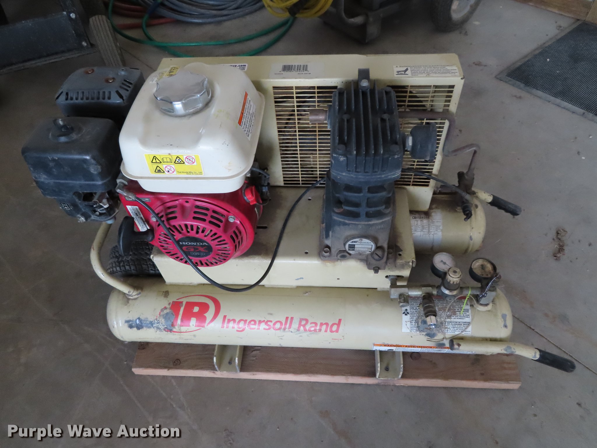 Purple Wave is selling a used Air Compressor in Kansas. This item is a Ingersoll Rand air compressor with the following: Honda gas engine, 13.8 cfm at 40 psi, Eight gallon tank capacity