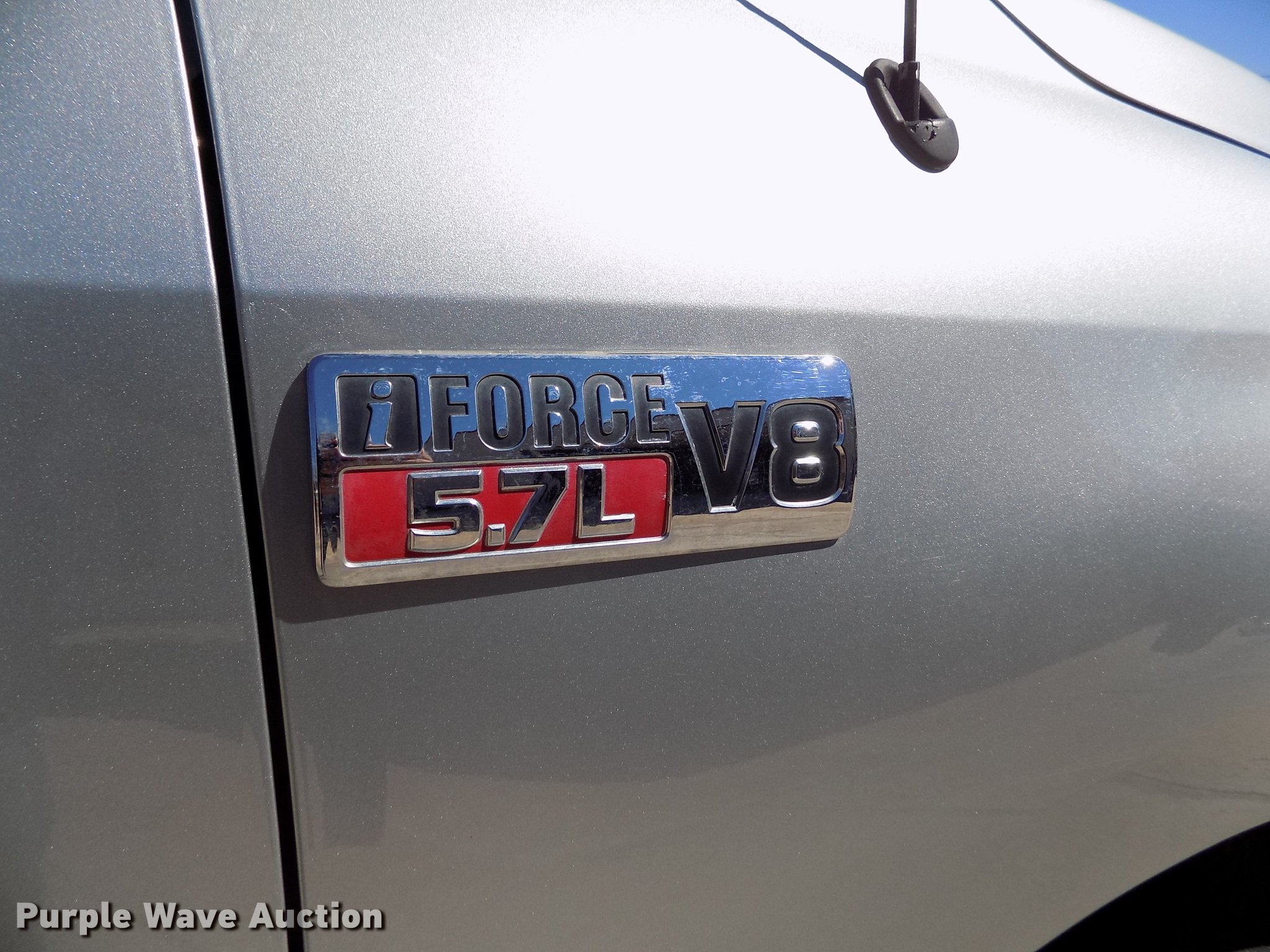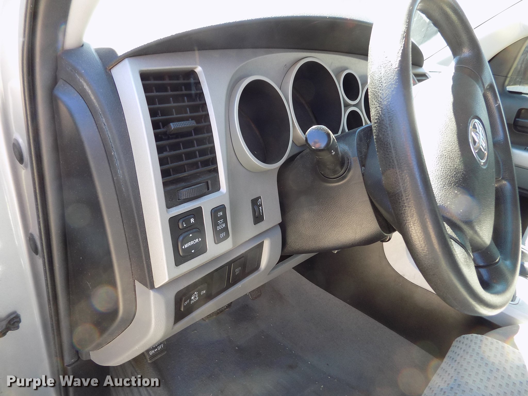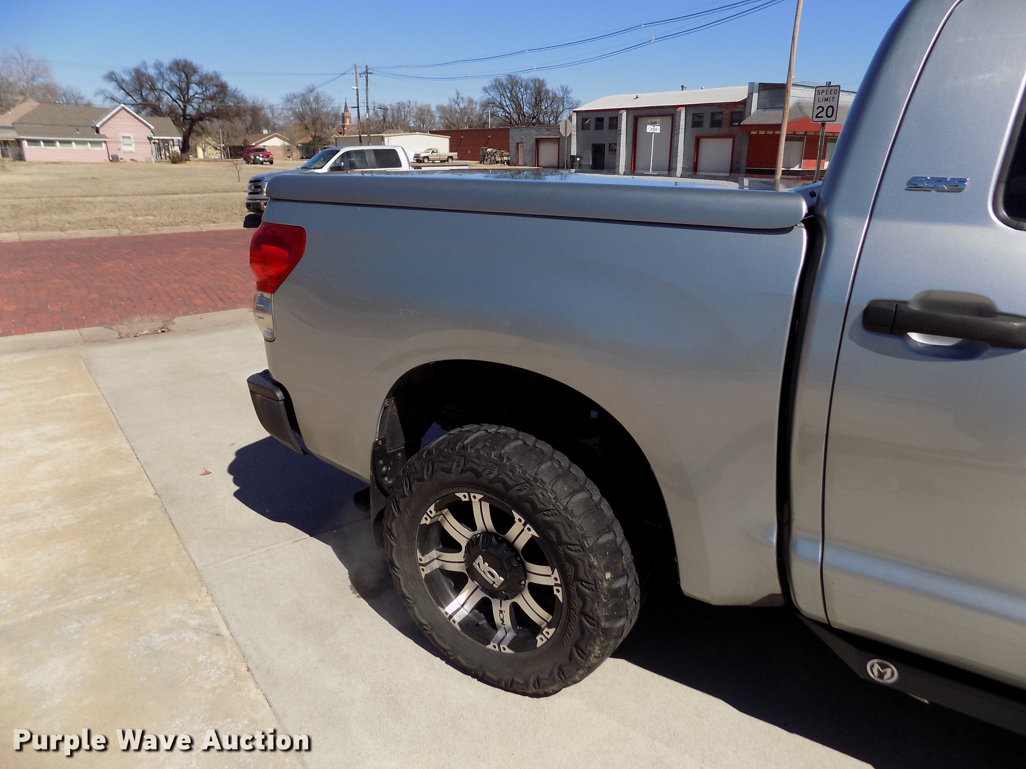 Purple Wave is selling a used 1/2 Ton Pickup or Van in Kansas. This item is a 2008 Toyota Tundra SR5 Crew Max pickup truck with the following: 178,229 miles on odometer, 5.7L V8 DOHC 32V gas engine, Automatic transmission, AC and heat, Tilt, Cruise, AM/FM/CD, Power windows, locks, mirrors, and seat, Cloth interior, Trail FX bed cover, Receiver hitch, Trailer wiring, 33 x 12.50R18 tires