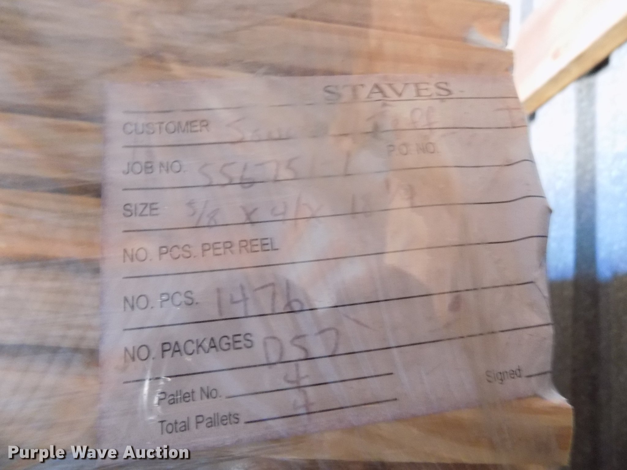 Purple Wave is selling a used Building Materials in Kansas. This item is a Approximately 7,300 wood staves with the following: 4" x 5/8" x 18 1/4"L