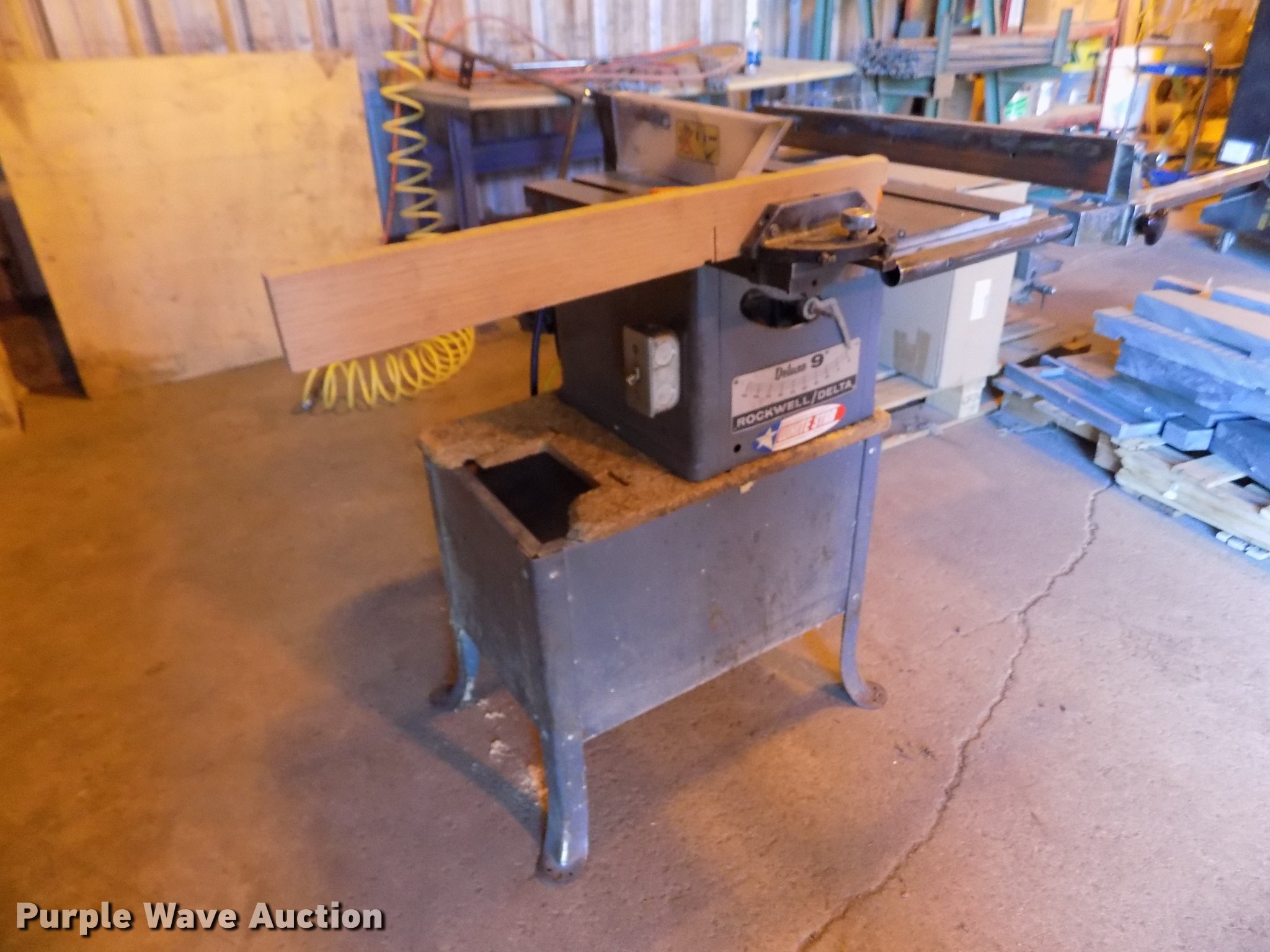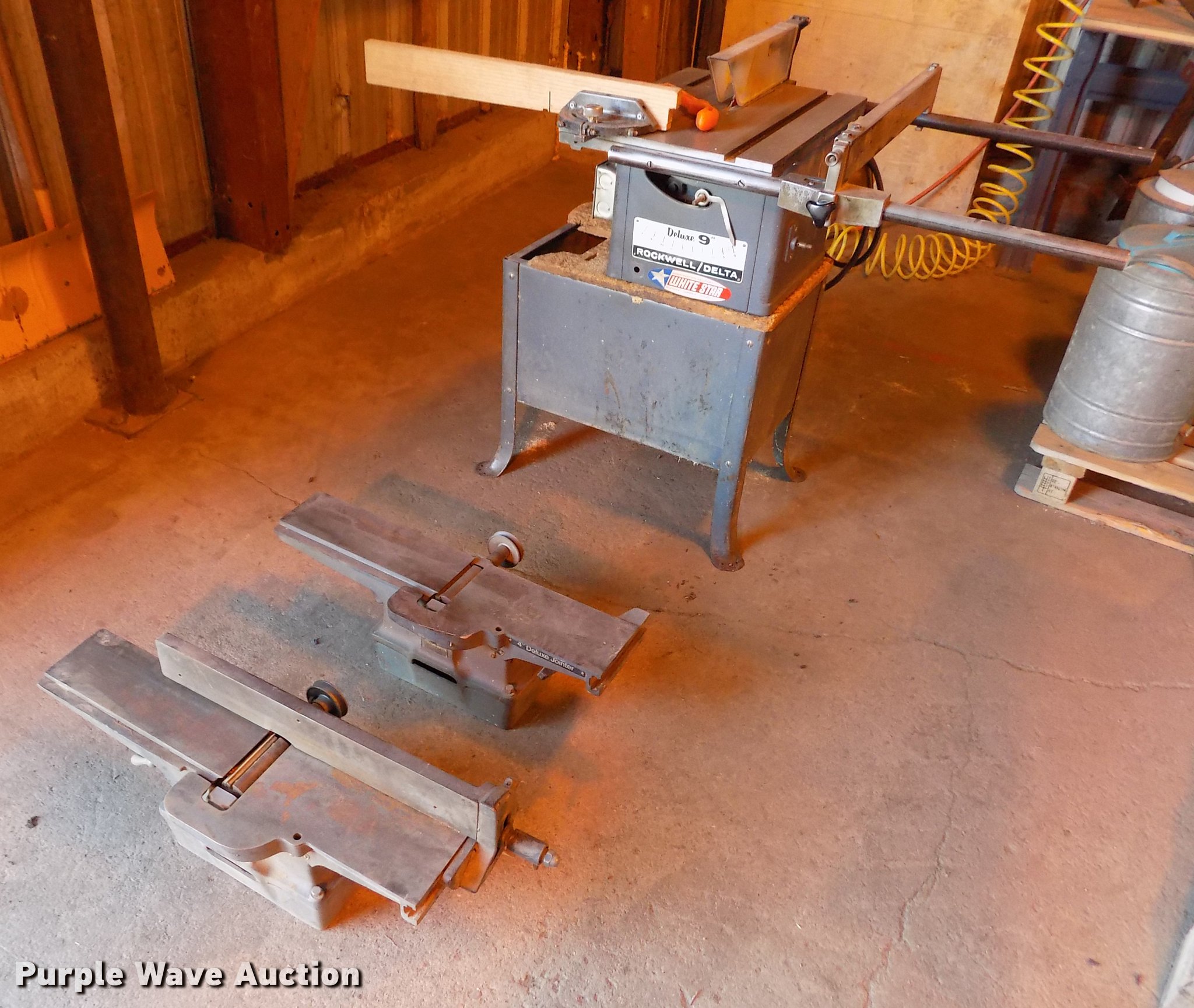 Purple Wave is selling a used Tools in Kansas. This item is a Rockwell Delta table saw with the following: 110V, 1 HP, (2) Rockwell Delta jointer, 4", Serial FC-9163