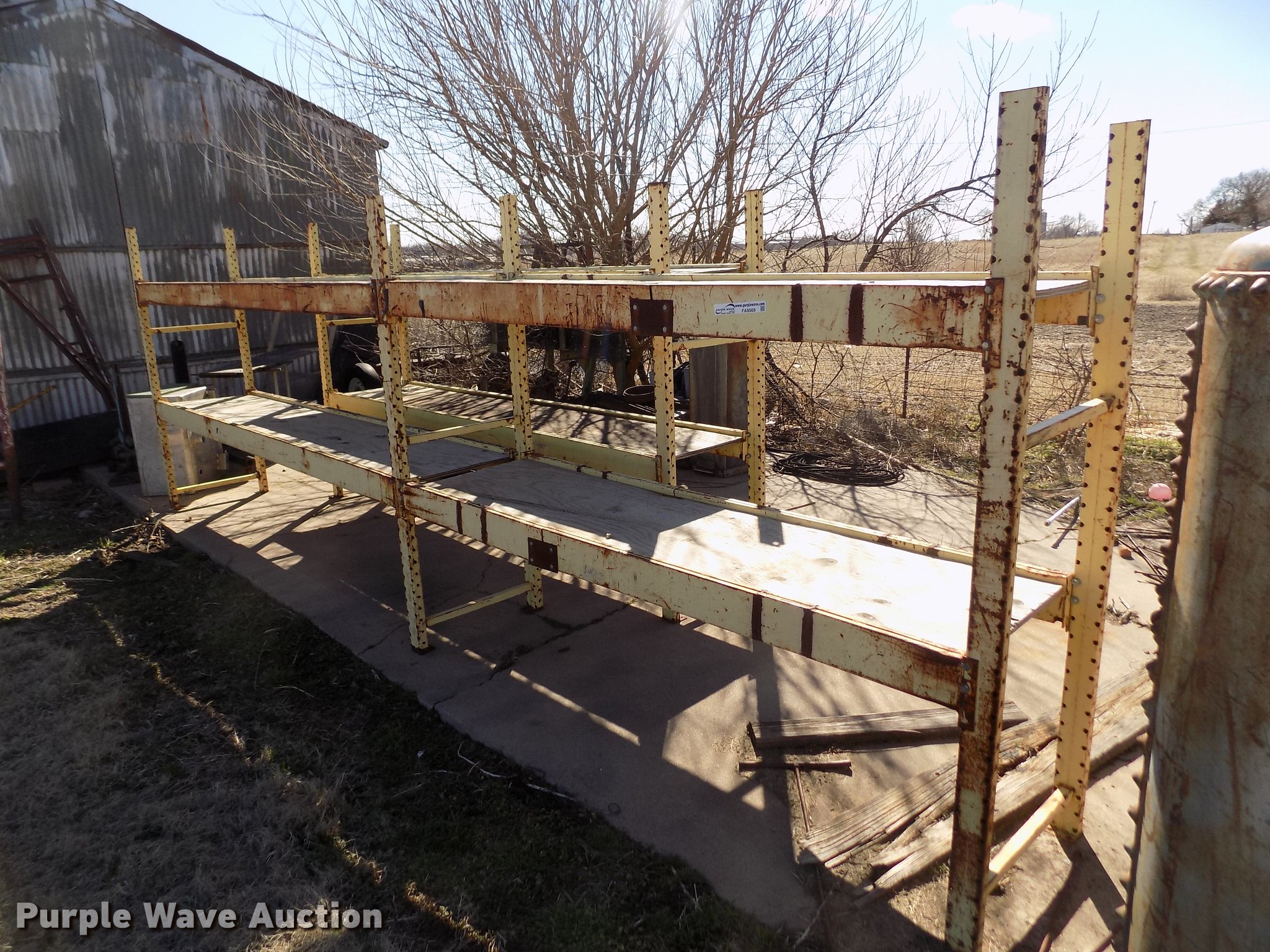 Purple Wave is selling a used Shelving and Storage in Kansas. This item is a Steel shelving with the following: 10.5'L x 25"D x 71"H, 18'2"L x 25"D x 71"H