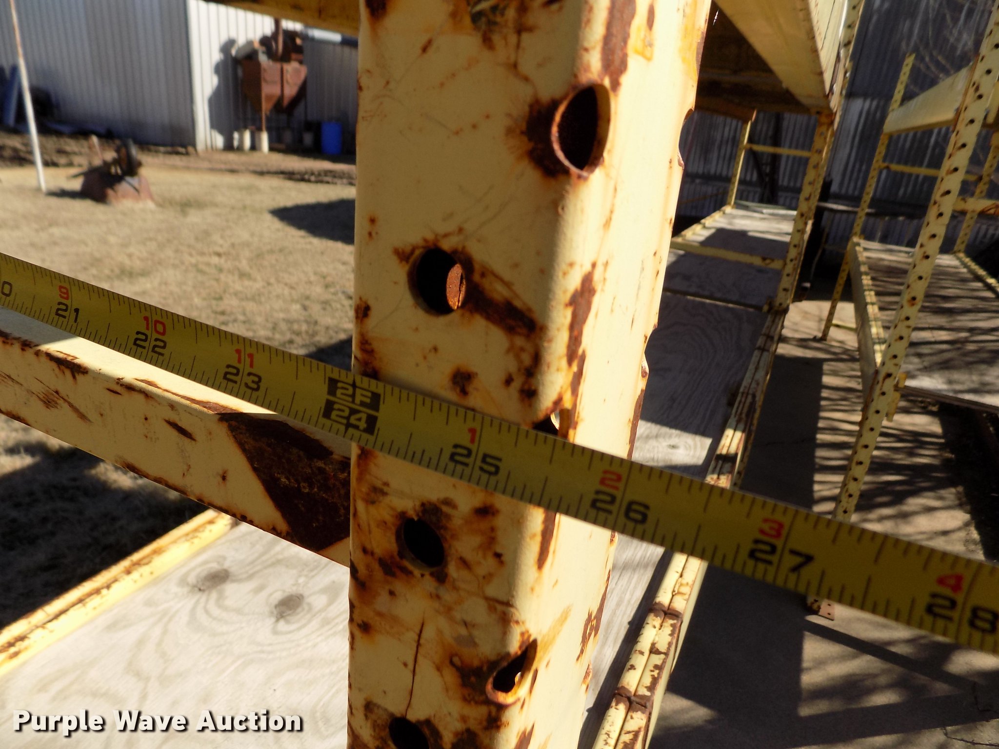 Steel shelving. 10.5'L x 25"D x 71"H, 18'2"L x 25"D x 71"H. S&S Reel Manufacturing. 807 E 2nd. Hoisington, KS 67544