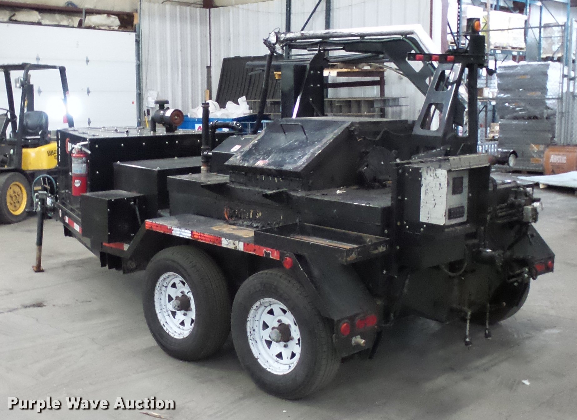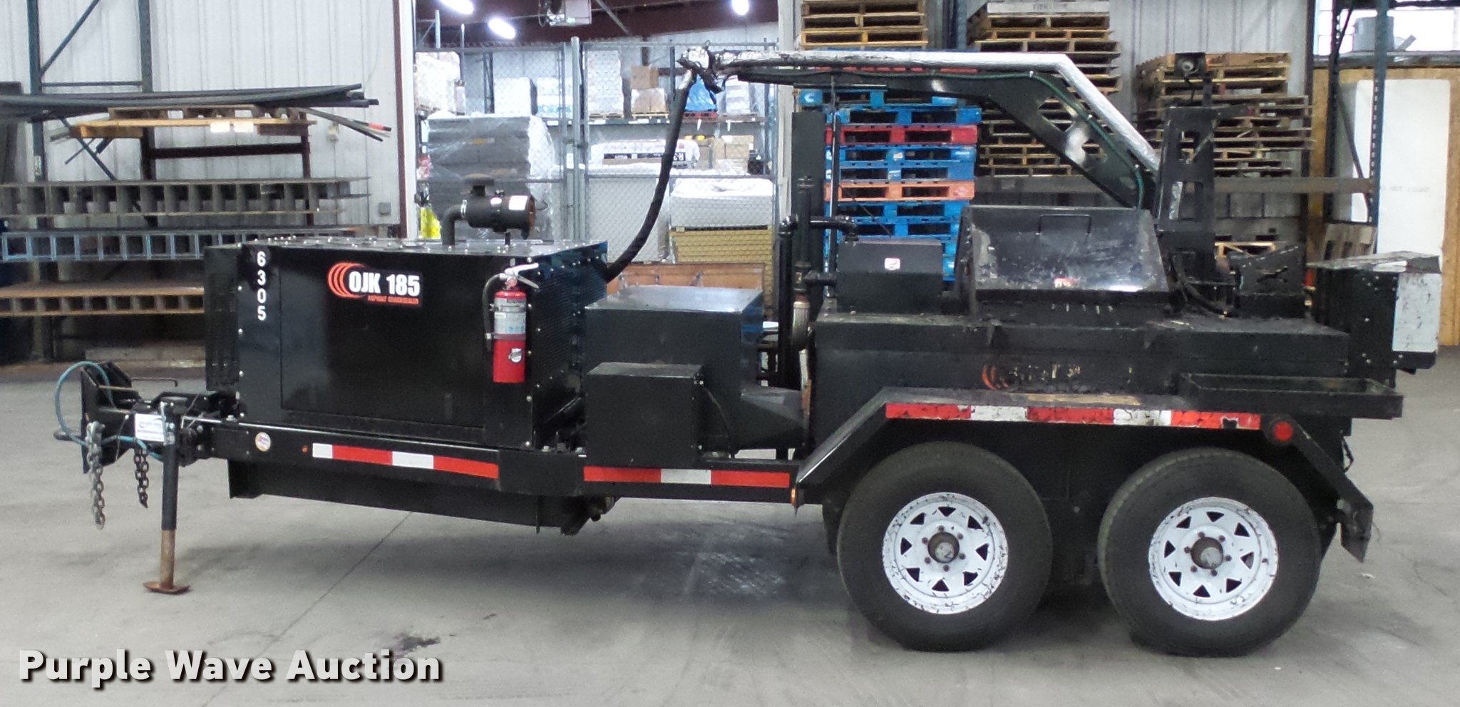 Purple Wave is selling a used Pot Hole Patcher in Minnesota. This item is a 2015 Stepp 0JK185 crack sealer with the following: Kubota 1.1L three cylinder diesel engine, 185 gallon tank, 400,000 BTU heater, (2) material adding doors, Recirculation pump, Over night heaters, Heated wand, Pintle hitch, Jack stand, Spring suspension, Electric brakes, Tandem axle, ST225/75R15 tires, GVWR 9,999 lbs