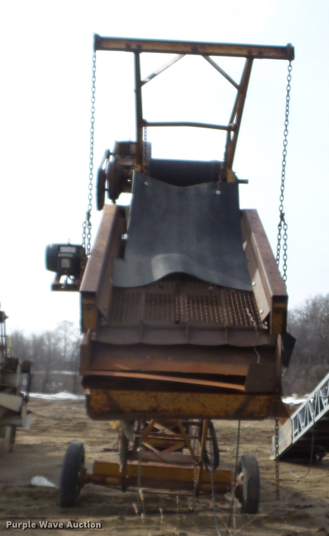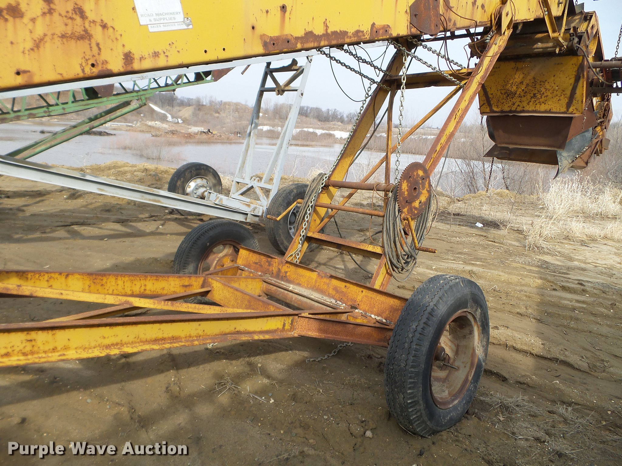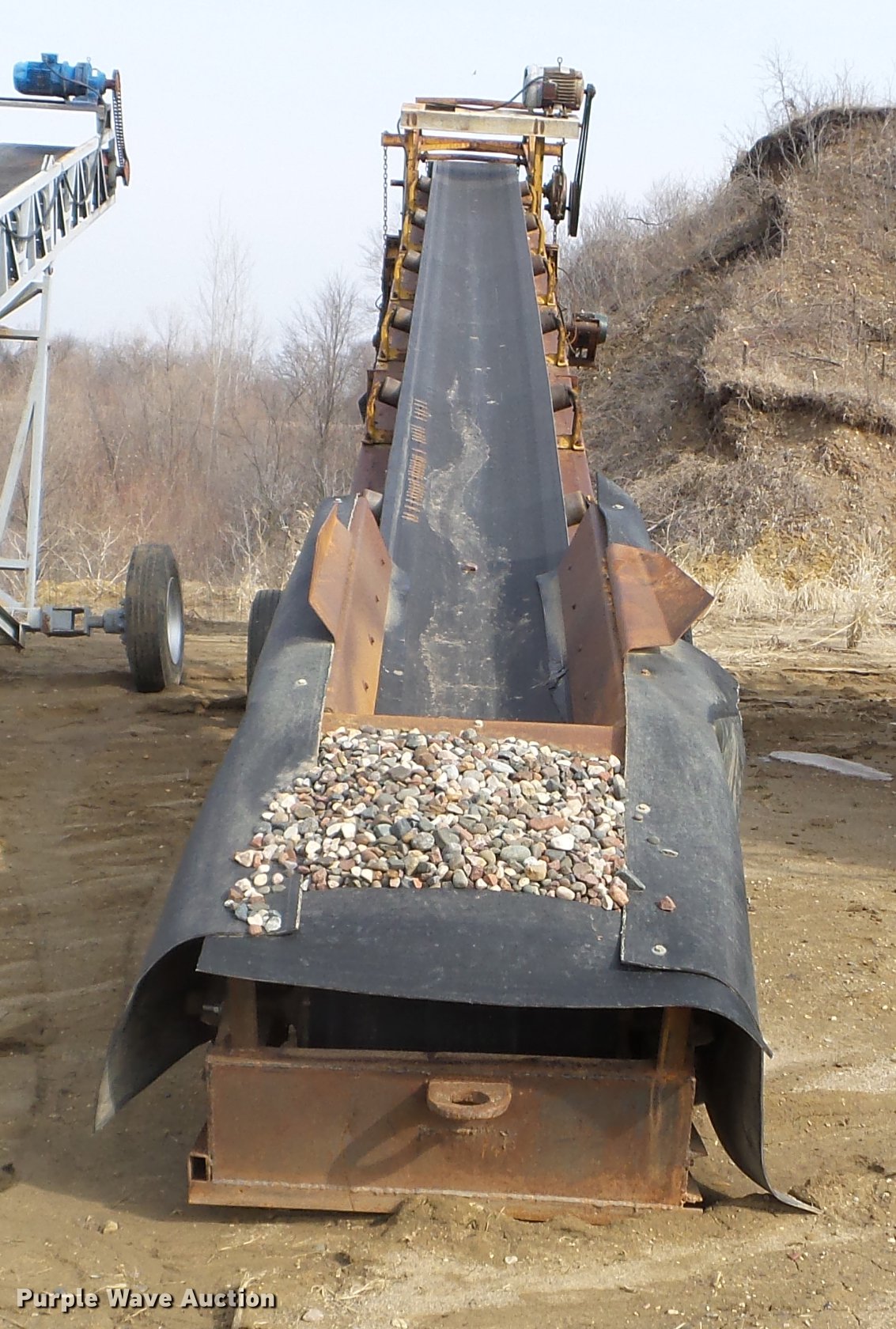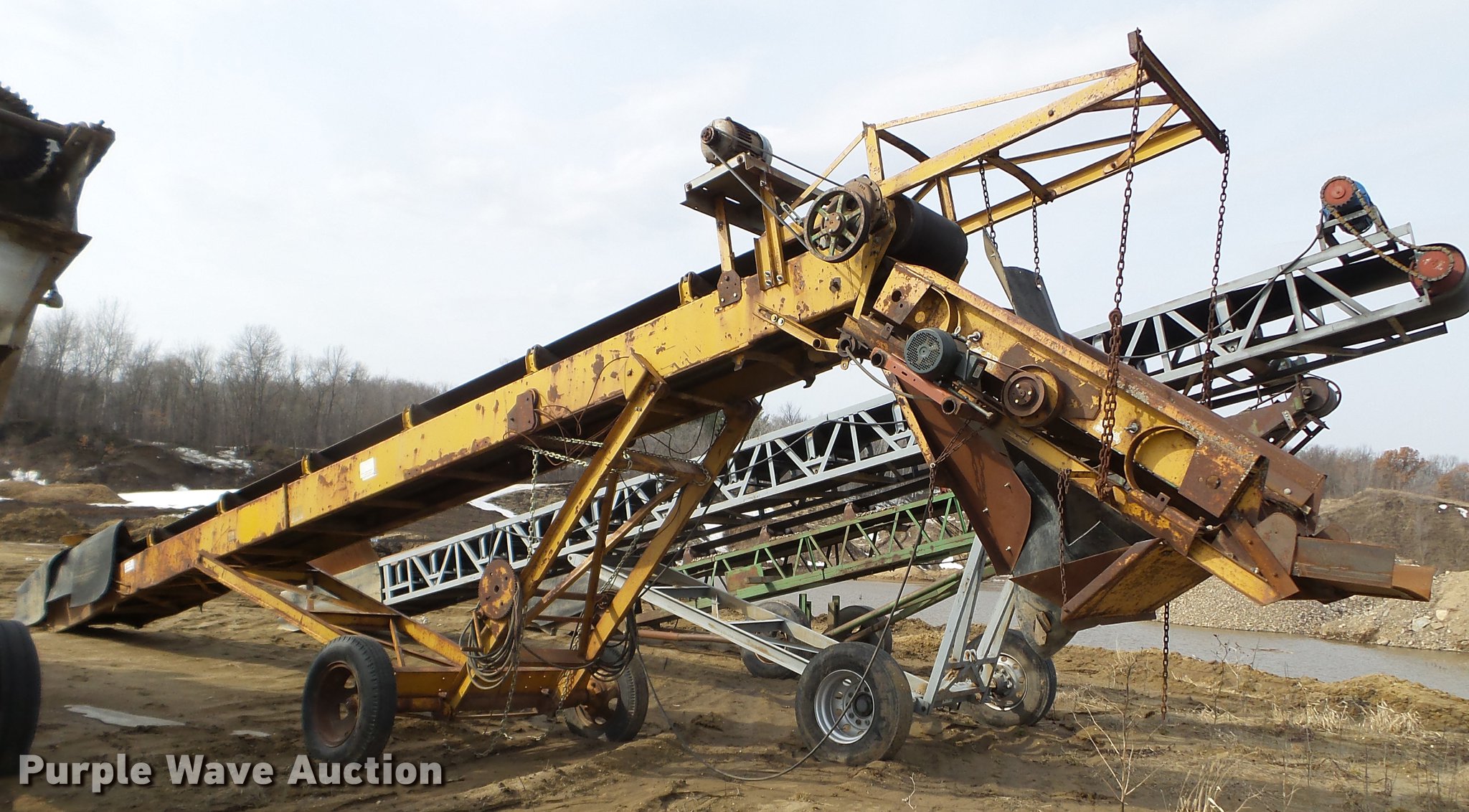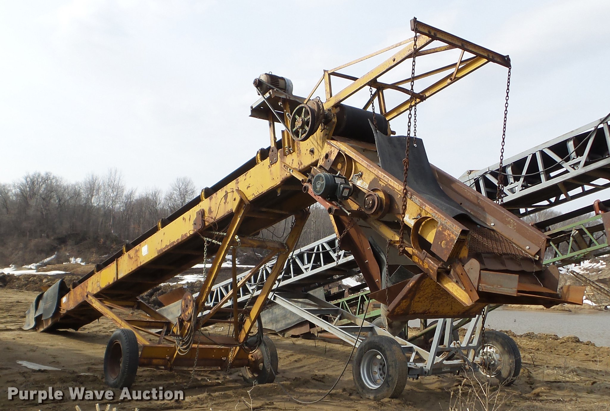 Purple Wave is selling a used Conveyor in Minnesota. This item is a Kolman 202 stacking conveyor with the following: 40'L, 24"W belt, Kolman SB70-42 screen, 7' x 43", Serial 78-355, Manual adjustable height, Pin hitch, Single axle, 7.50-20 tires