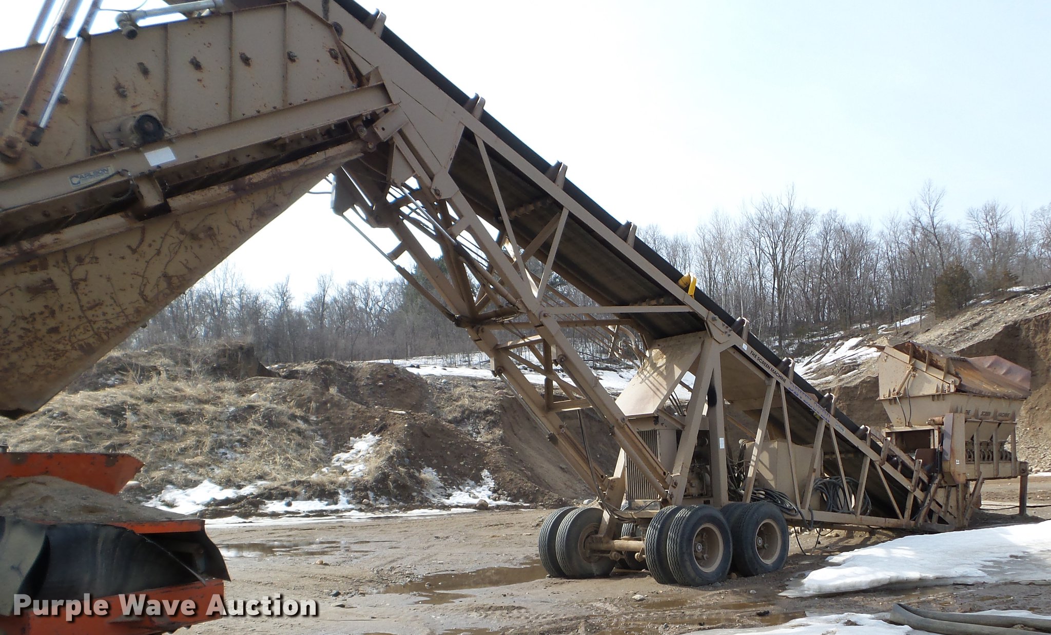 Purple Wave is selling a used Screen or Screening Plant in Minnesota. This item is a Screen Machine Developer screen with the following: John Deere 4045TF150 four cylinder turbo diesel engine, Serial T04045T783840, Two deck screen, 5' x 12' screens, 42'L conveyor, 34"W belt, Fifth wheel hitch, Air brakes, Tandem axle, 10.00-20 tires