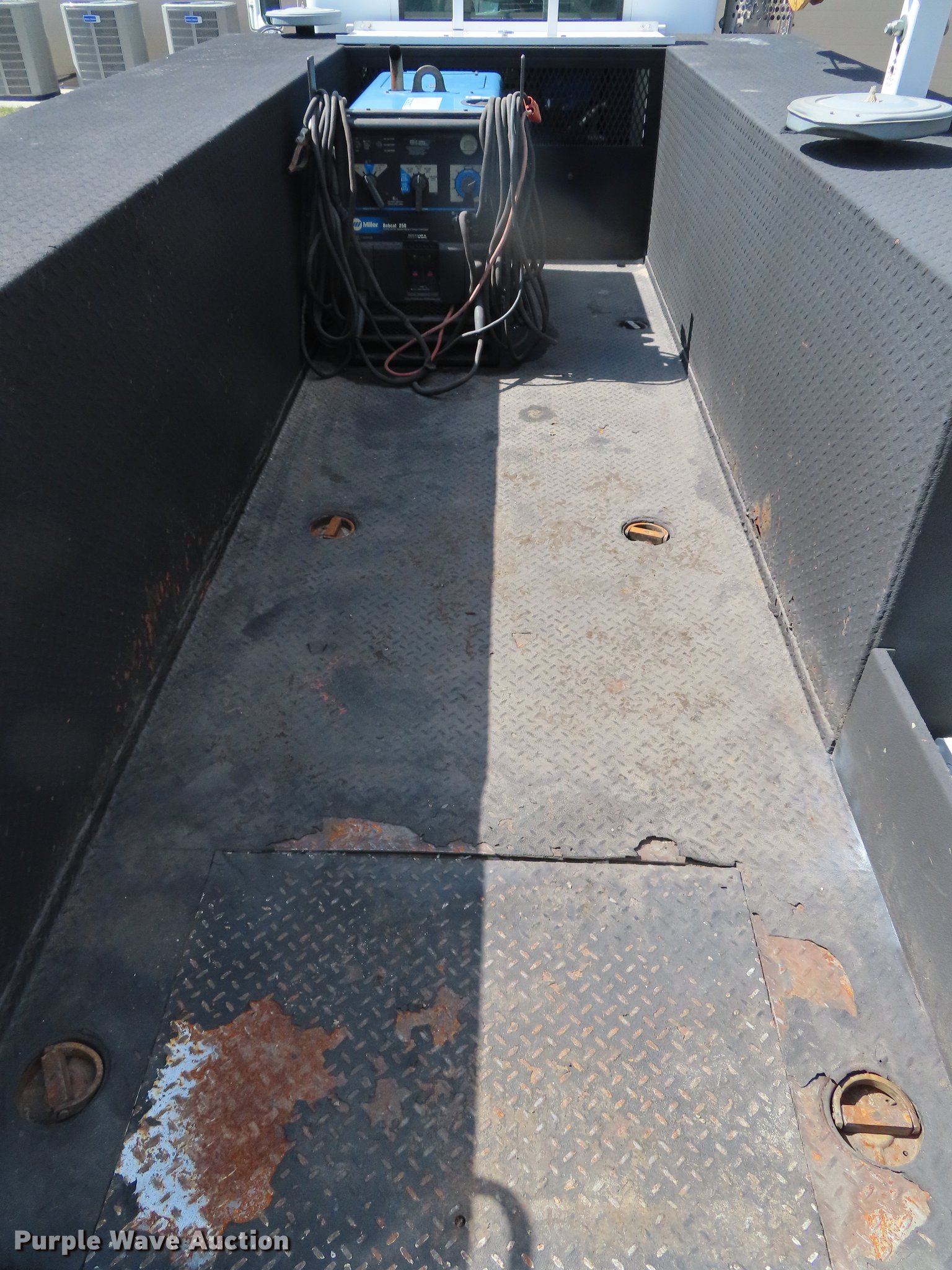 Purple Wave is selling a used Service Truck in Kansas. This item is a 2005 Kenworth T300 service truck with crane with the following: 205,217 miles on odometer, Caterpillar C7 7.2L L6 turbo diesel engine, 250 HP, Serial KAL63138, Allison automatic transmission, Single axle, AC and heat, AM/FM, Heated mirrors, Air suspension seat, PTO, Backup alarm, Beacon light, Maintainer service bed, 14'5"L, Shelving, Slide-out drawers, Miller Bobcat 250 AC/DC welder/generator, 511 hours on meter, Gas engine, 240V outlet, (2) 120V outlets, Leads, Air compressor, Hose reel, Maintainer 5220 crane, 20' boom length, 10,000 lbs capacity, Remote control, (2) outriggers, Receiver hitch, Single fuel tank, Air suspension, Air brakes, 11R22.5 tires