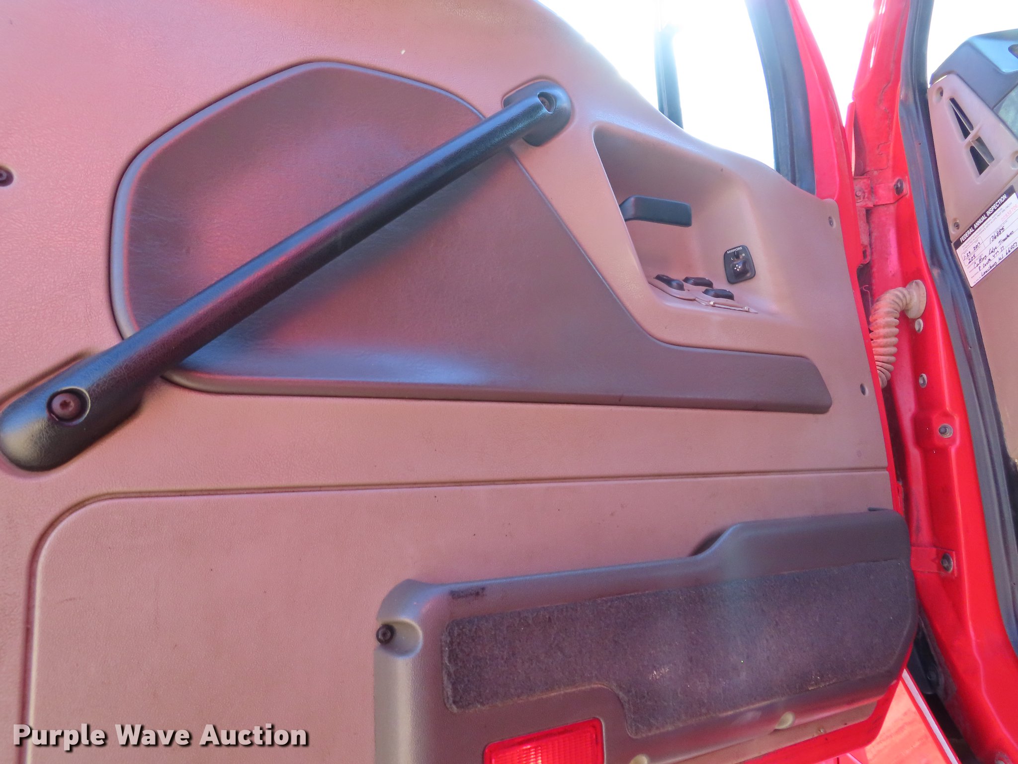 Purple Wave is selling a used Construction Dump Truck in Kansas. This item is a 2008 Sterling LT9500 dump truck with the following: 288,667 miles on odometer, 11,279 hours on meter, Mercedes Benz 7DDXH12 12.8L L6 turbo diesel engine, 450 HP, Allison automatic transmission, Inter-axle differential lock, Quad axle, Steerable air up/down pusher axles, AC and heat, Tilt, Cruise, AM/FM, Power windows and mirrors, Heated mirrors, Air suspension seat, Air ride cab, PTO, Ox Bodies steel dump bed, 17'L x 98.5"W, 42" side height, 16" side board height, Single ram hoist, Air operated end gate, Roll tarp, Single fuel tank, Spring suspension, Air brakes, 425/65R22.5 front tires, 225/70R22.5 pusher axle tires, 11R22.5 rear tires, GVWR 89,500 lbs, FAWR 20,000 lbs, IAWR 23,000 lbs, RAWR 23,000 lbs, 13,200 lbs pusher axle GAWR