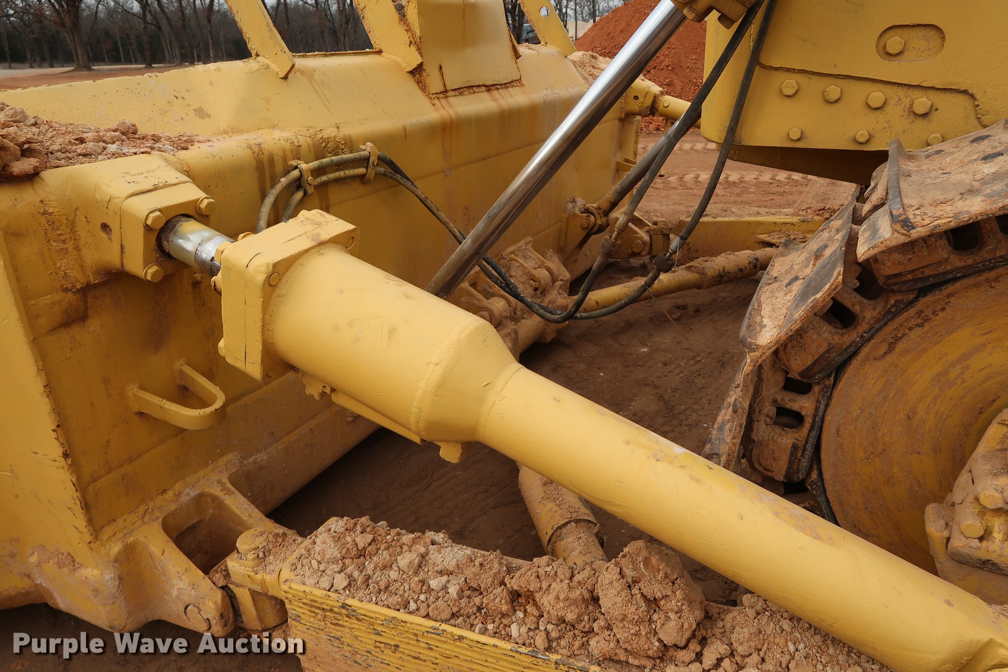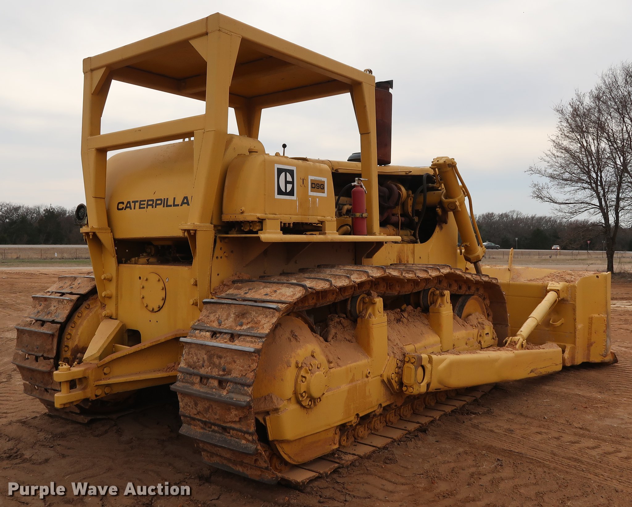 Purple Wave is selling a used Crawler Dozer in Oklahoma. This item is a 1971 Caterpillar D9G dozer with the following: Caterpillar D353 six cylinder turbo diesel engine, 385 HP, Powershift transmission, 3F-3R gears, Canopy, Clutch brake steering, 15" U single tilt dozer blade, Rear drawbar, Seven bottom rollers, 27" single grouser track pads, Serial 66A9881