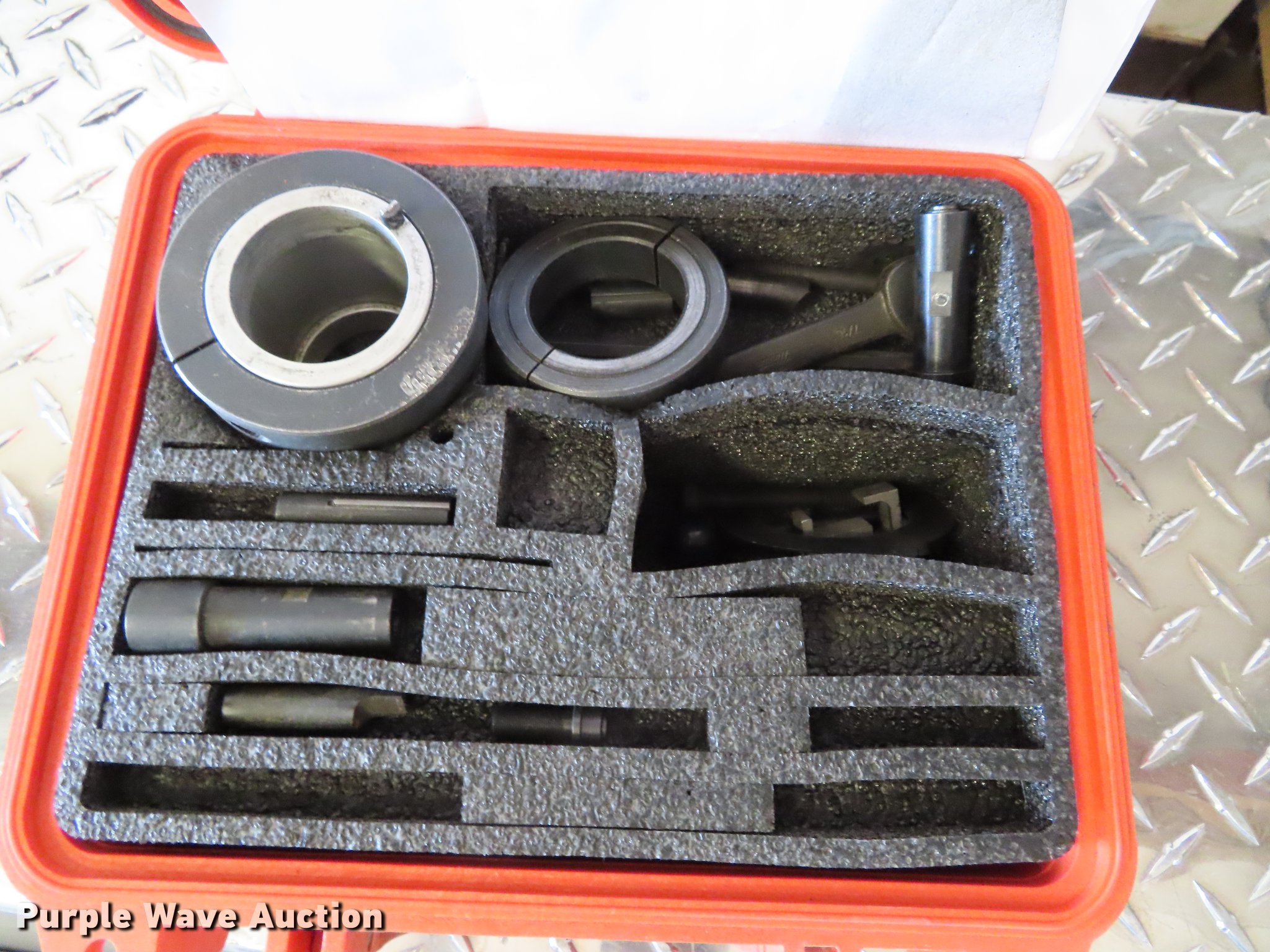 Purple Wave is selling a used Boring Mill in Kansas. This item is a Line bore equipment with the following: 1" to 8" diameter bore capacity, 110V reversible two speed motor, Setup cones and bearings, Automatic feed, 1/4", 3/8", and 1/2" square cutting bits, Tool bit adjustment tool, Complete inside bore measurement tool kit, 32"L x 1 3/4" bore bar, 48"L x 1 3/4" bore bar, 72"L x 1 3/4" bore bar, 72"L x 1 1/4" bore bar, 48"L x 1 1/4" bore bar, 48"L x 7/8" bore bar, Automatic bore welder, 1" to 10" bore weld capacity, Nozzles, Tips, Remote start, 1" to 12" micro meter set, Snap ring groove cut tool kit
