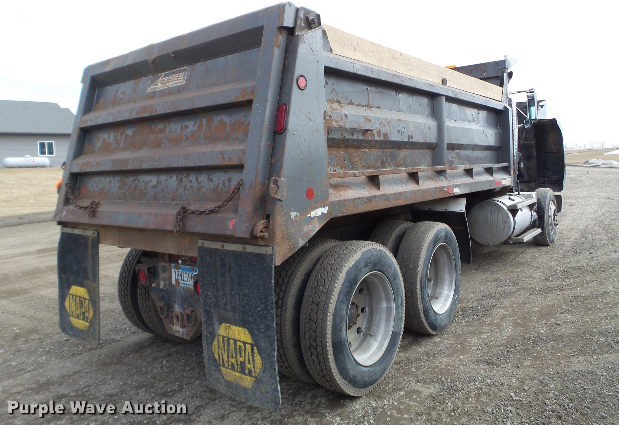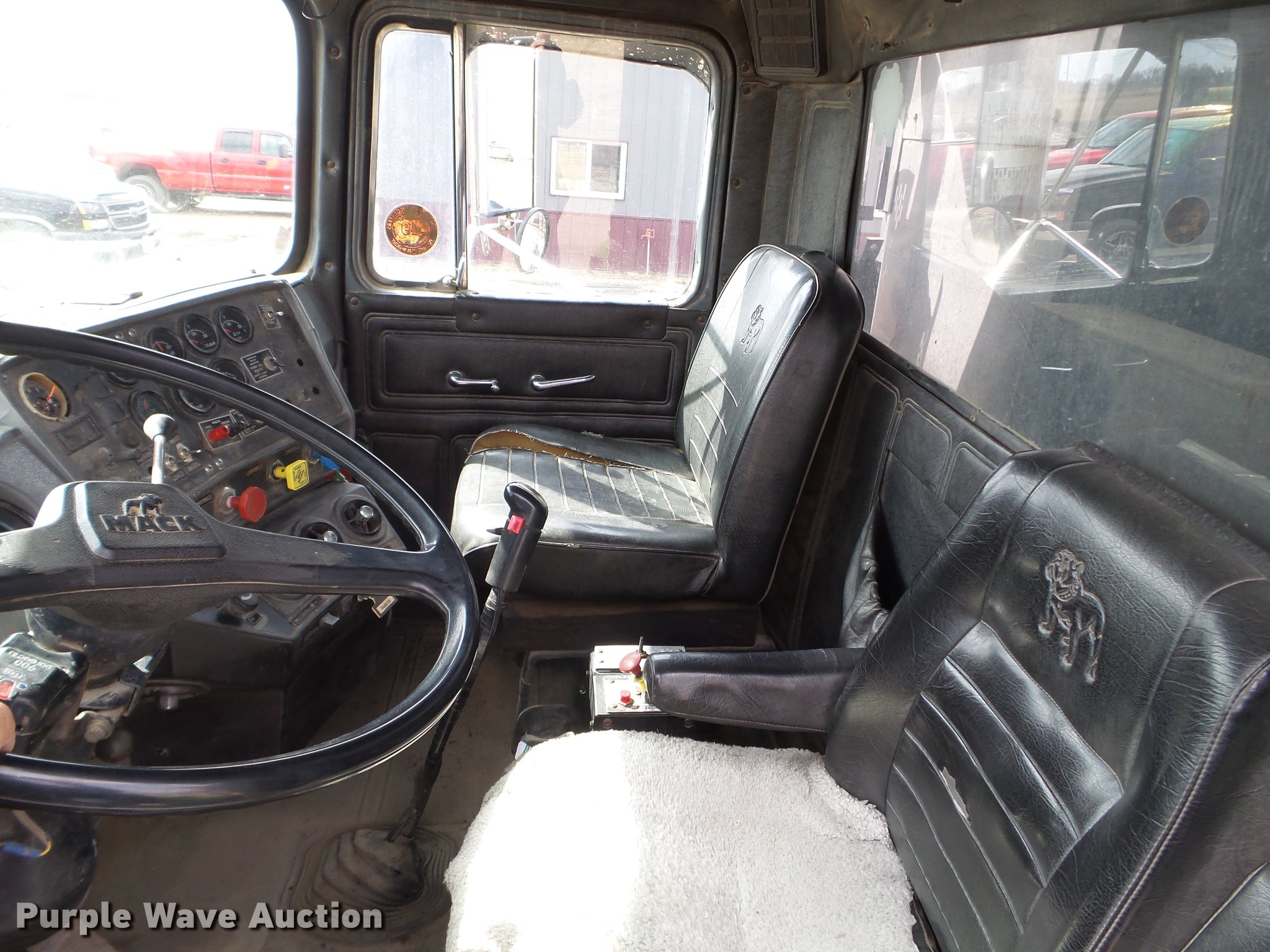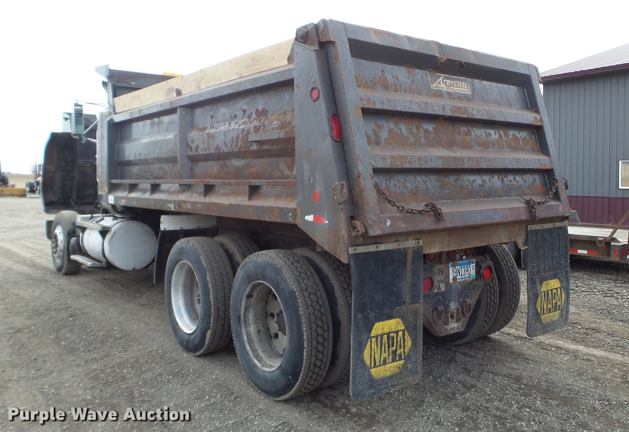 Purple Wave is selling a used Construction Dump Truck in Minnesota. This item is a 1987 Mack RW713 dump truck with the following: 502,968 miles on odometer, 3,080 hours on meter, Mack E7 six cylinder diesel engine, 13 speed manual transmission, Tandem axle, Inter-axle differential lock, Heat, AM/FM, Air suspension seat, Crysteel steel barrel dump bed, 16'L x 96"W, 40" side height, 6" side board height, Single ram hoist, Air operated end gate, Dual fuel tanks, Camelback suspension, Air brakes, Engine brake, 11R22.5 front tires, 285/27R24.5 rear tires