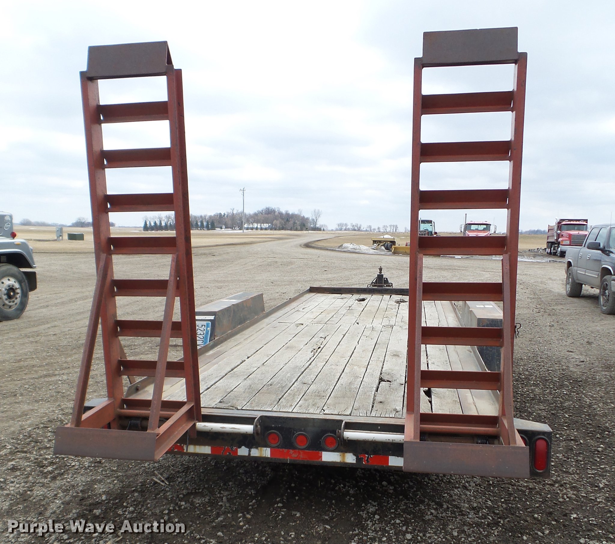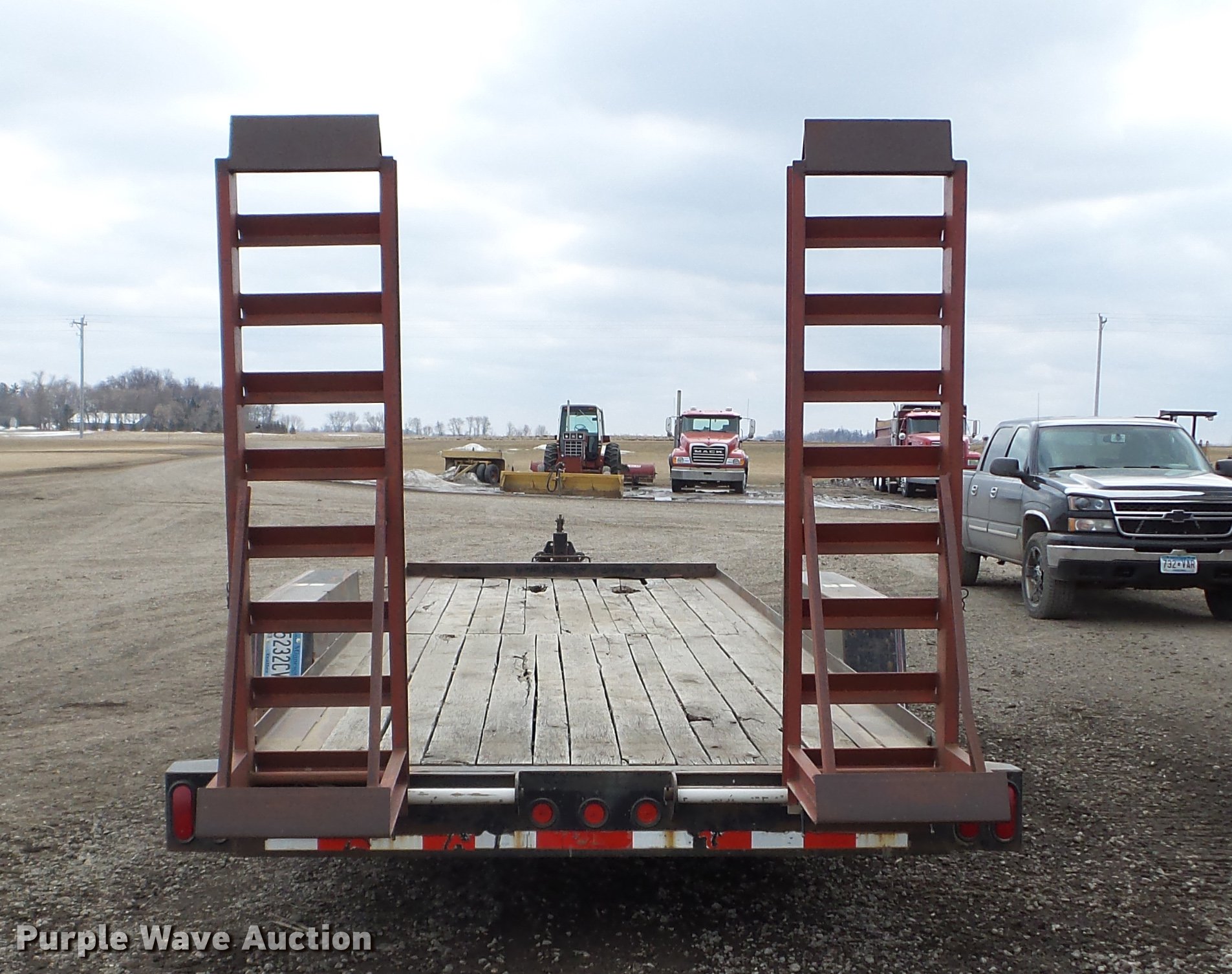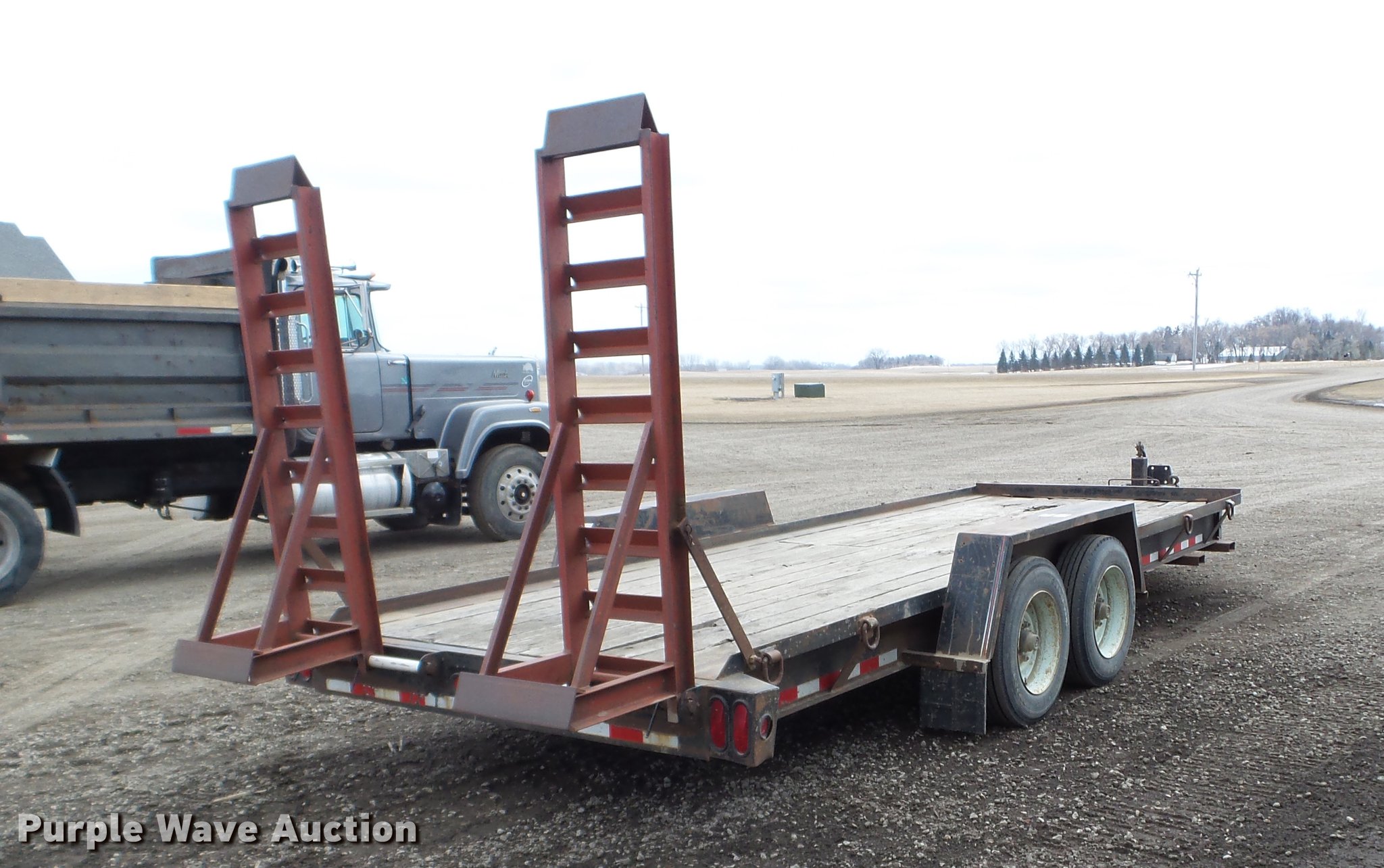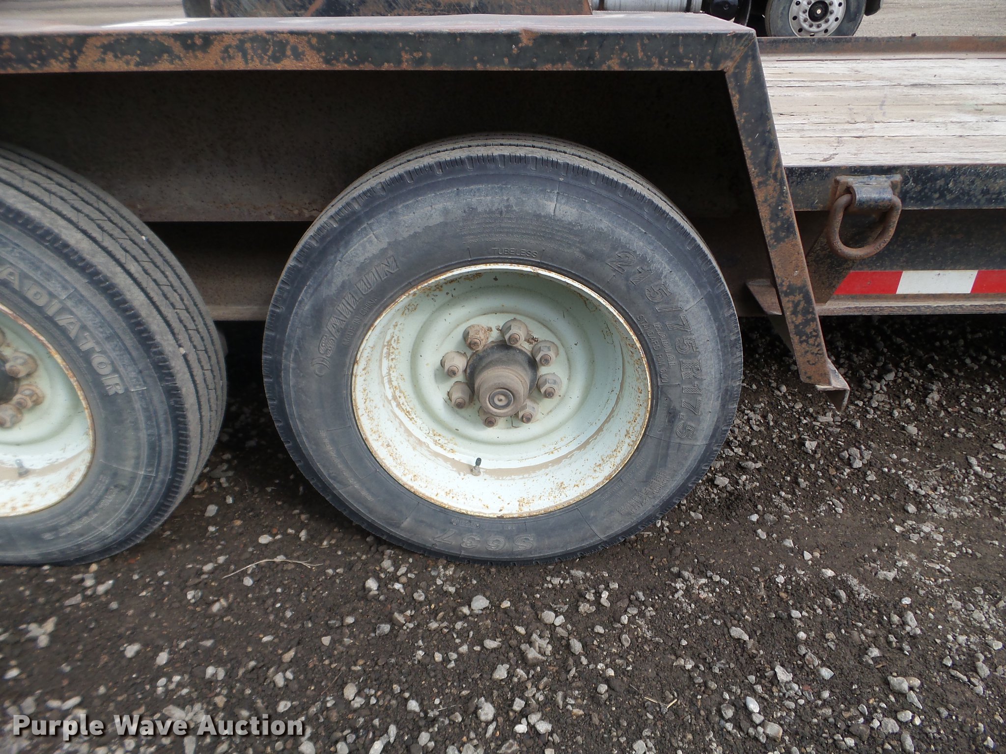 Purple Wave is selling a used Equip. Trailer in Minnesota. This item is a 1998 Towmaster T-16DD equipment trailer with the following: 25' overall length, 20'L x 82"W wood deck, 6'L ramps, 24" floor height, D-ring tie downs, Recessed toolbox, Pintle hitch, Single leg landing gear, Spring suspension, Electric brakes, Tandem axle, Steel wheels, 215/75R17.5 tires, GVWR 16,600 lbs