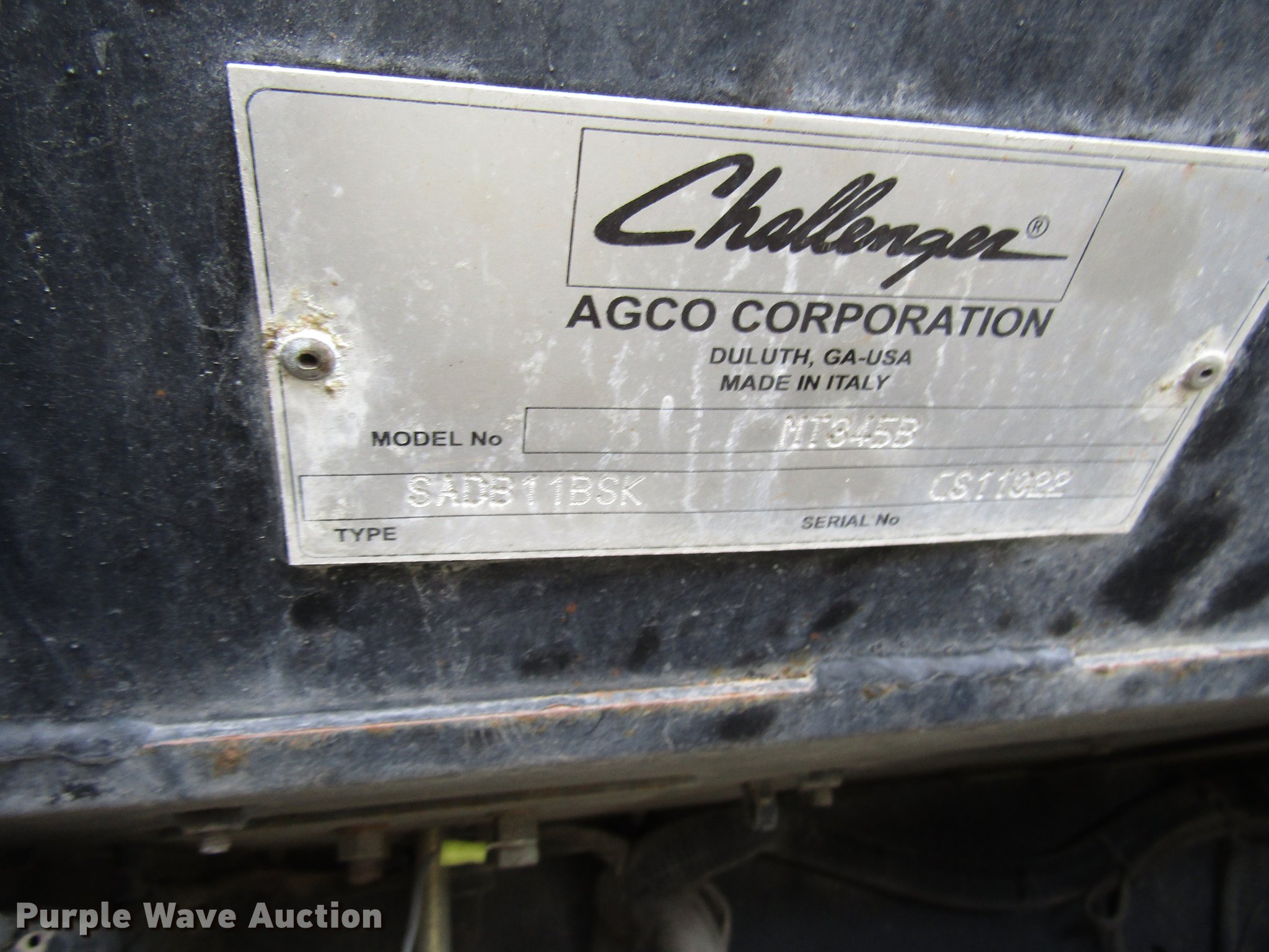 Purple Wave is selling a used Tractor in West Virginia. This item is a 2007 Challenger MT345B tractor with the following: 289 hours on meter, Sisu three cylinder diesel engine, Synchro transmission, 12F-12R gears, Left-hand reverser, Differential lock, AC and heat, AM/FM, Three point, 540 PTO, (3) rear hydraulic remote sets, 84" wheelbase, 7.50-16 front tires, 14.9-28 rear tires, Serial CS11022