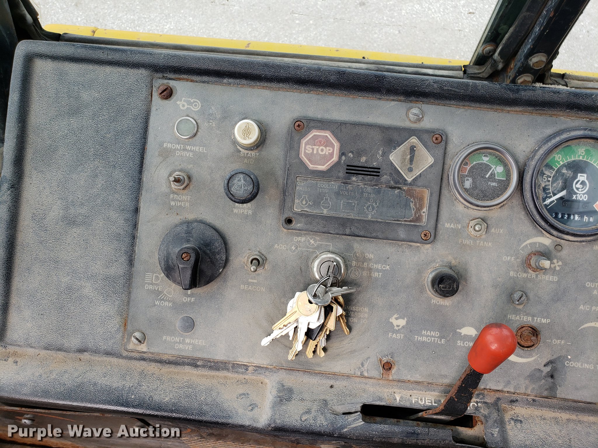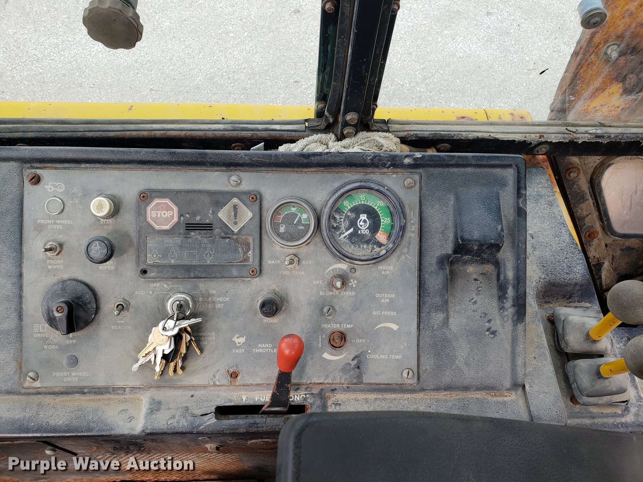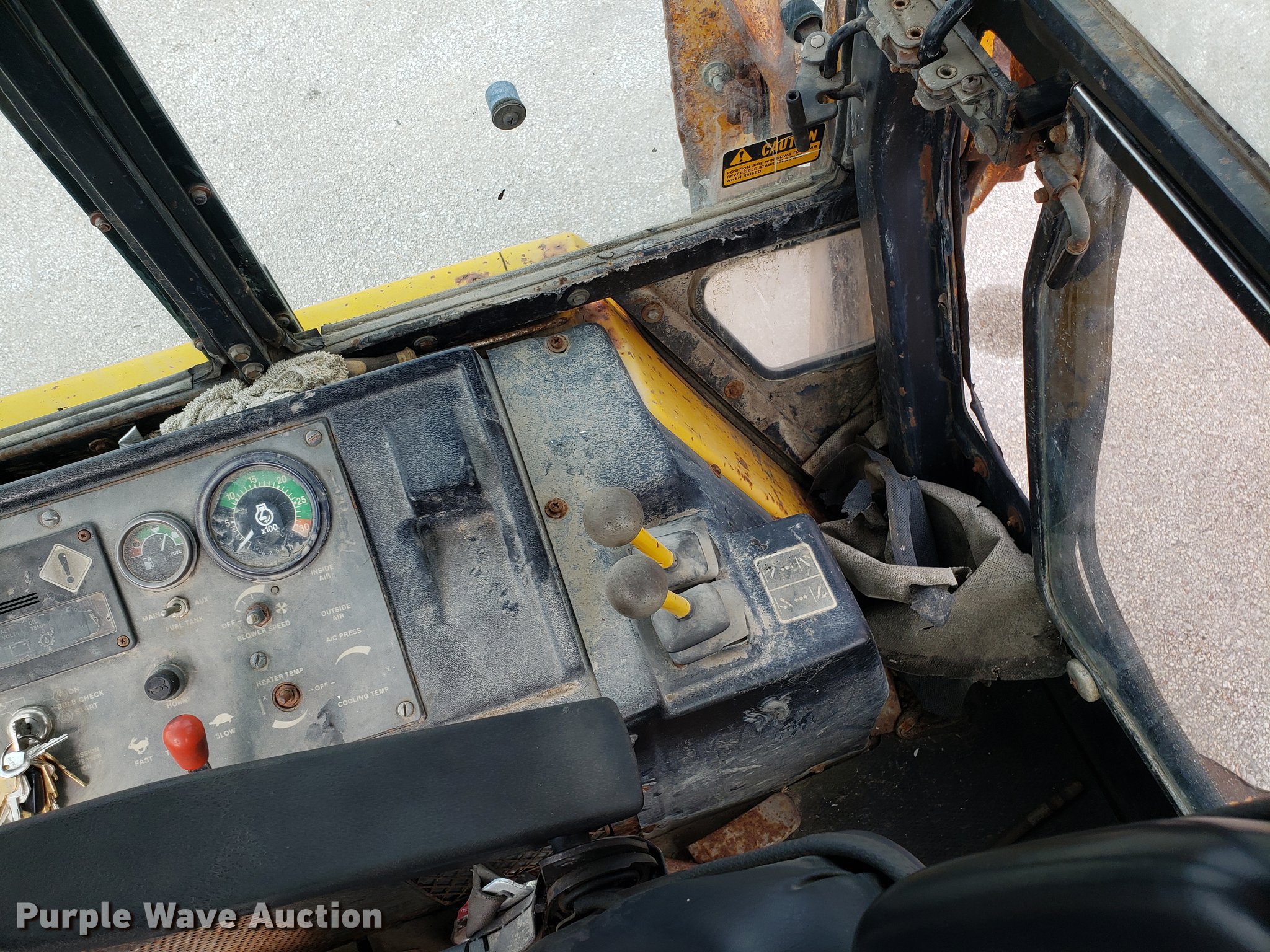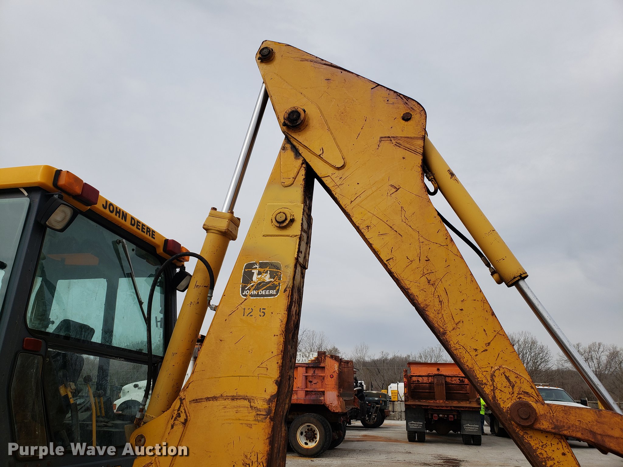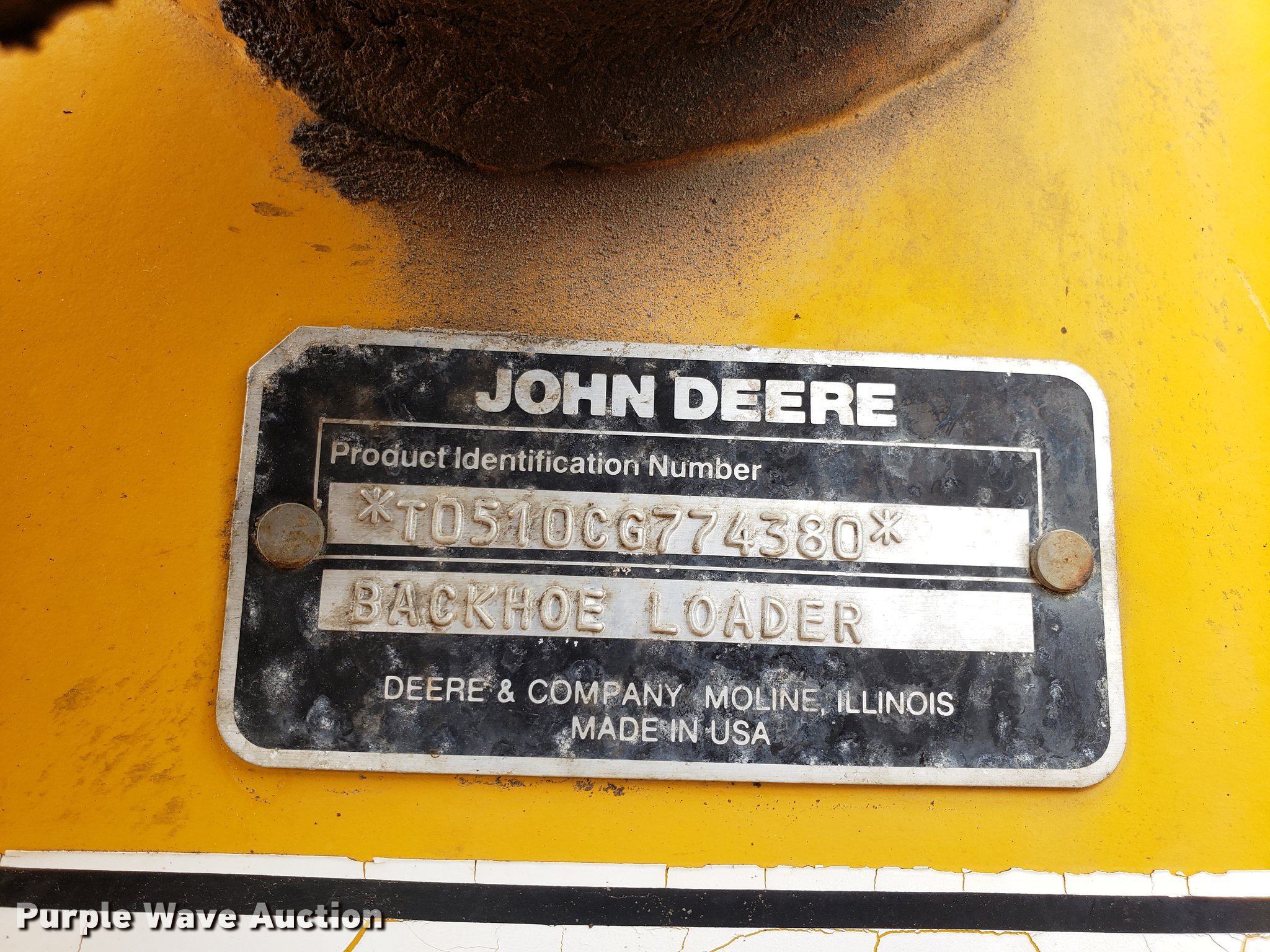 Purple Wave is selling a used Tractor Loader Backhoe in Missouri. This item is a 1991 John Deere 510C backhoe with the following: 5,928 hours on meter, Four cylinder diesel engine, Shuttle shift transmission, 4F-4R gears, Four wheel drive, Enclosed cab, Heat, Joystick loader controls, Two stick backhoe controls, Suspension seat, 90"W general purpose loader bucket, 24"W backhoe bucket, (4) teeth, 21-24 tires, Dead batteries, Low tire, Serial T0510CG774380