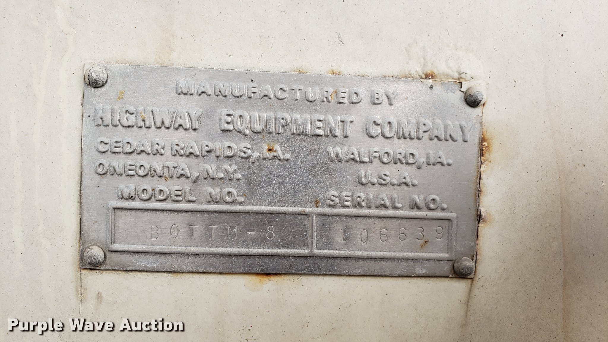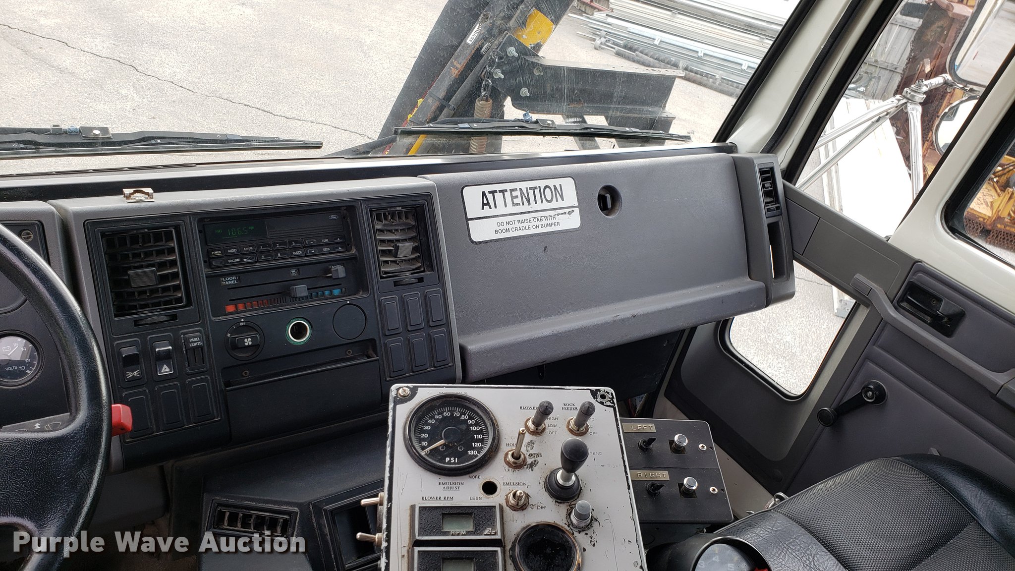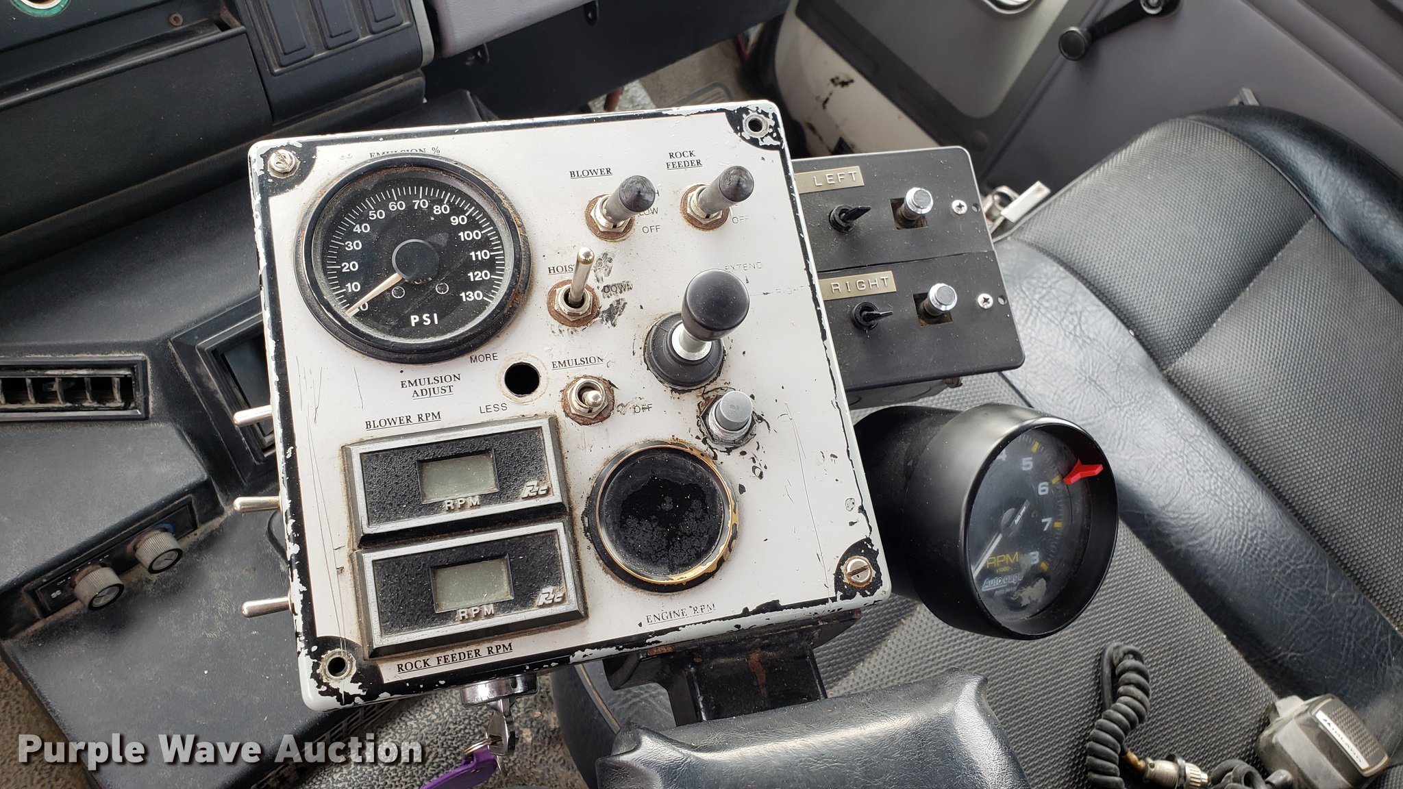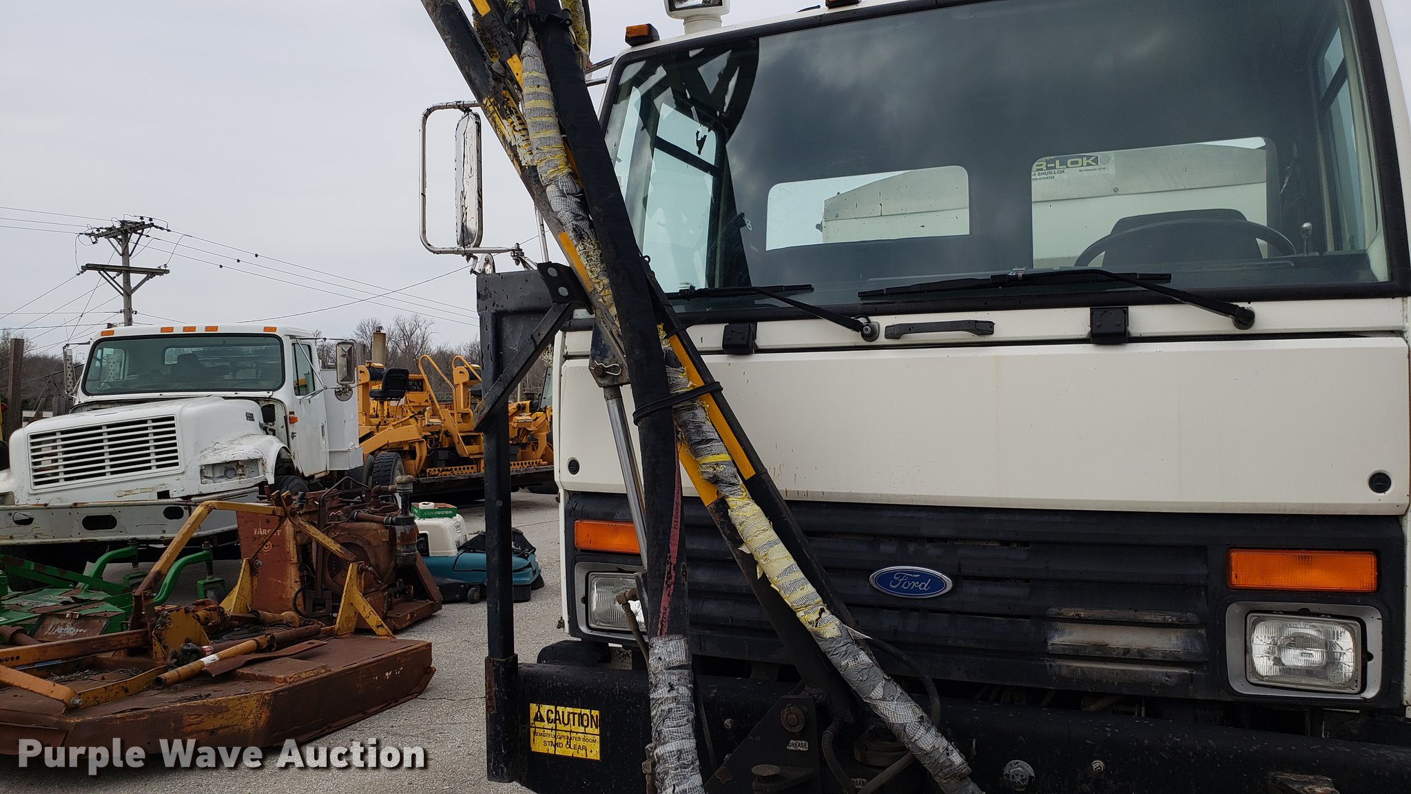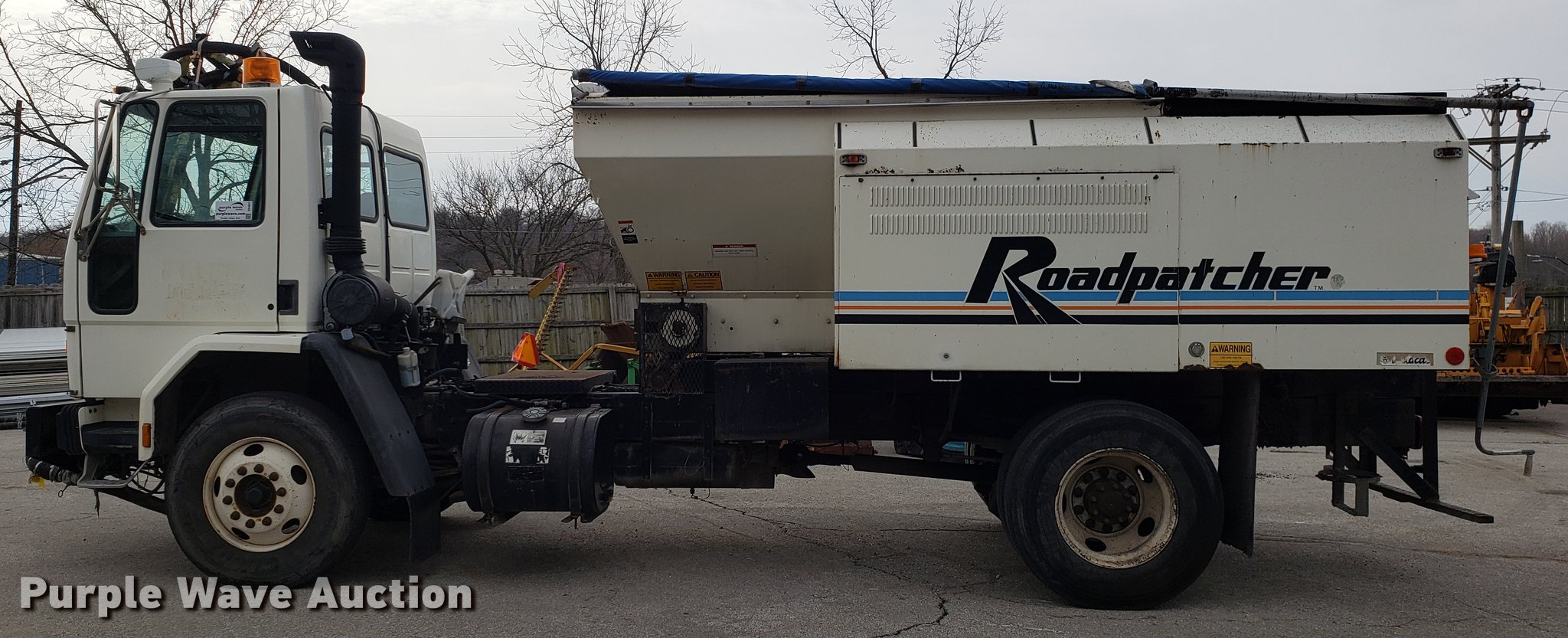 Purple Wave is selling a used Oil Distributor Truck in Missouri. This item is a 1997 Ford CF8000 pothole patcher truck with the following: 74,510 miles on odometer, Cummins 5.9L L6 diesel engine, Allison automatic transmission, Heat, AM/FM, Air suspension seat, Roadpatcher Battam 8 pothole patcher bed, Four cylinder diesel engine, Unknown operating condition, Serial 106639, Spring suspension, 11R22.5 tires