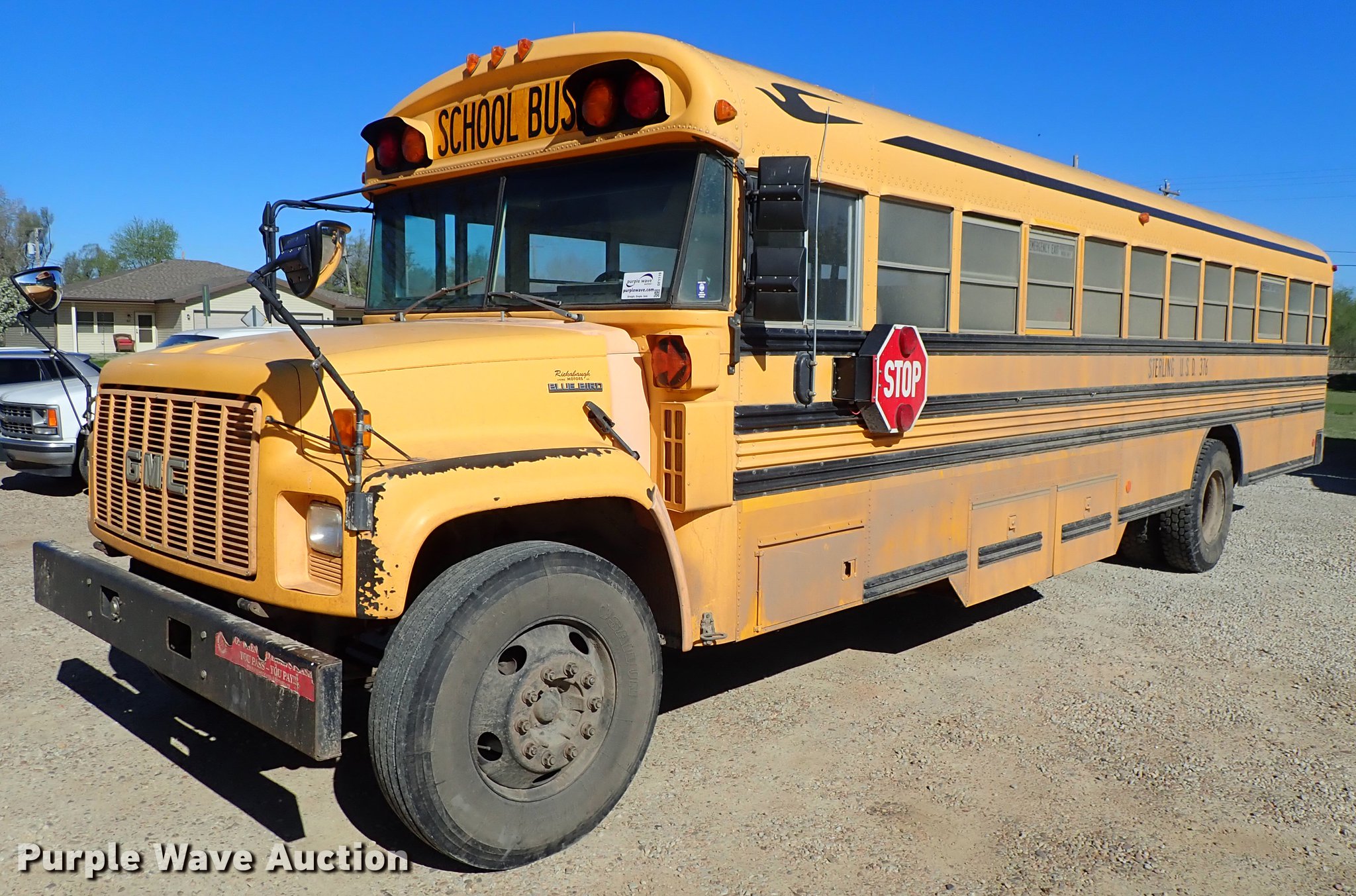 This 1996 GMC B7 Blue Bird school bus will sell to the highest bidder regardless of price.