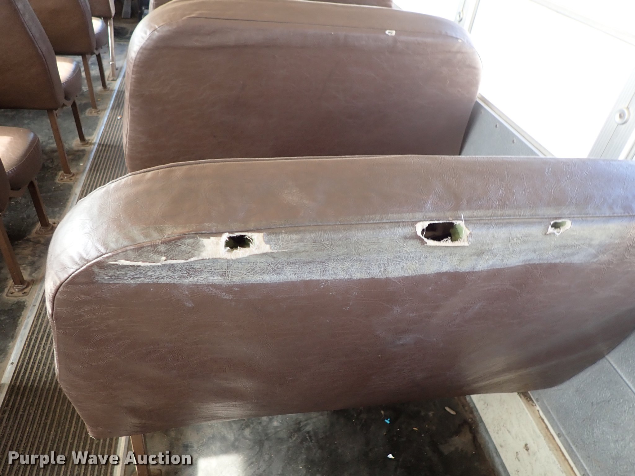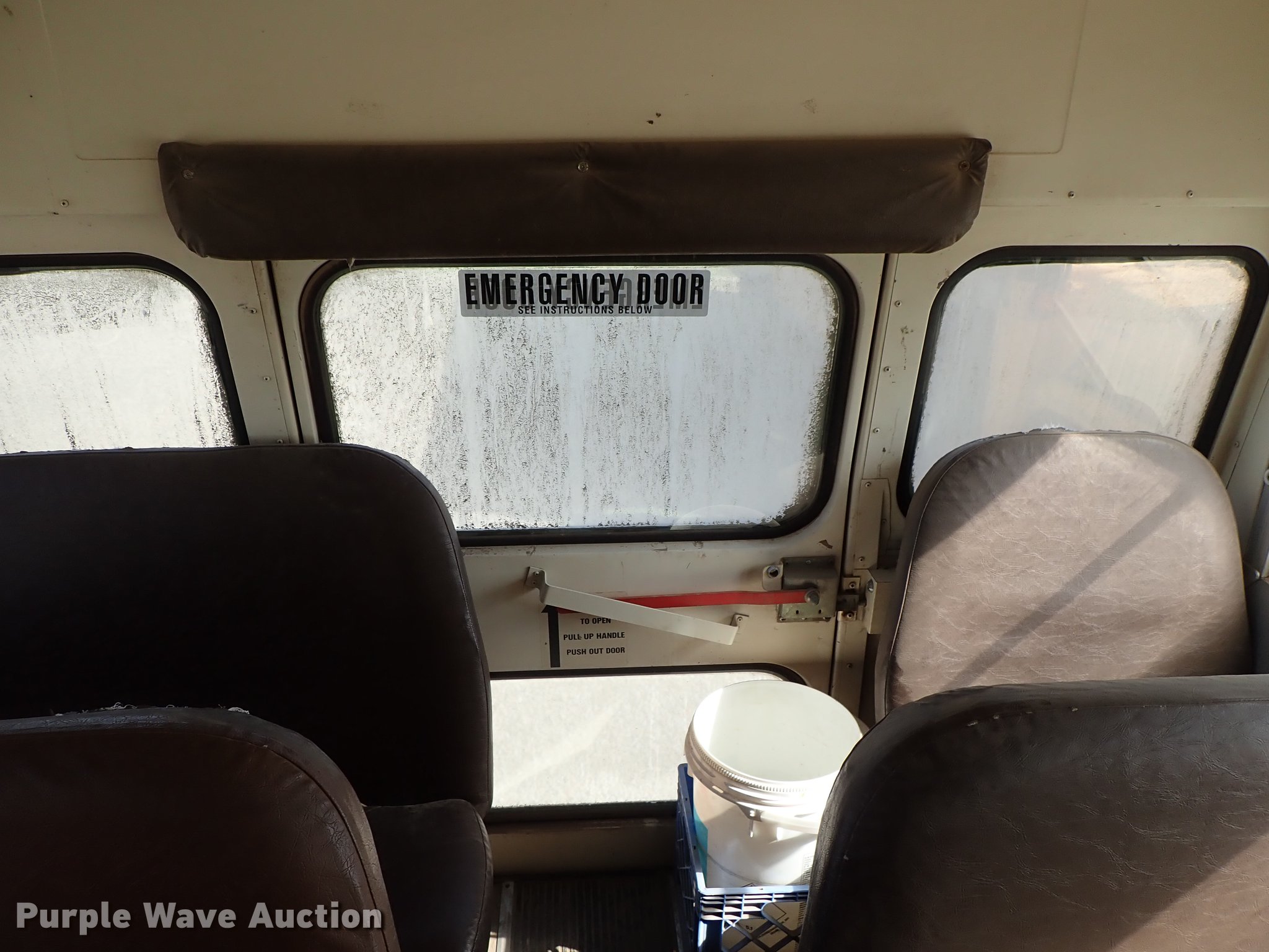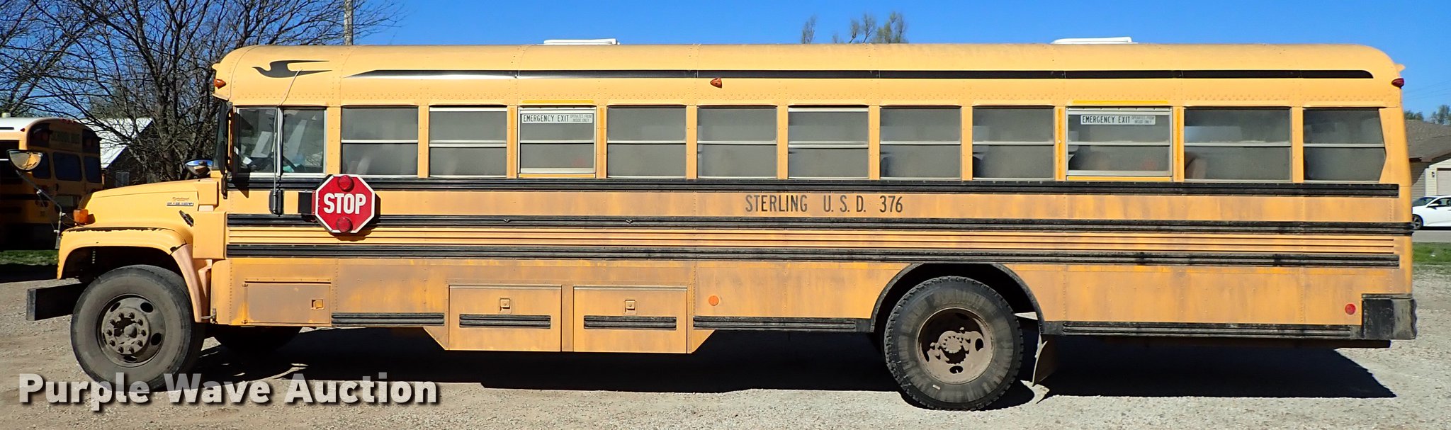 Purple Wave is selling a used Bus in Kansas. This item is a 1996 GMC B7 Blue Bird school bus with the following: 182,746 miles on odometer, Caterpillar 3116 6.6L L6 diesel engine, Automatic transmission, Single axle, Heat, AM/FM, 65 passenger capacity, Ceiling, rear, and side emergency exits, Block heater, Hydraulic brakes, 11R22.5 tires, CB radio not included, Brakes need to be replaced