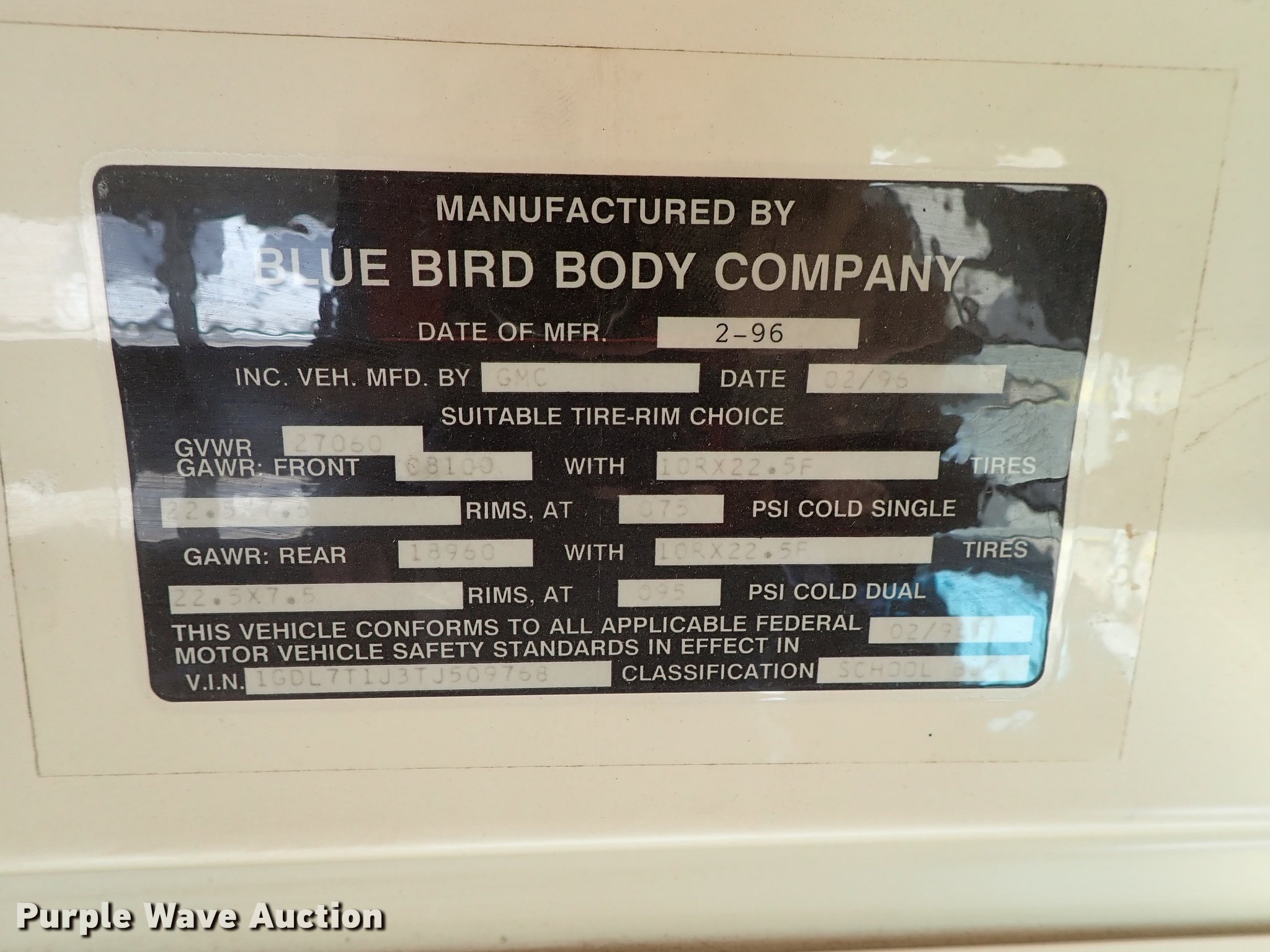 Take a look at this used 1996 GMC B7 Blue Bird school bus being sold on May 7th, 2019 in the SOLD! May 7 Government Auction made by GMC. Take a look at all of the item information below or take a look at similar auctions for Transit Vehicles.
