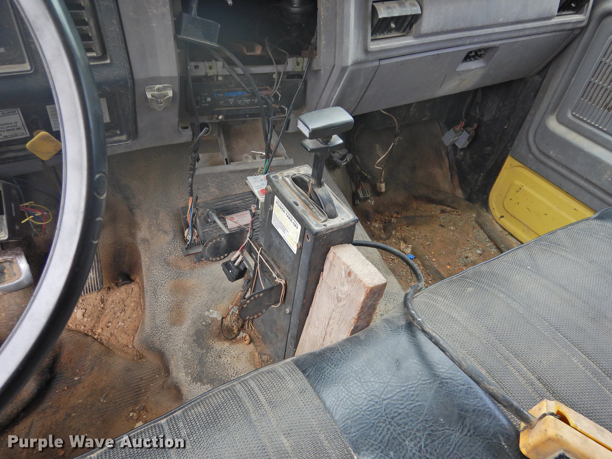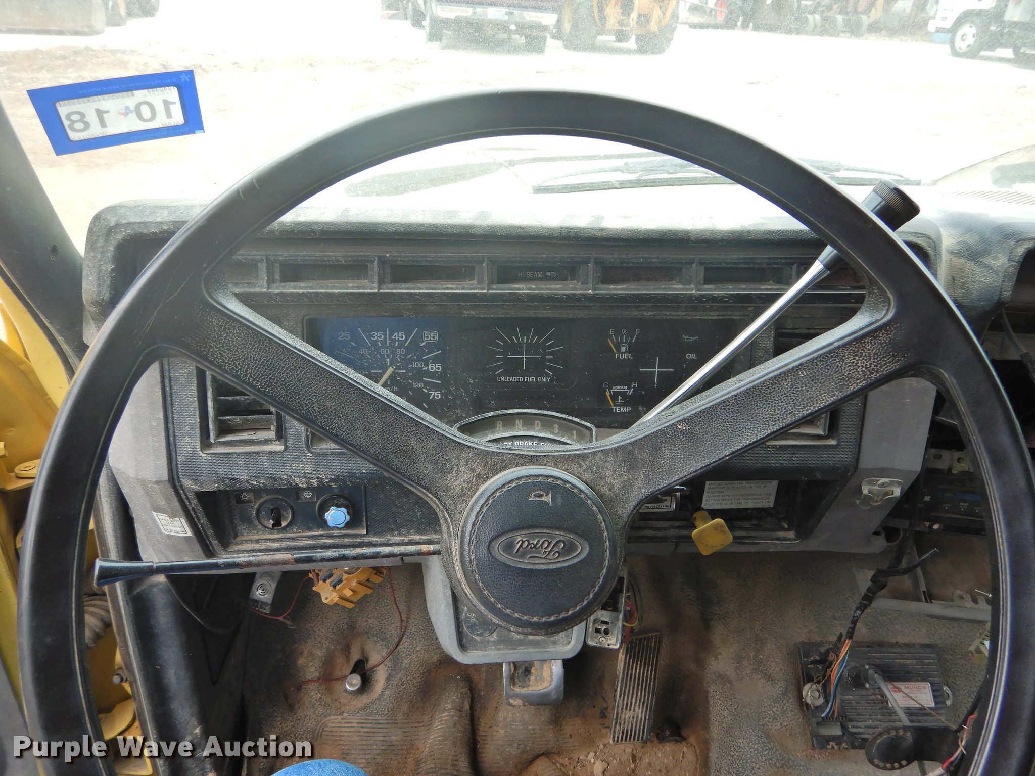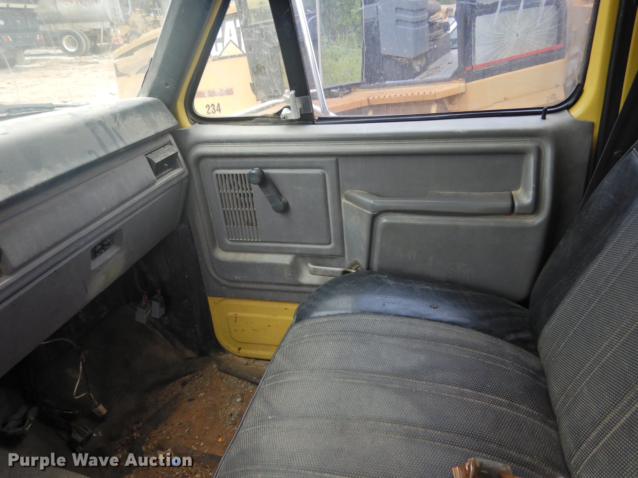 Purple Wave is selling a used Construction Dump Truck in Texas. This item is a 1998 Ford F700 dump truck with the following: 117,688 miles on odometer, 7.0L V8 gas engine, Automatic transmission, Single axle, Heat, Suspension seat, PTO, Ox Bodies steel dump bed, 10'L x 8'W, 33.5" side height, 6" side board height, Dual ram hoist, Manual operated end gate, Single fuel tank, Pintle hitch, Spring suspension, Hydraulic brakes, 156" wheelbase, 295/75R22.5 tires, FAWR 5,002 lbs, RAWR 3,553 lbs, Brake issues