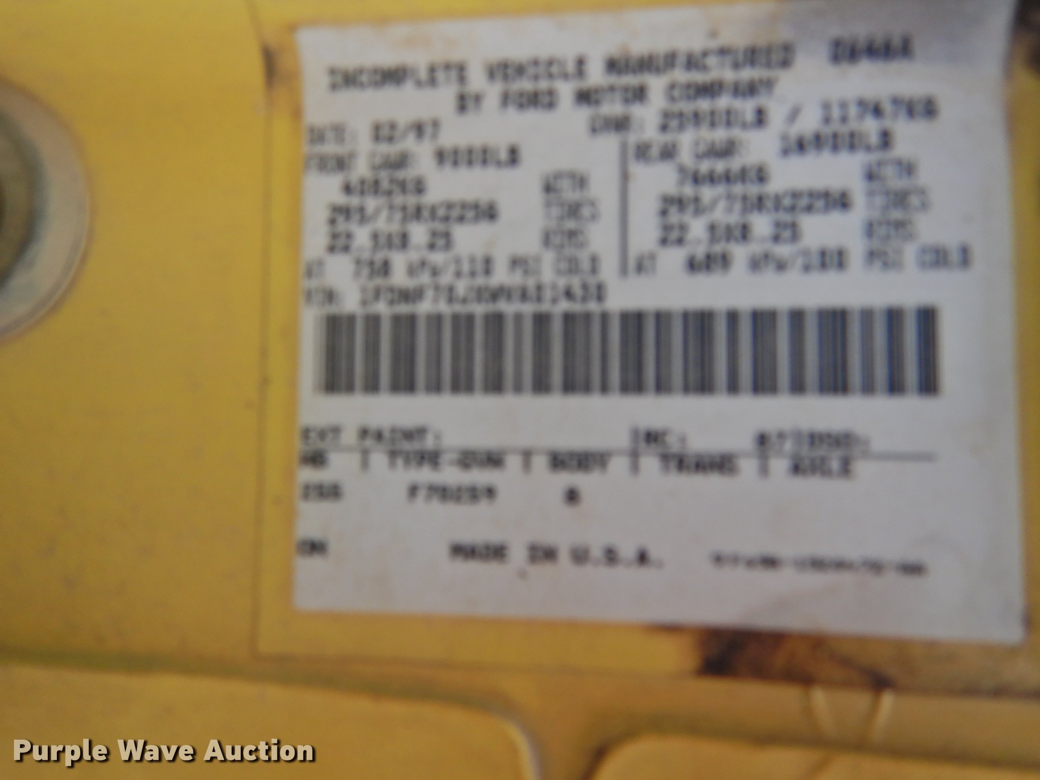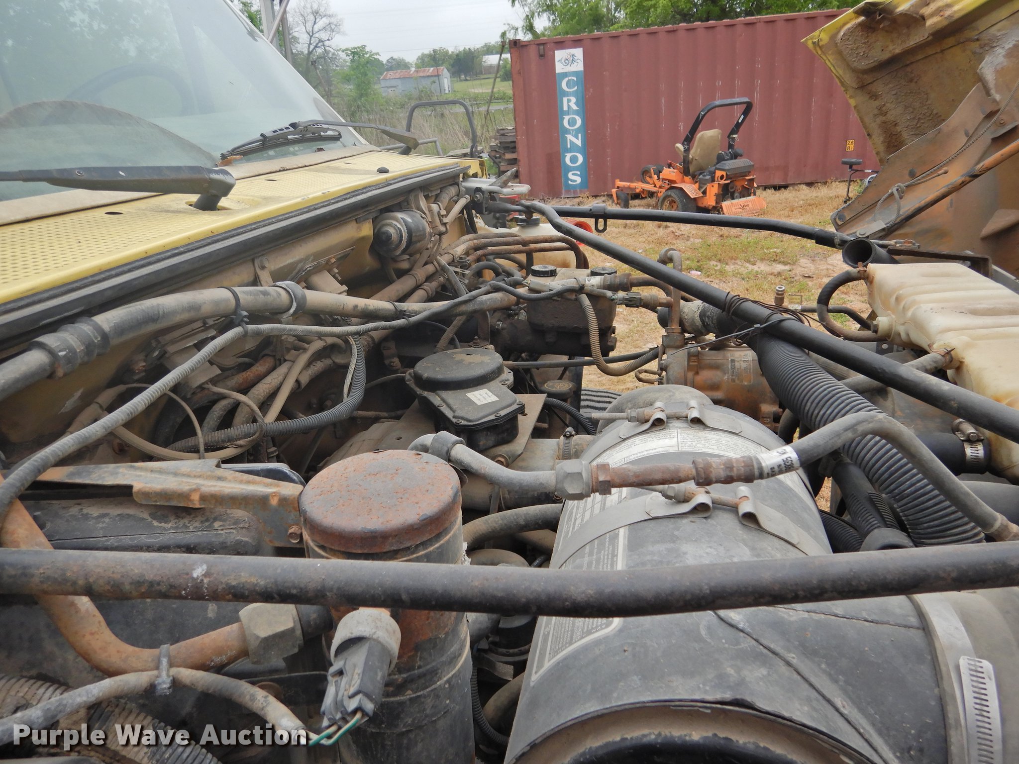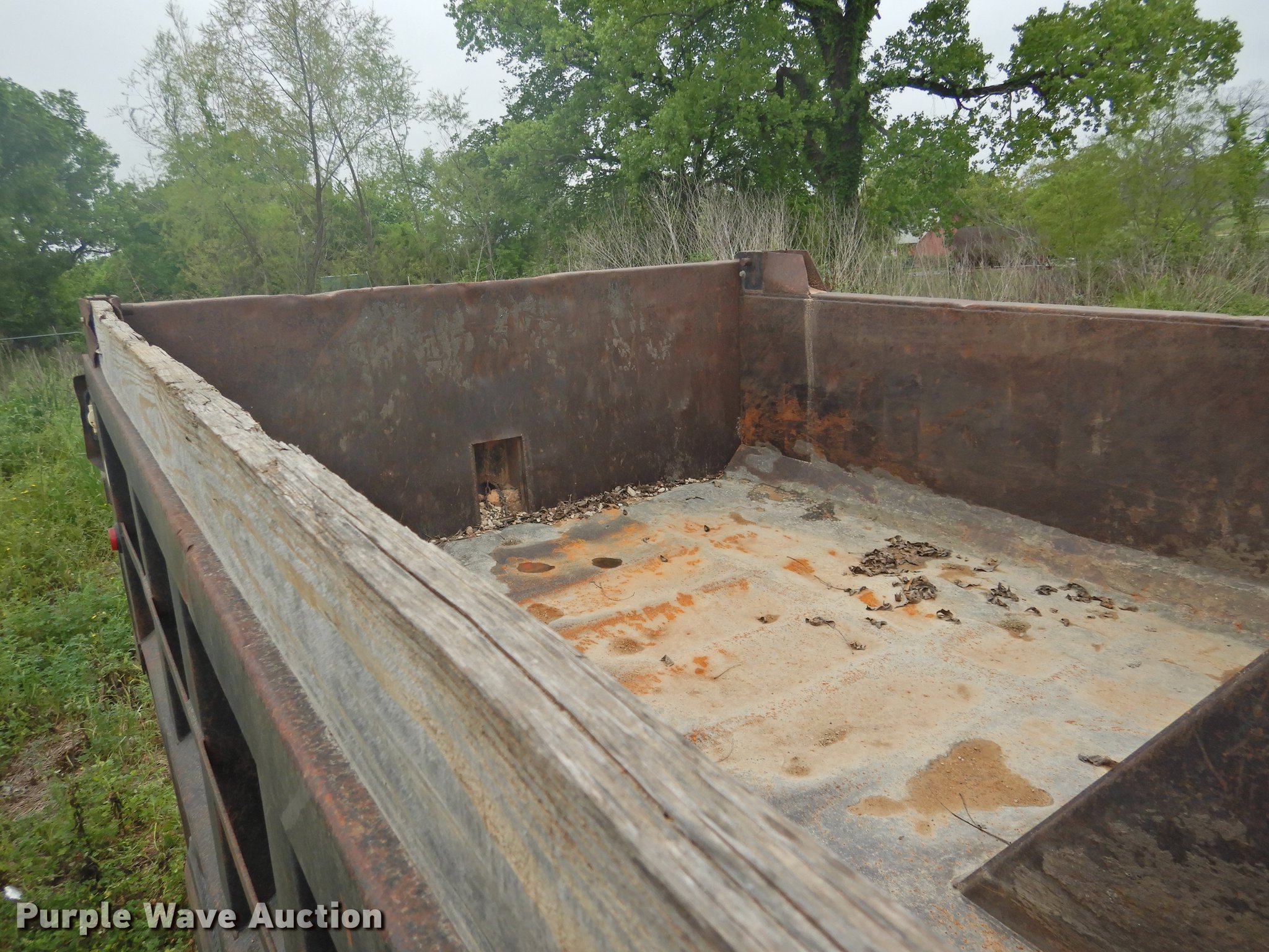 Purple Wave is selling a used Construction Dump Truck in Texas. This item is a 1998 Ford F700 dump truck with the following: 117,688 miles on odometer, 7.0L V8 gas engine, Automatic transmission, Single axle, Heat, Suspension seat, PTO, Ox Bodies steel dump bed, 10'L x 8'W, 33.5" side height, 6" side board height, Dual ram hoist, Manual operated end gate, Single fuel tank, Pintle hitch, Spring suspension, Hydraulic brakes, 156" wheelbase, 295/75R22.5 tires, FAWR 5,002 lbs, RAWR 3,553 lbs, Brake issues