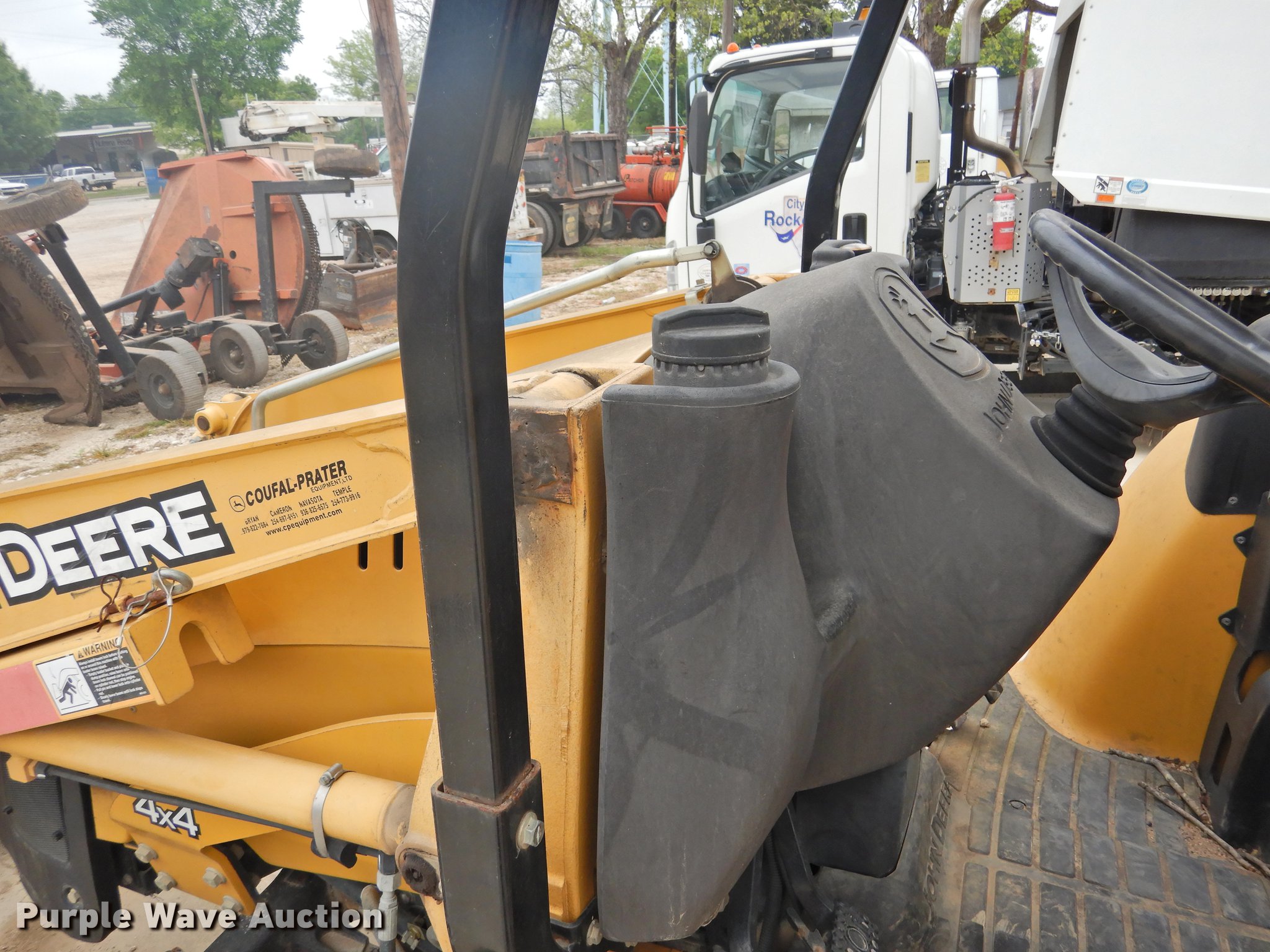 2008 John Deere 110 backhoe. 2,090 hours on meter, John Deere TNV88 2.2L four cylinder diesel engine, Powershift transmission, Four wheel drive, EROPS, Suspension seat, Wobble stick backhoe controls, Foot control, Backup alarm, Front and rear work lights, John Deere 72"W loader bucket Bolt-on cutting edge, Auxiliary hydraulics, John Deere 18"W backhoe bucket Weld-on cutting edge, Teeth, Auxiliary hydraulics, Galaxy 10 x 16.5 front tires, Galaxy 17.5 x 24 rear tires, Transmission housing cracked Transmission leak, Serial LV0110T711197. City of Rockdale. 465 Mill Ave. Rockdale, TX 76567