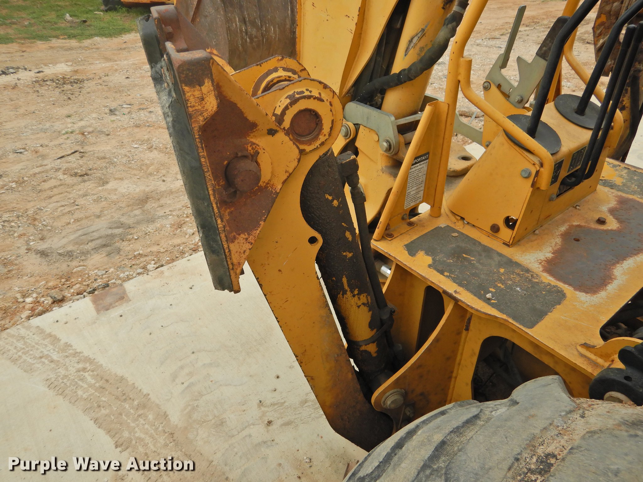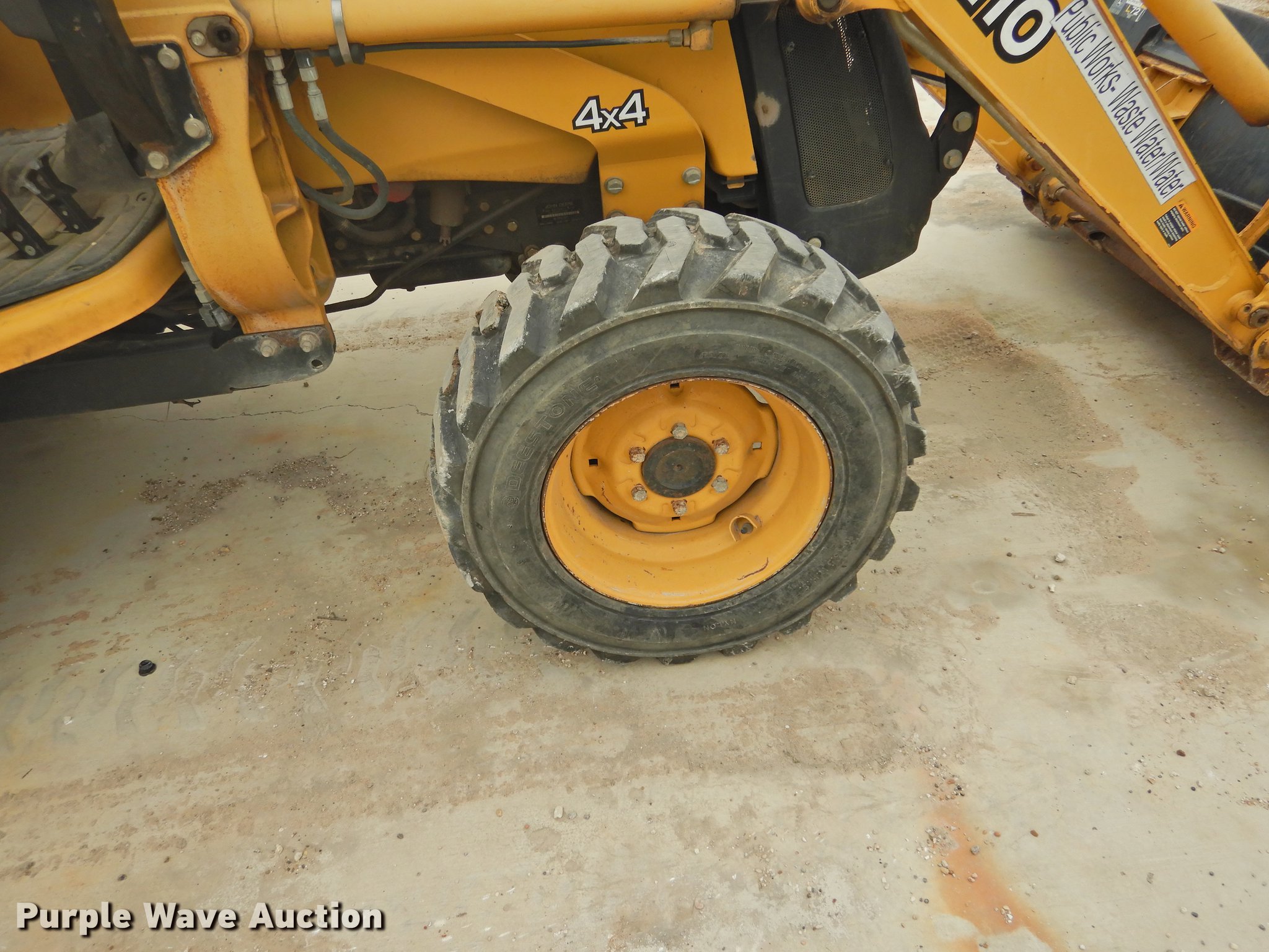 Purple Wave is selling a used Tractor Loader Backhoe in Texas. This item is a 2008 John Deere 110 backhoe with the following: 2,090 hours on meter, John Deere TNV88 2.2L four cylinder diesel engine, Powershift transmission, Four wheel drive, EROPS, Suspension seat, Wobble stick backhoe controls, Foot control, Backup alarm, Front and rear work lights, John Deere 72"W loader bucket, Bolt-on cutting edge, Auxiliary hydraulics, John Deere 18"W backhoe bucket, Weld-on cutting edge, Teeth, Auxiliary hydraulics, Galaxy 10 x 16.5 front tires, Galaxy 17.5 x 24 rear tires, Transmission housing cracked, Transmission leak, Serial LV0110T711197