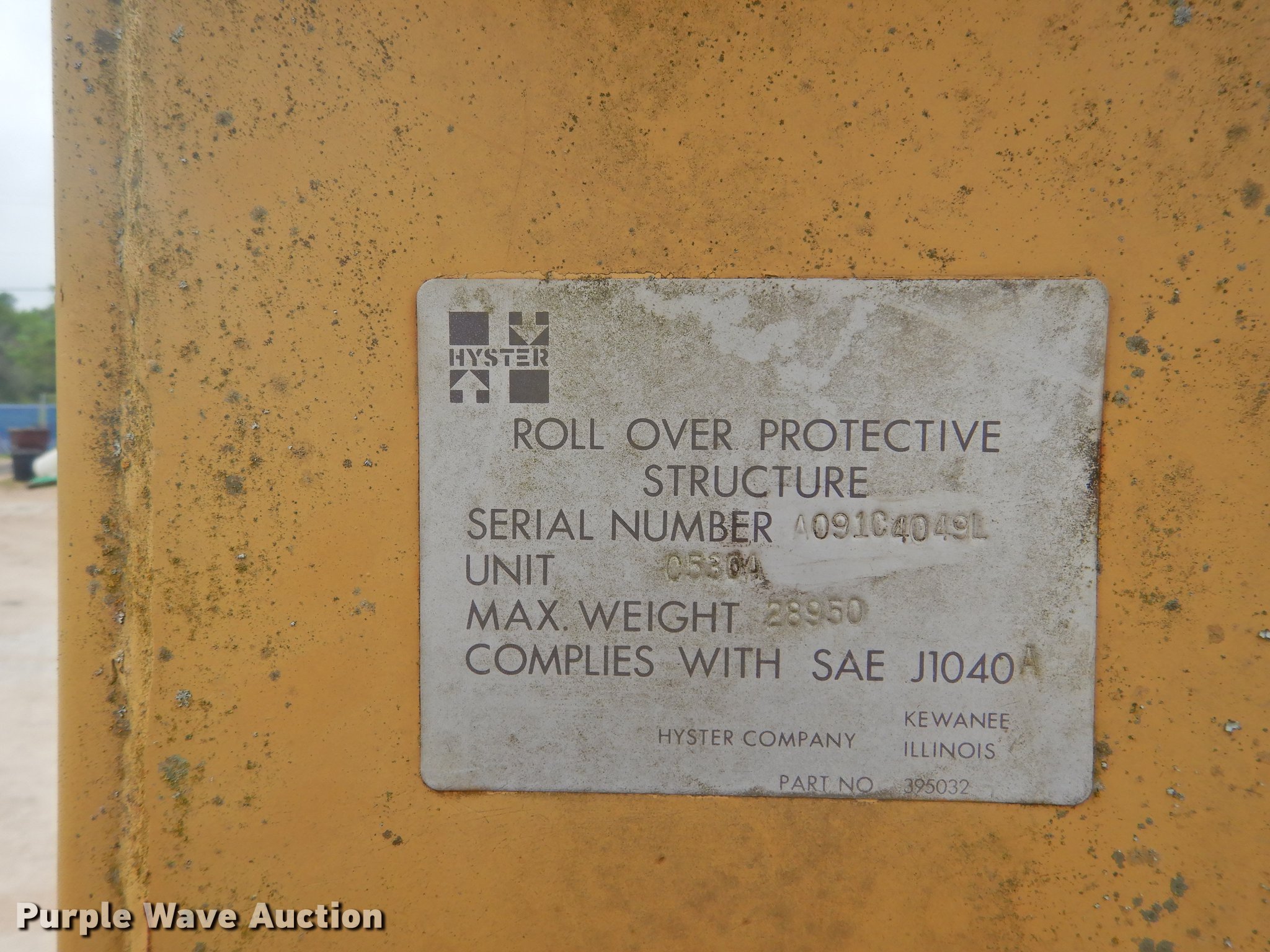 Purple Wave is selling a used Pneumatic Roller in Texas. This item is a 1990 Hyster C530A pneumatic roller with the following: 908 hours on meter, Six cylinder diesel engine, Hydrostatic transmission, OROPS, Dual operator stations, Suspension seat, (9) wheels, Serial A091040491