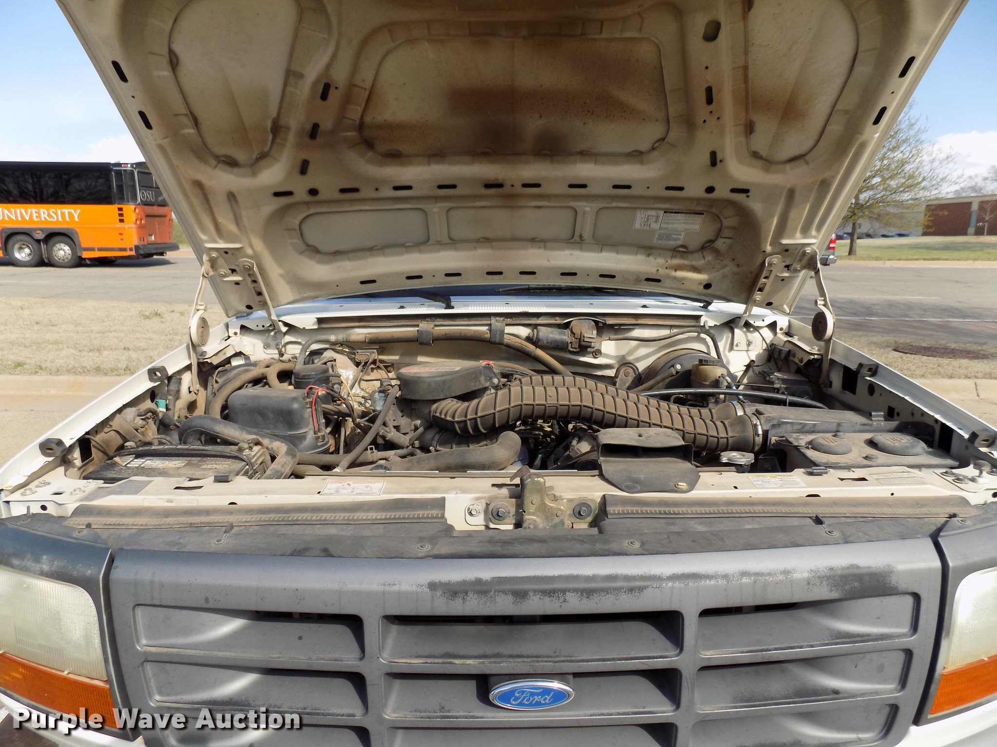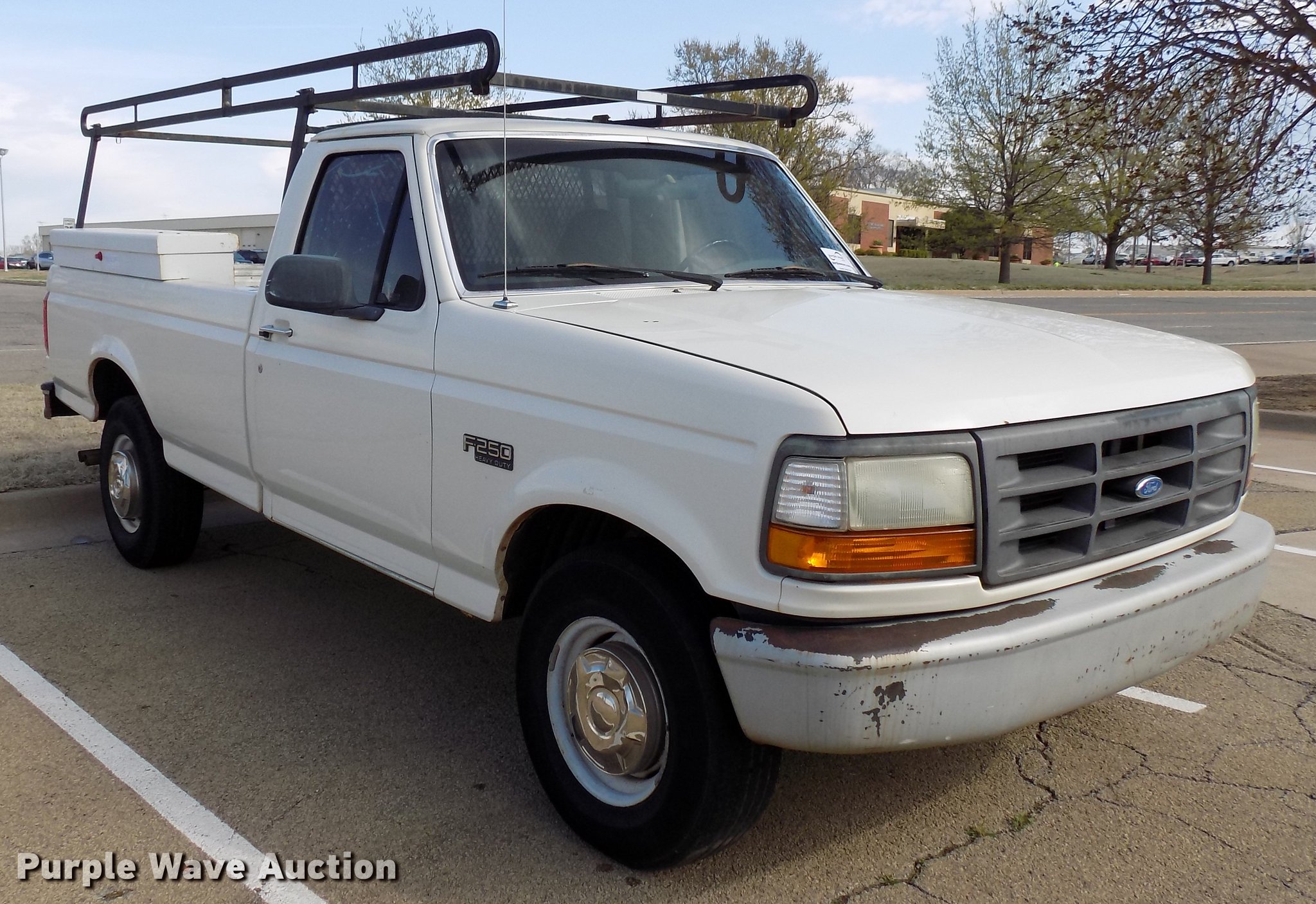 Purple Wave is selling a used 3/4 or 1 Ton Pickup or Van in Oklahoma. This item is a 1997 Ford F250 pickup truck with the following: 166,822 miles on odometer, 5.8L V8 OHV 16V gas engine, Automatic transmission, AC and heat, Tilt, Cruise, AM/FM, Manual windows and locks, Cloth interior, Long bed, 159"L x 55"W utility rack, 235/65R16 tires, Sale# 1924-KP, Unit# 888