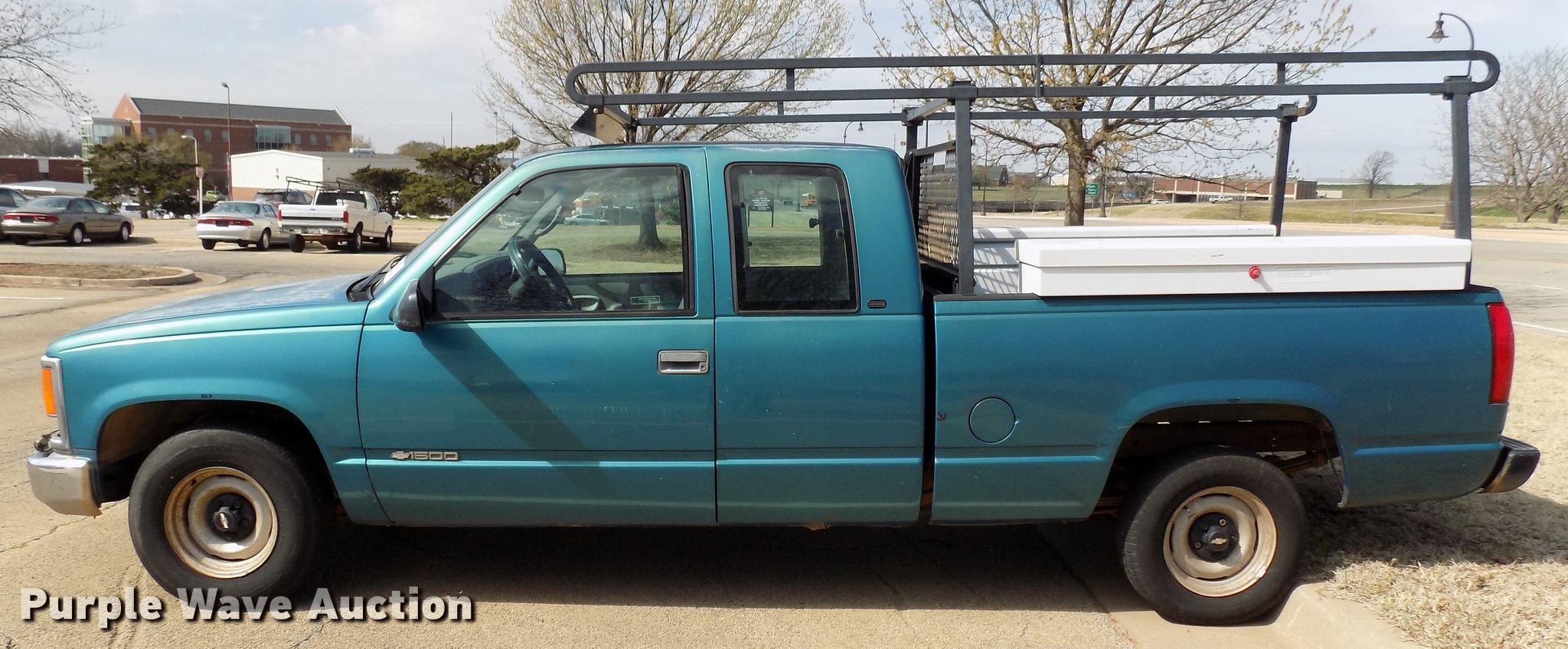 Purple Wave is selling a used 1/2 Ton Pickup or Van in Oklahoma. This item is a 1998 Chevrolet C1500 Ext. Cab pickup truck with the following: 165,620 miles on odometer, 5.0L V8 VIH 16V gas engine, Automatic transmission, AC and heat, Tilt, AM/FM, Manual windows and locks, Vinyl interior, (2) toolboxes, 133"L x 53"W utility rack, 215/70R15 tires, Sale# 1924-KP, Unit# 899