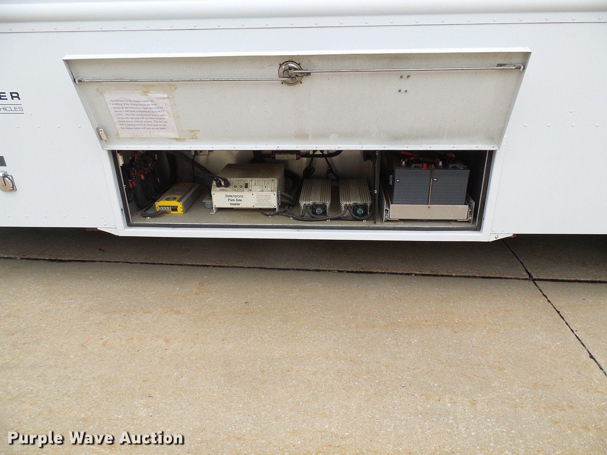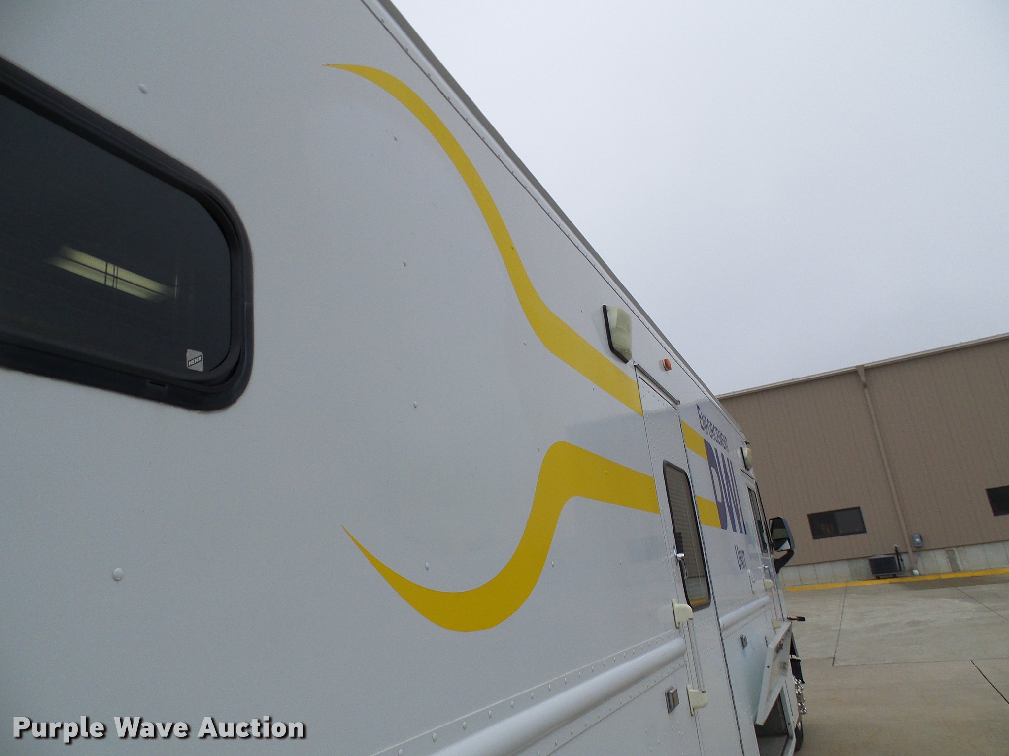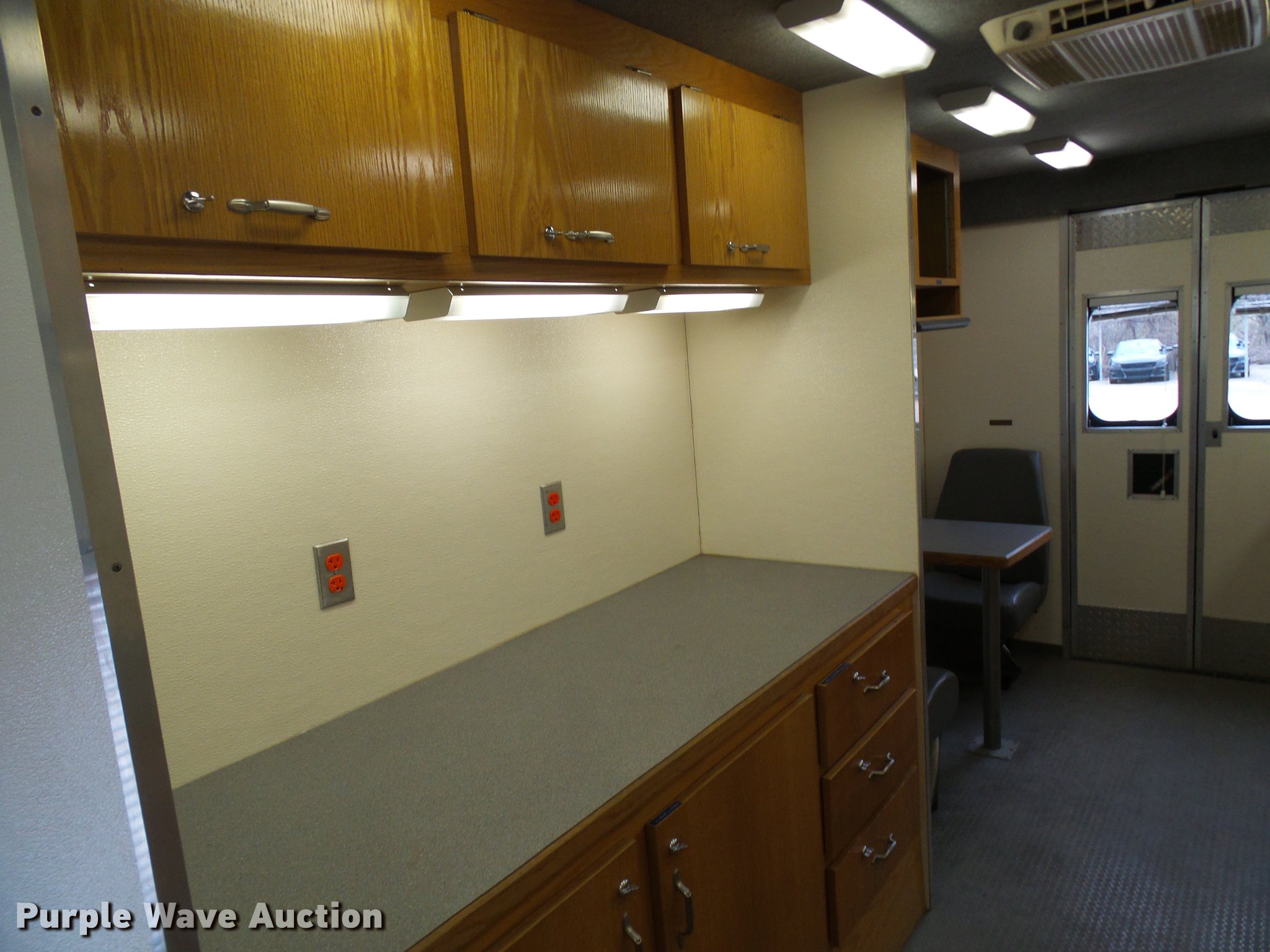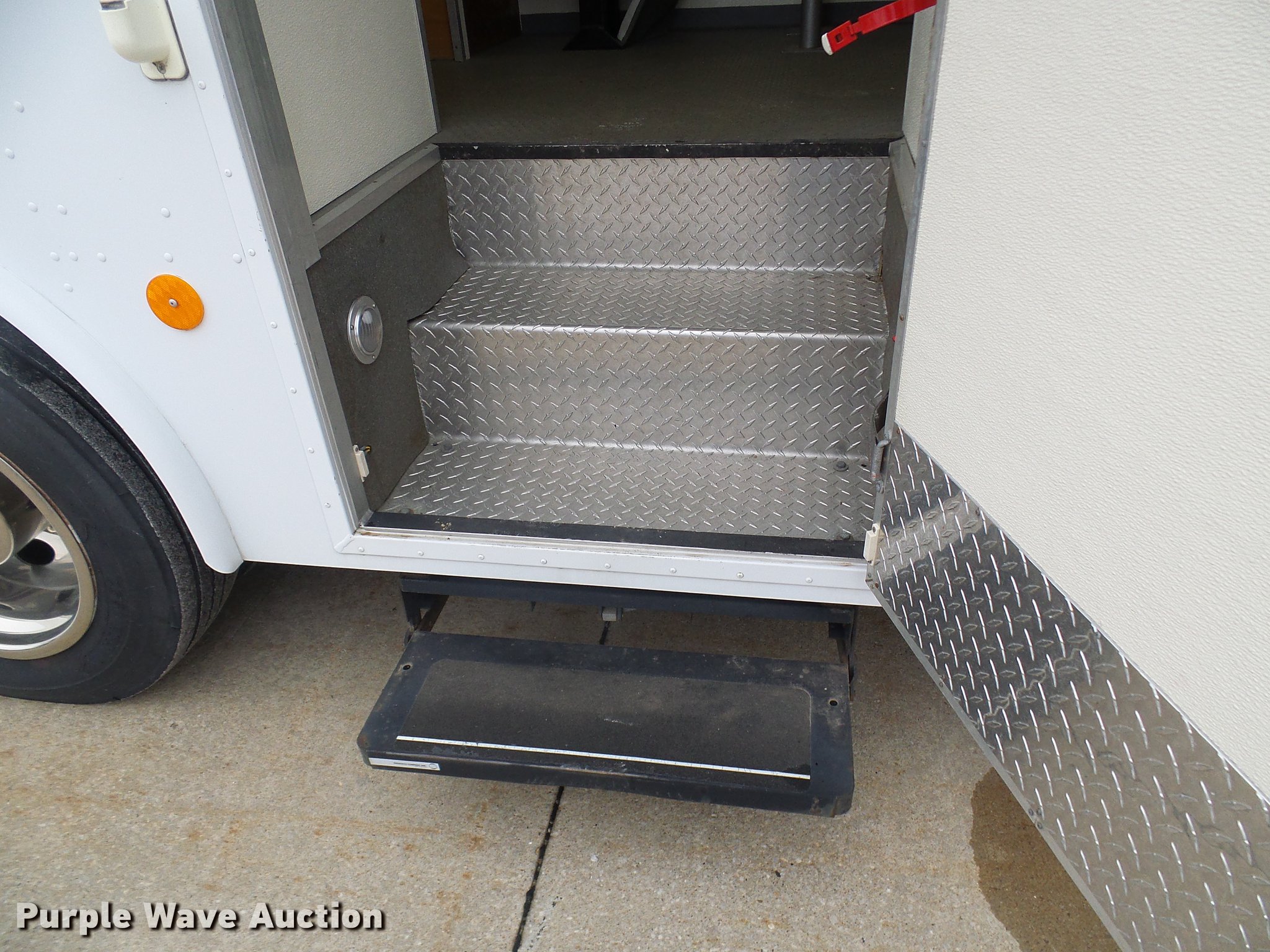 Purple Wave is selling a used Service Truck in Missouri. This item is a 2003 Freightliner MT55 DWI/DUI enforcement/command center truck with the following: 43,913 miles on odometer, Cummins ISB 5.9L L6 turbo diesel engine, Allison automatic transmission, Single axle, AC and heat, Cruise, AM/FM/CD, Power mirrors, Suspension seat, 32'L x 8'W body, Swinging side door, Swinging rear doors, Storage boxes, Custom shelving, Generator, 2,062 hours on meter, Onan CMQD three cylinder diesel engine, 12,000 watts, Pure-Sine inverter system, (3) roof AC units, Holding tank with running water, Refrigerator, Rear camera, Shore Power exterior power outlets, Single fuel tank, Receiver hitch, Spring suspension, Hydraulic brakes, 255/70R22.5 tires, GVWR 25,500 lbs