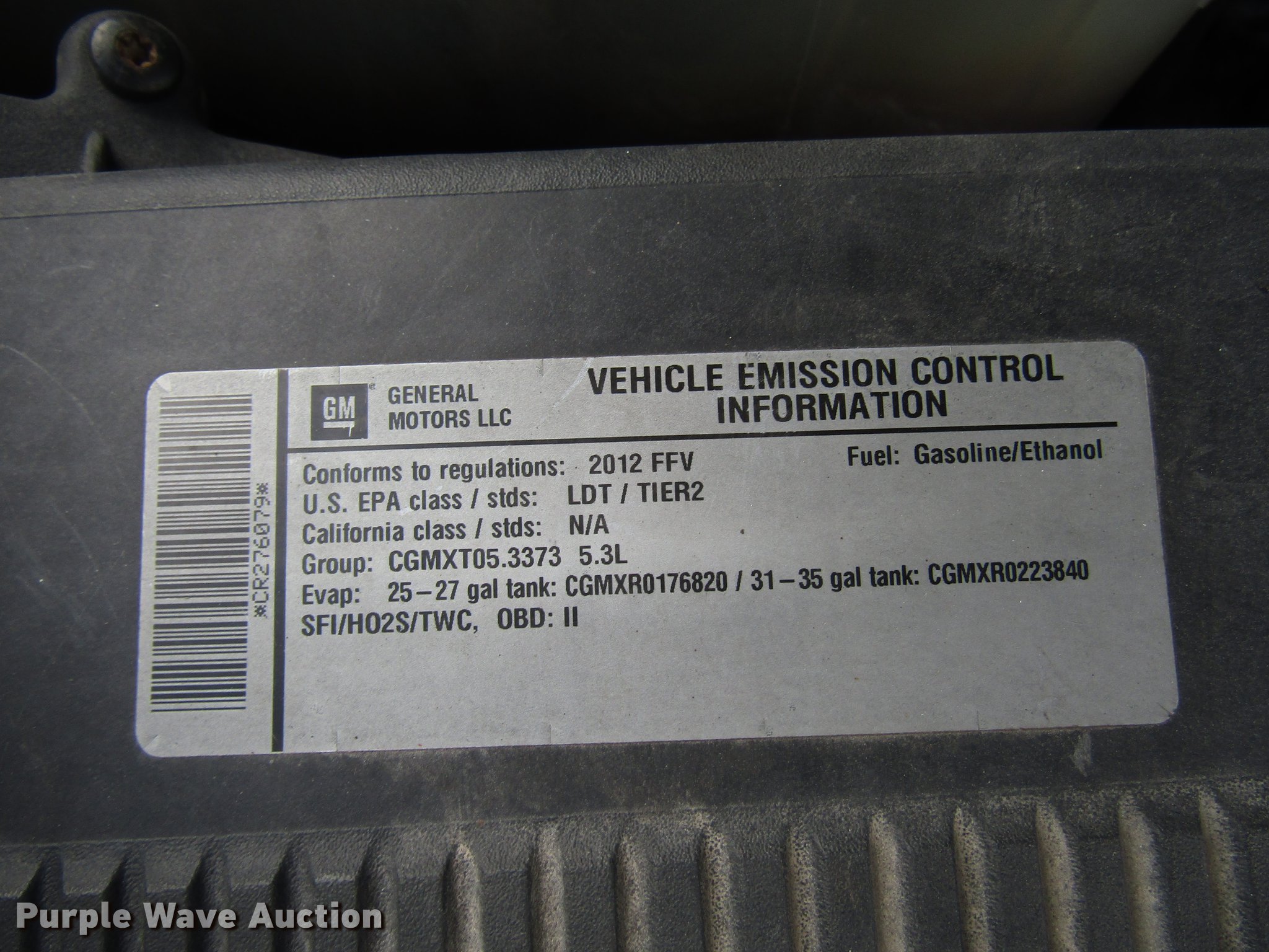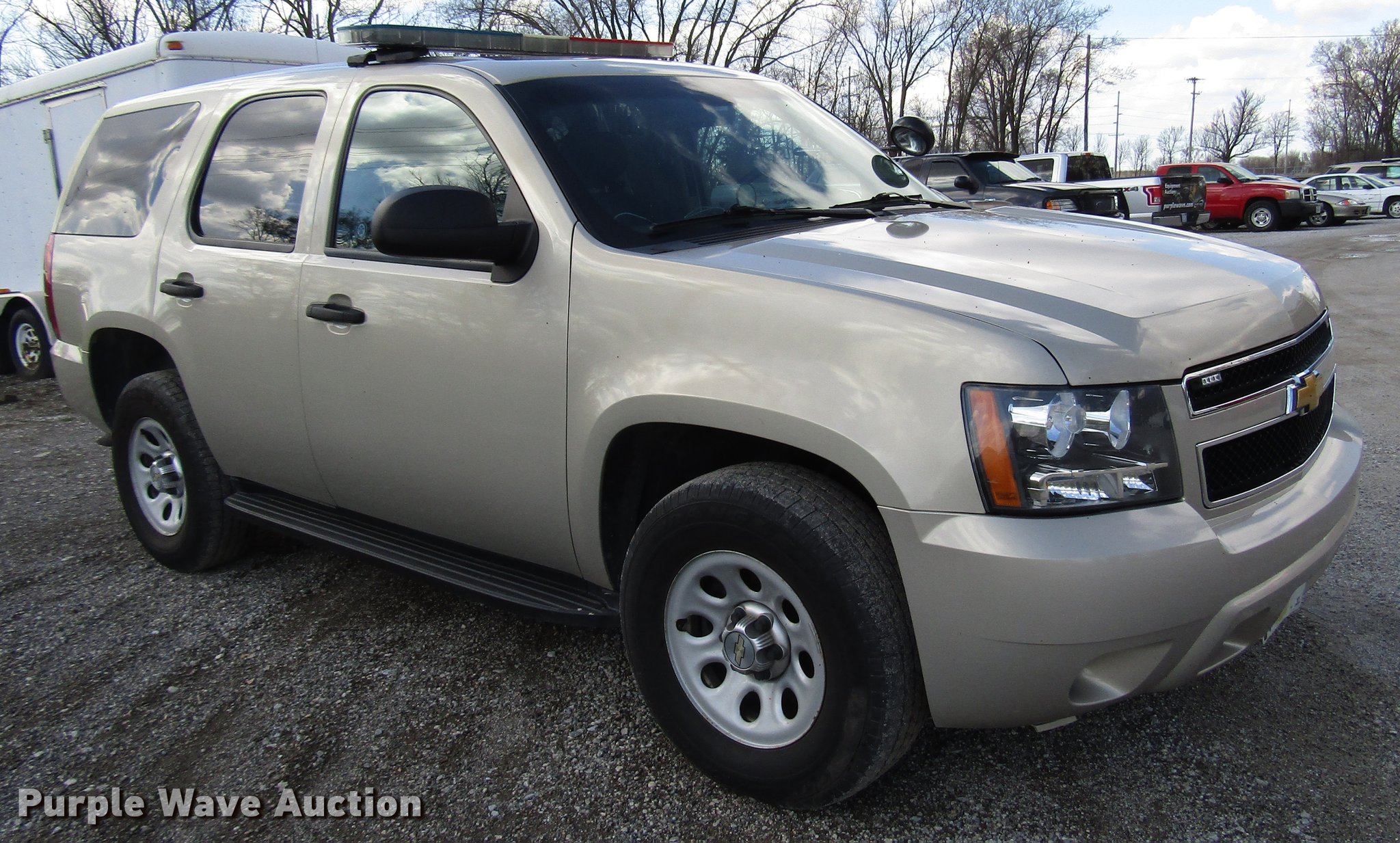 Purple Wave is selling a used Passenger Vehicle in Illinois. This item is a 2012 Chevrolet Tahoe Police SUV with the following: 118,809 miles on odometer, 5.3L V8 OHV 16V FFV gas engine, Automatic transmission, Four wheel drive, AC and heat, Cruise, Power locks, and seats, 265/70R17 tires, Front end issues, Police equipment not included