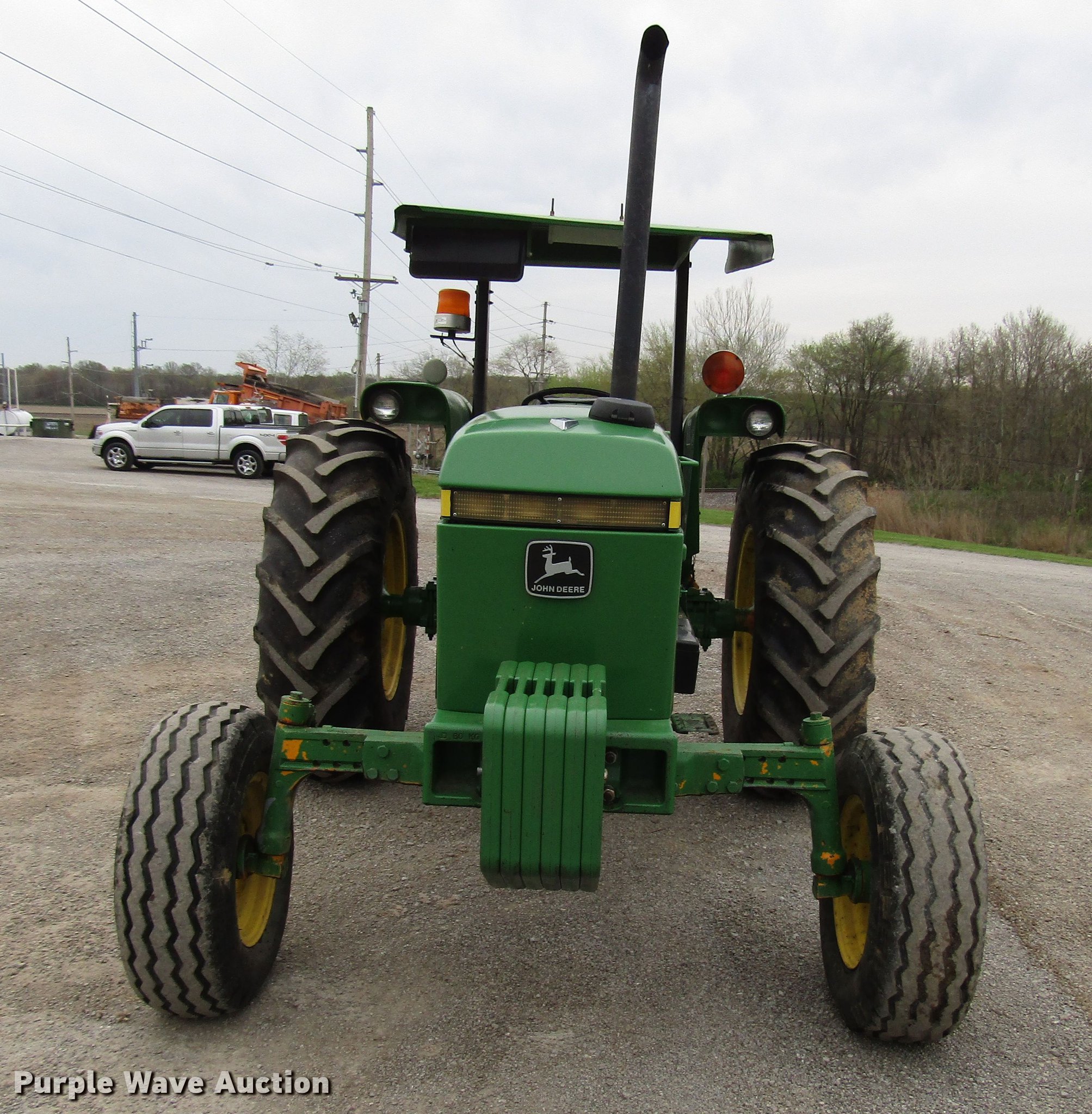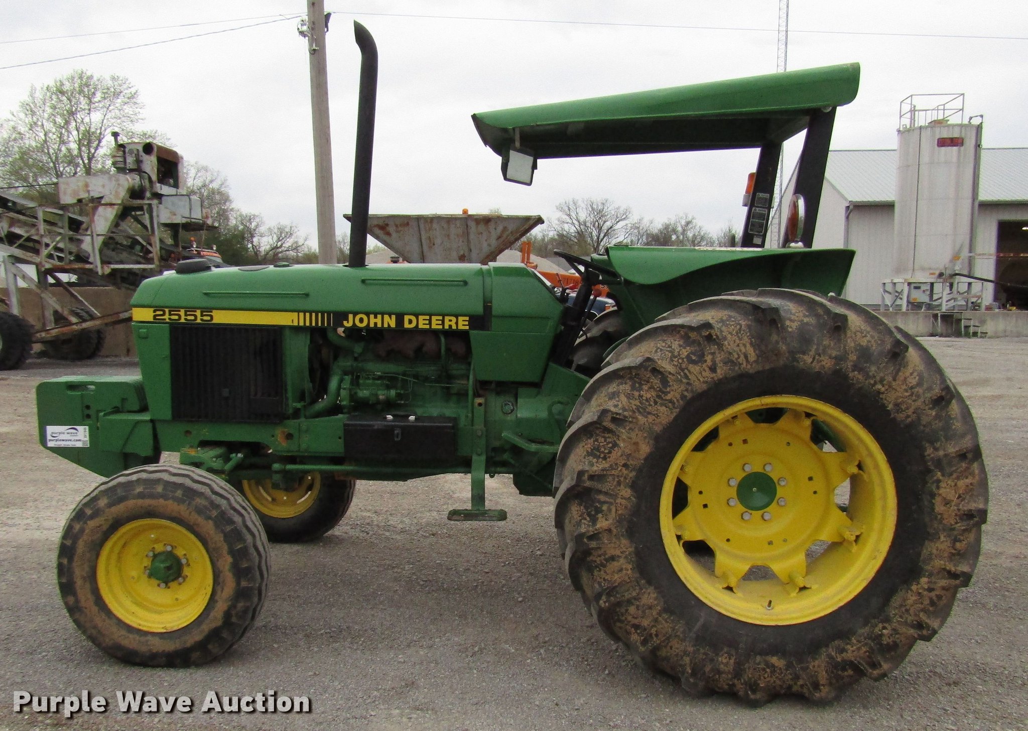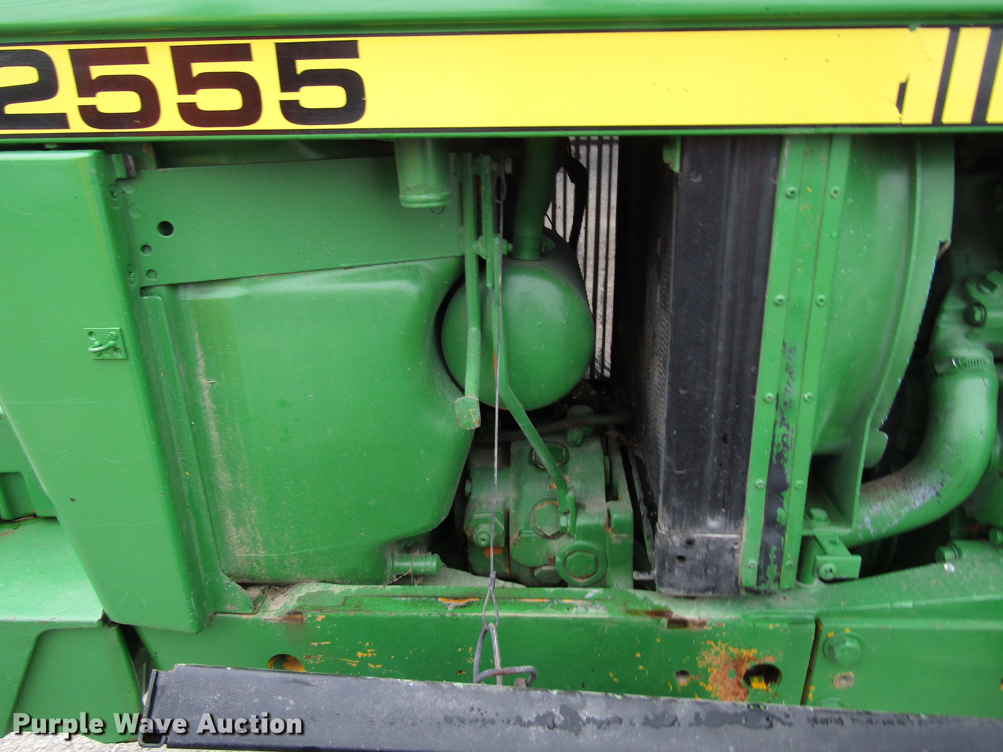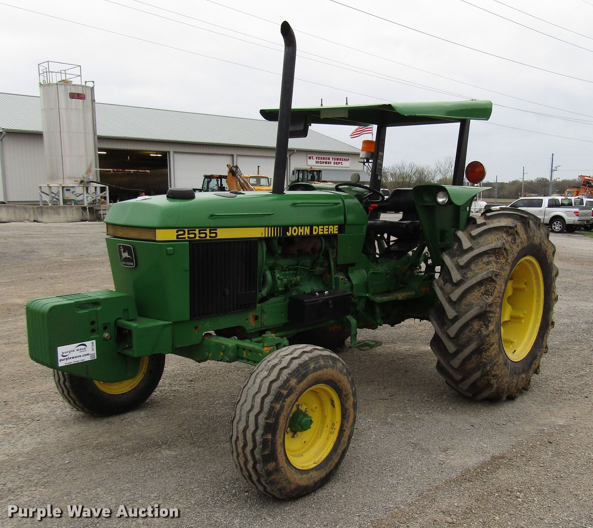 Purple Wave is selling a used Tractor in Illinois. This item is a John Deere 2555 tractor with the following: 3,707 hours on meter, John Deere 4239TL006 four cylinder diesel engine, Serial CD4239T820271, Manual transmission, 8F-4R gears, Creeper gear, Three point, 540 PTO, (2) rear hydraulic remote sets, (6) suitcase weights, 86" wheelbase, 11L-16SL front tires, 18.4-30 rear tires