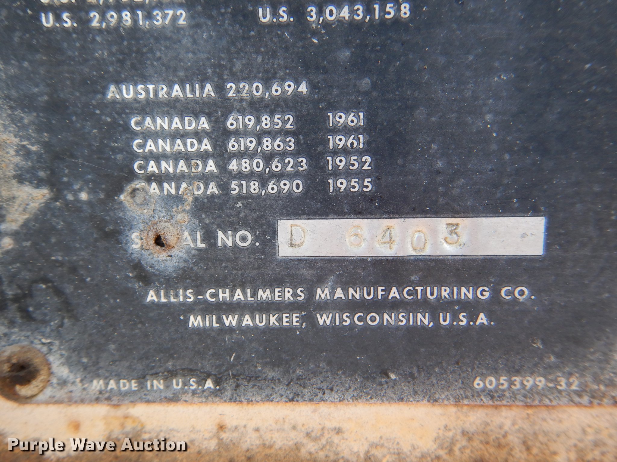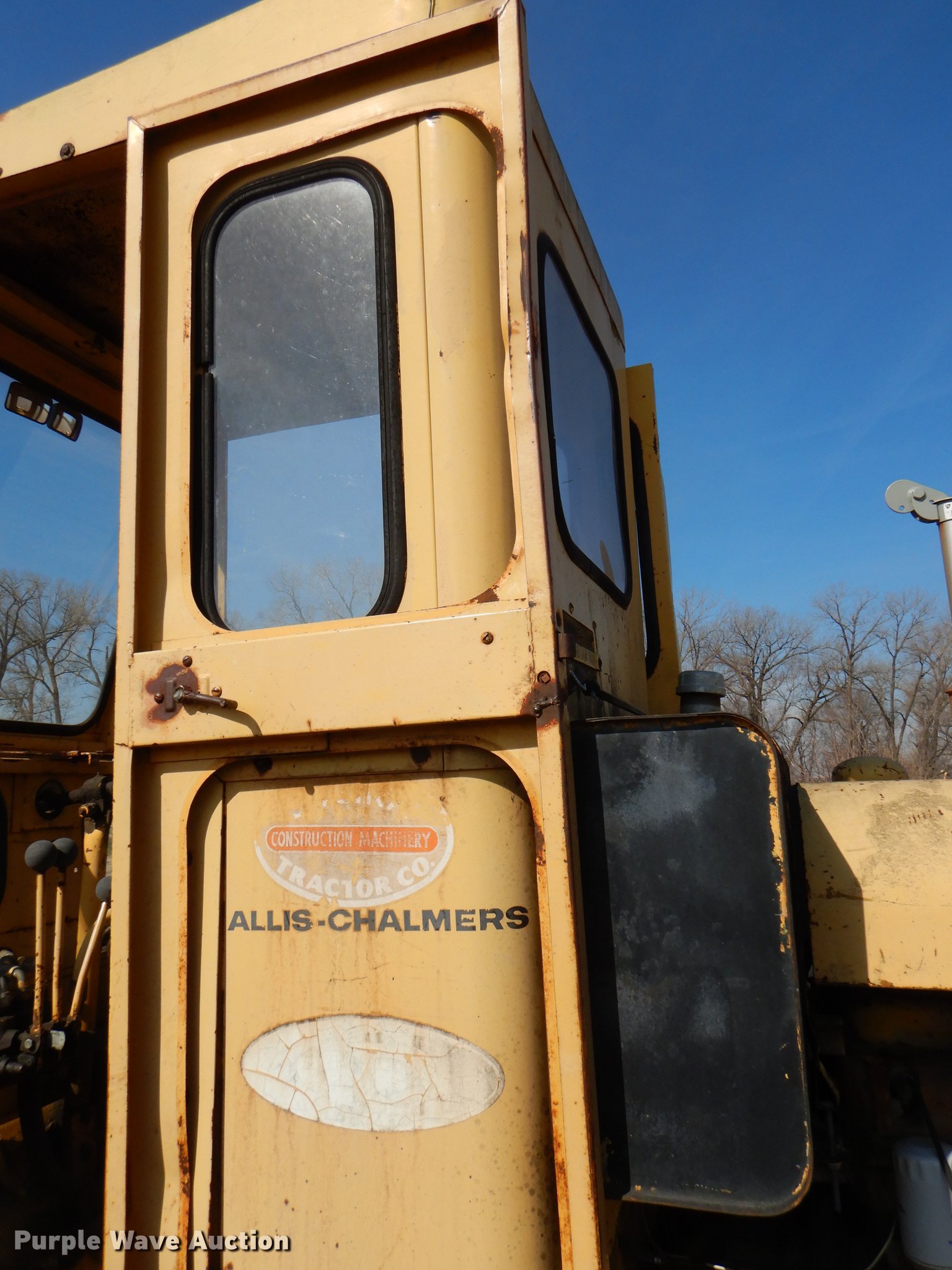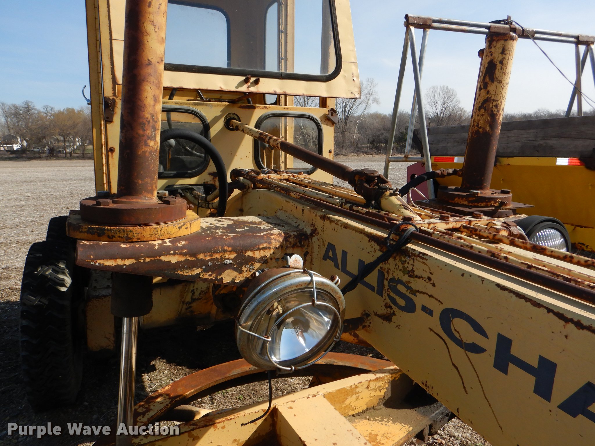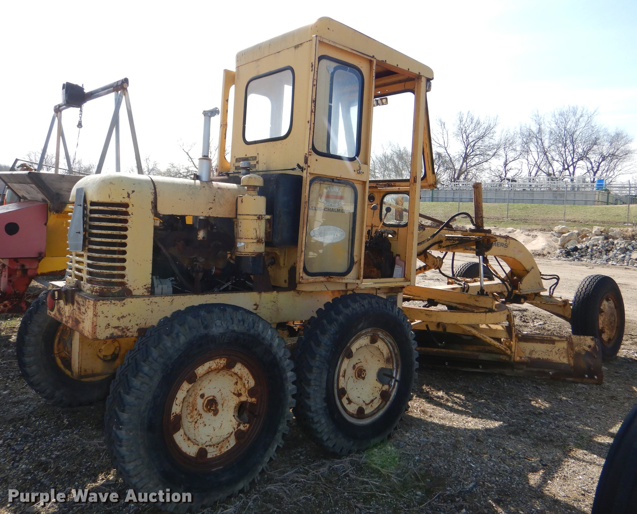 Purple Wave is selling a used Motor Grader in Kansas. This item is a Allis Chalmers rigid frame motor grader with the following: Four cylinder gas engine, 4F-1R gears, Front work lights, 12'W moldboard, Tip control, Side shift, Wheel titl, Power King 8.25-20 tires, Door glass missing, Serial D6403