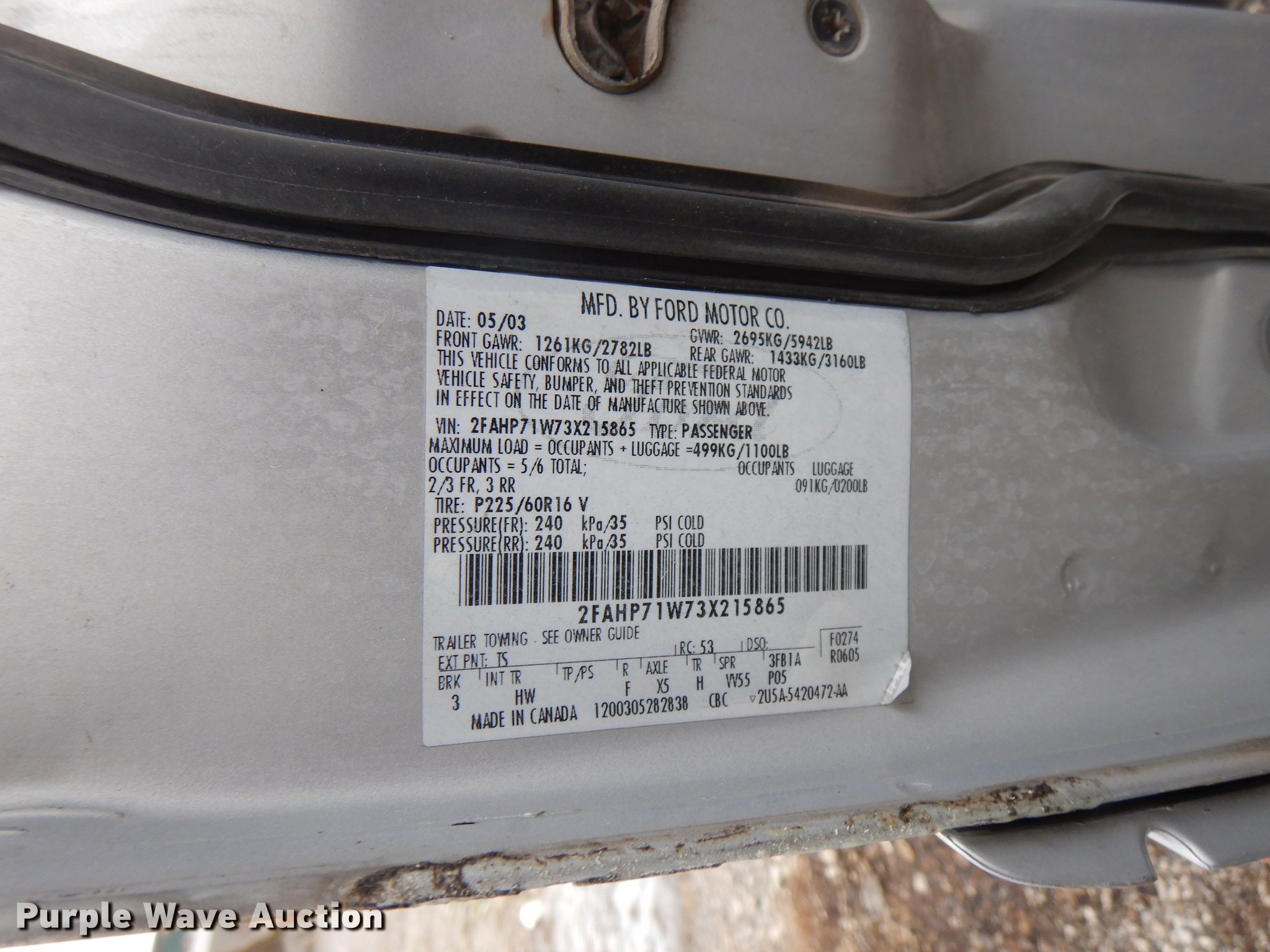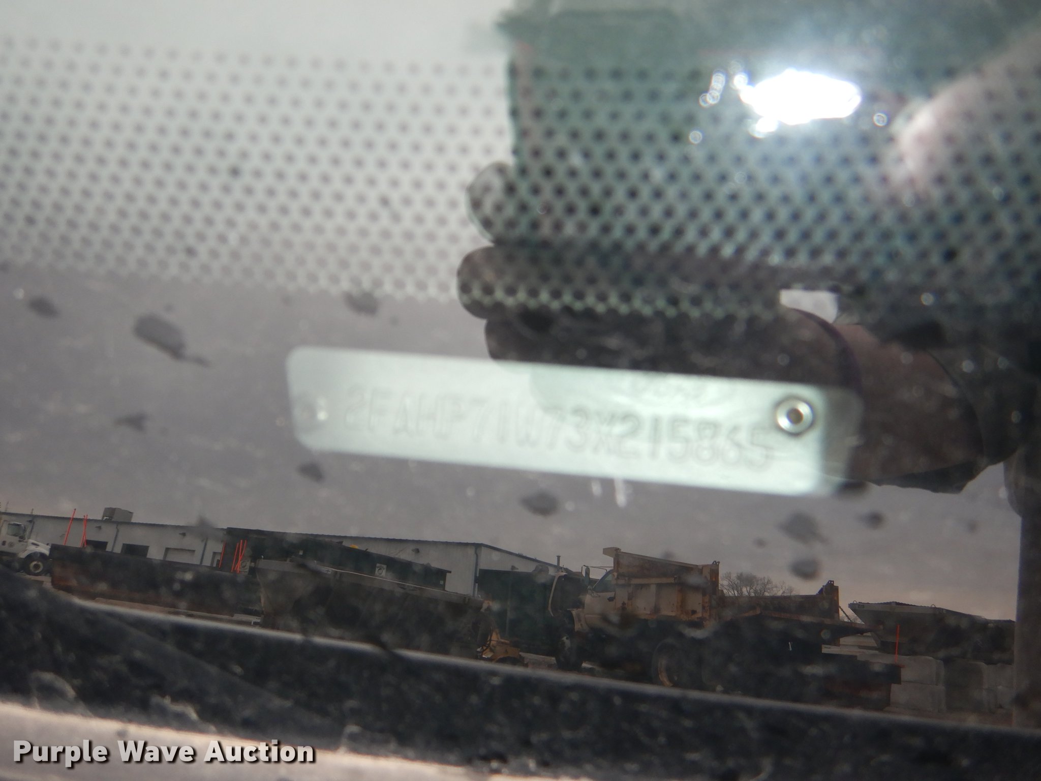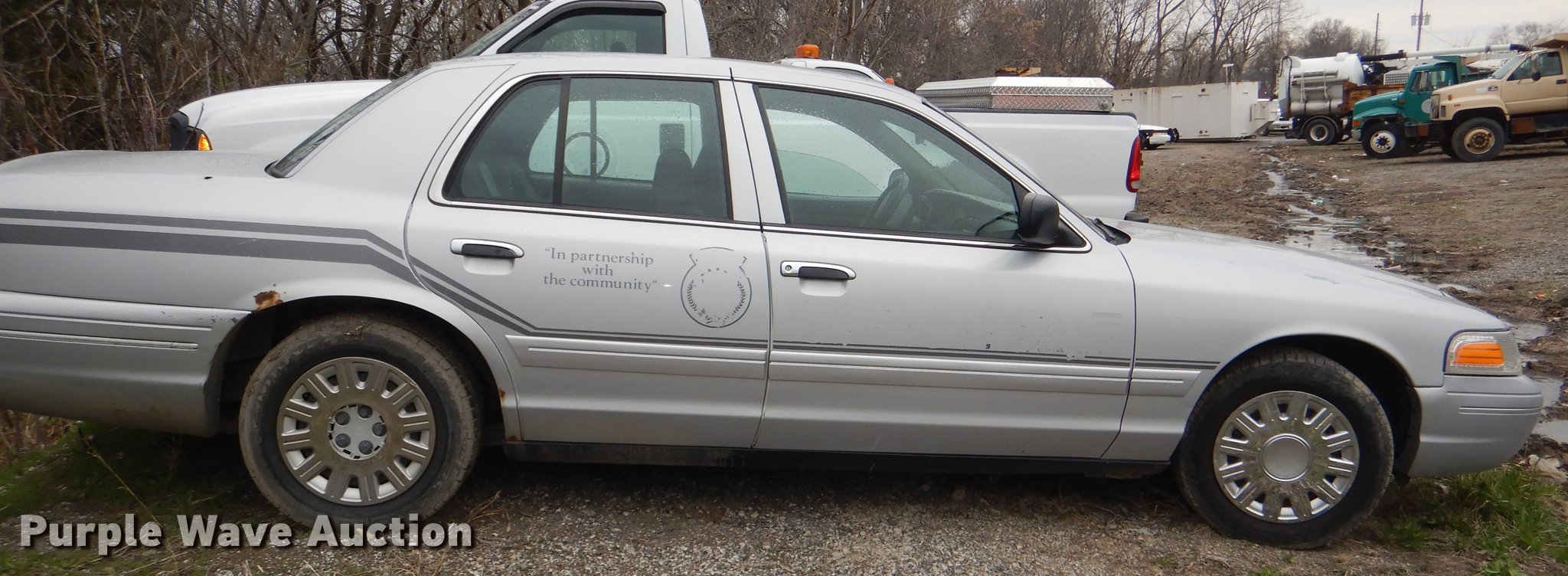 Purple Wave is selling a used Passenger Vehicle in Kansas. This item is a 2003 Ford Crown Victoria Police Interceptor with the following: 172,952 miles on odometer, 4.6L V8 SOHC 16V gas engine, Automatic transmission, AC and heat, Cruise, Power windows, locks, and seat, Heated mirrors, 225/60R16 tires, Dead battery, Headlights missing, Alarm will not shut-off
