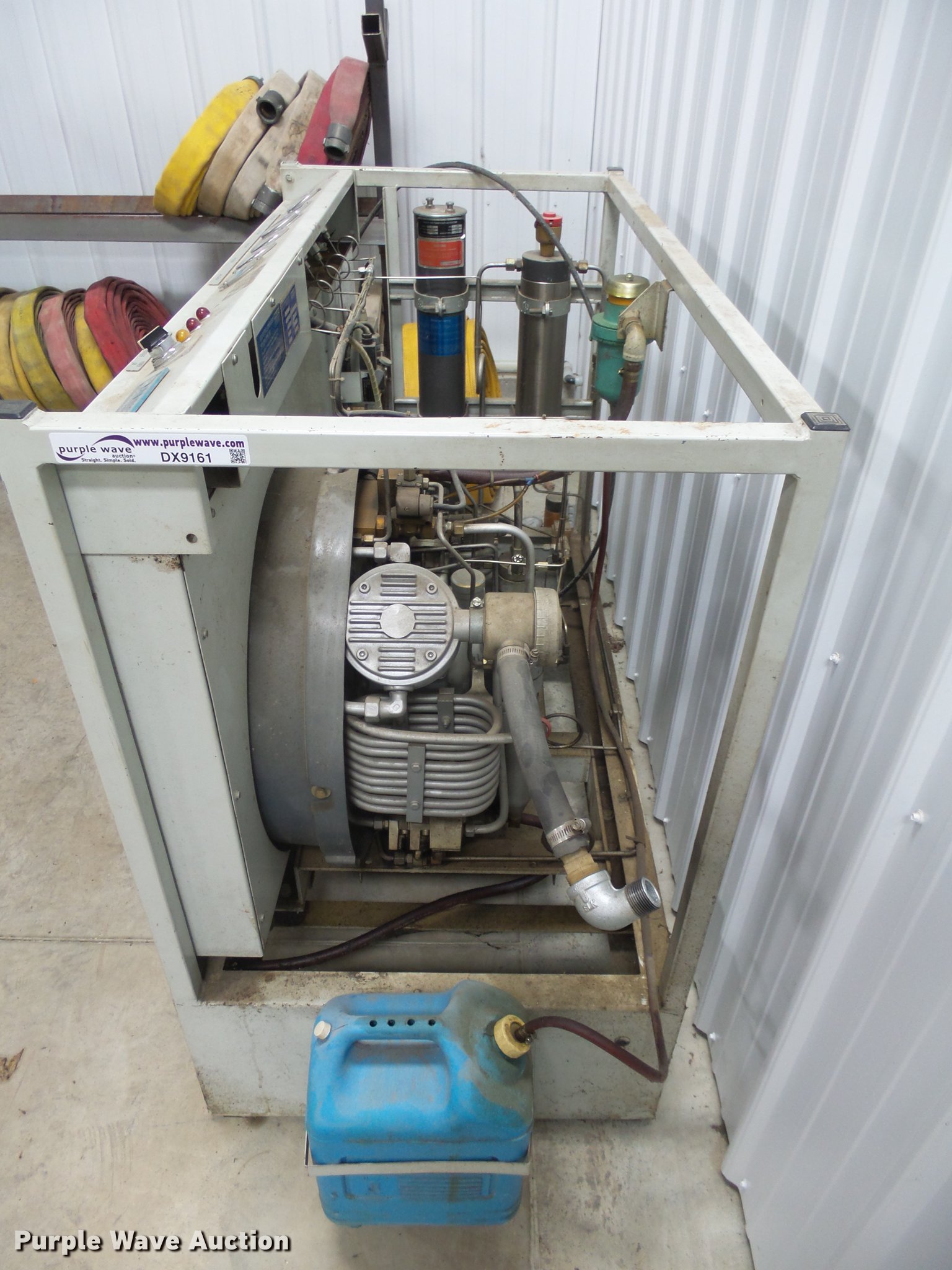 1987 Bauer N14-E3 compressor. 317 hours on meter, 51"L x 26"W x 43"H, 7.5 HP, 1,200 RPM, Air purification system, Three phase, Compressor no. 86-4290-07, Serial 9823. Elk Point Fire. 304 W Main St. Elk Point, SD 57025