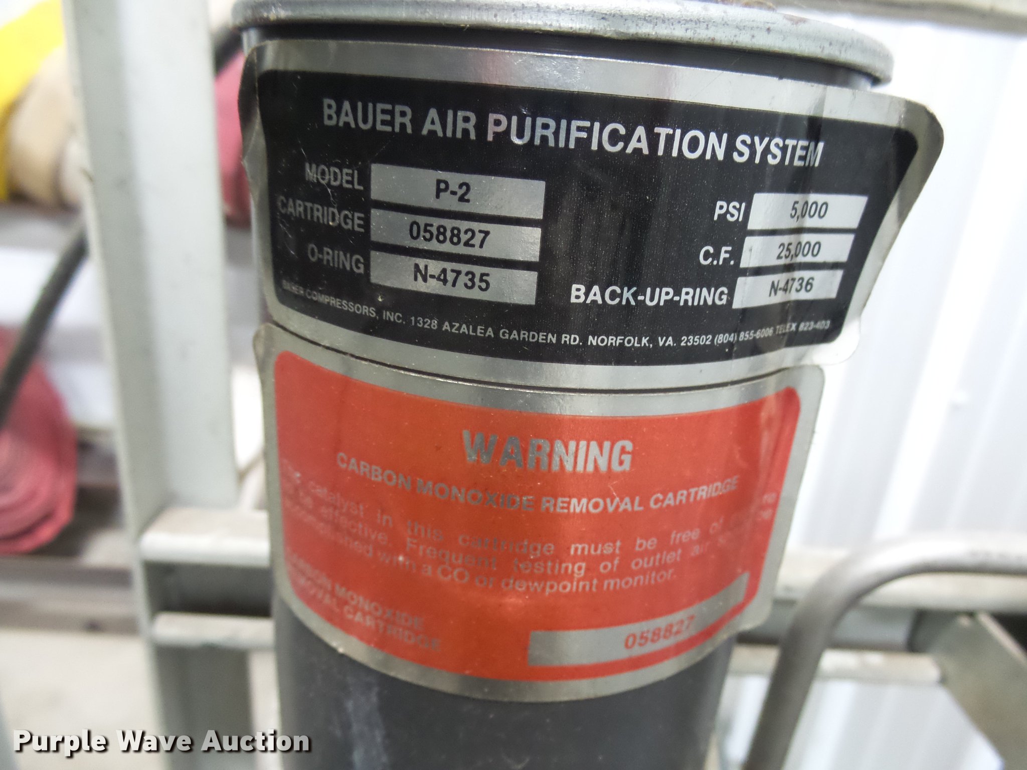 Purple Wave is selling a used Air Compressor in South Dakota. This item is a 1987 Bauer N14-E3 compressor with the following: 317 hours on meter, 51"L x 26"W x 43"H, 7.5 HP, 1,200 RPM, Air purification system, Three phase, Compressor no. 86-4290-07, Serial 9823