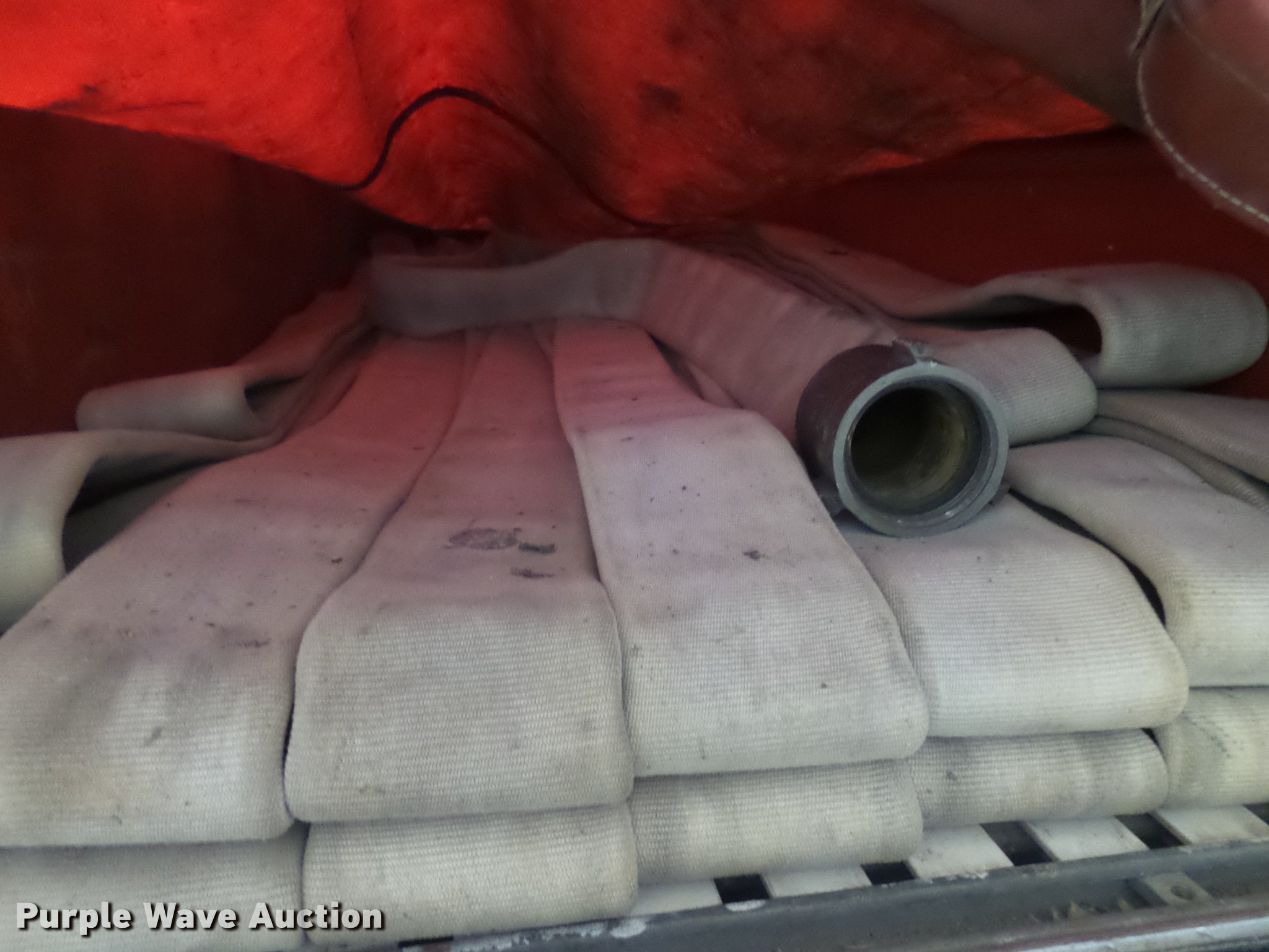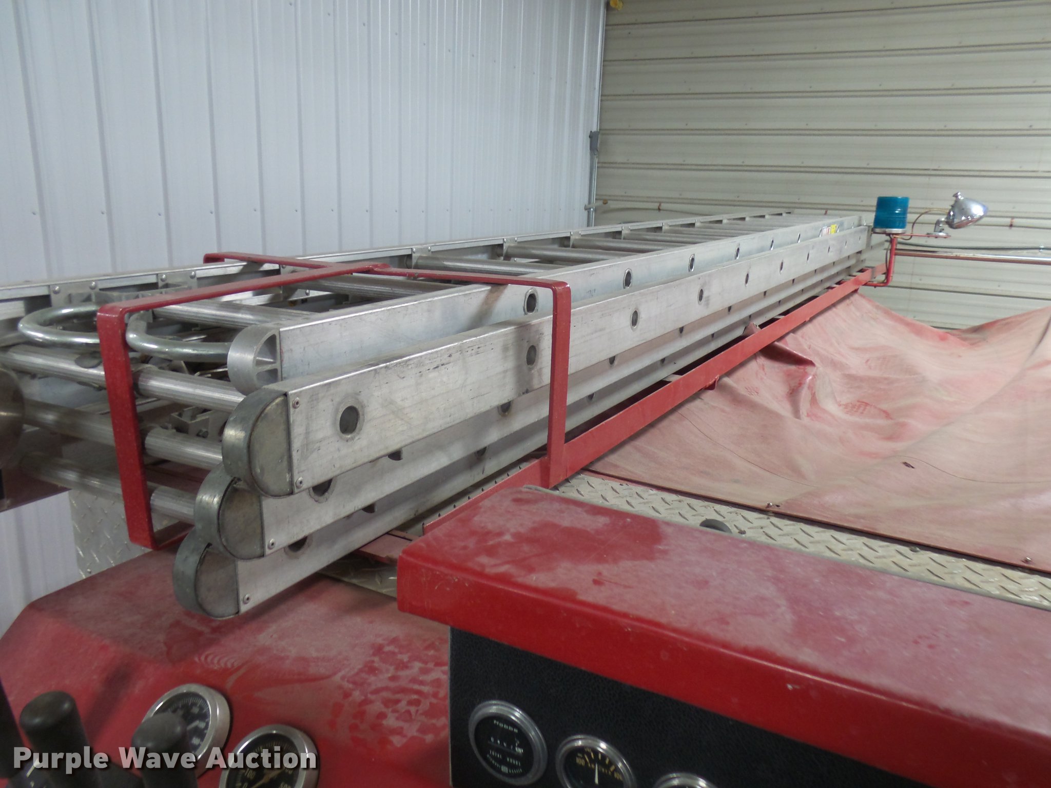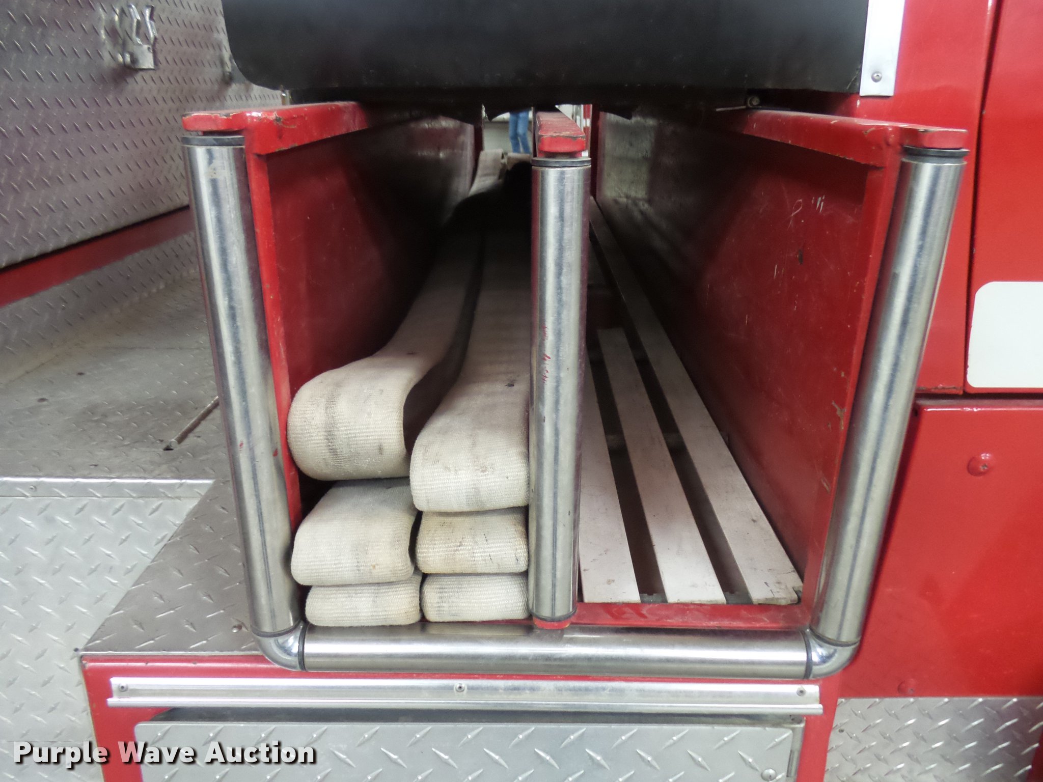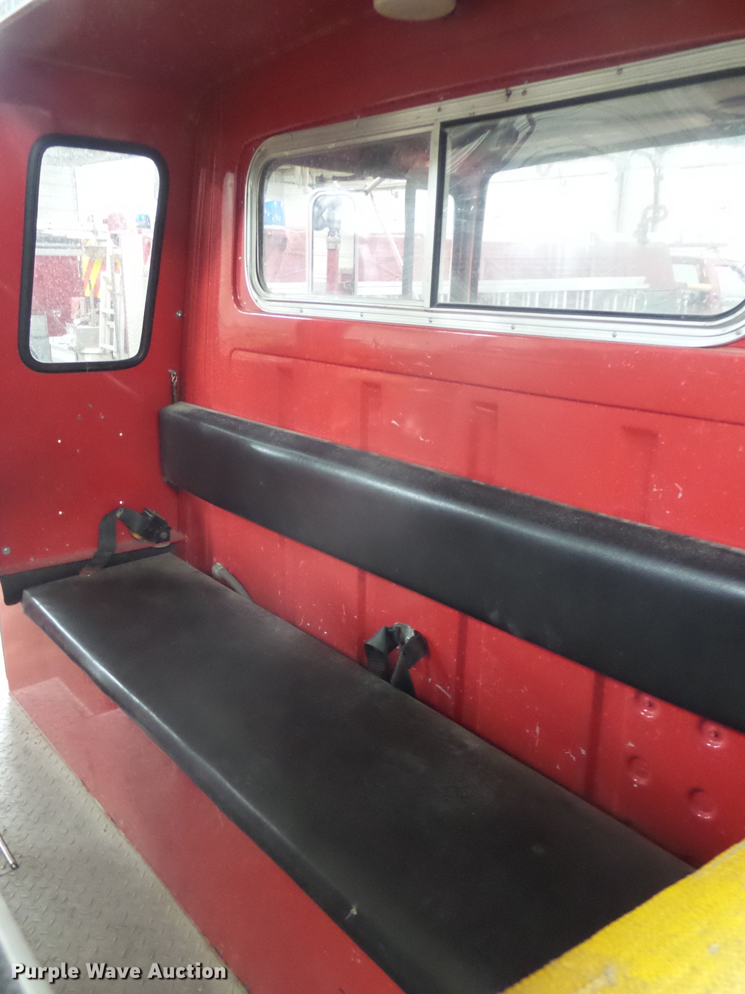 Purple Wave is selling a used Fire Truck or Emergency Vehicle in South Dakota. This item is a 1983 Ford F800 fire truck with the following: 21,267 miles on odometer, 7.0L V8 gas engine, Five speed manual transmission, Two speed rear end, Single axle, Heat, Suspension seat, Air horn, Brake controller, Block heater, Smeal V802XL platform, 467 hours on meter, Serial 388090, Elevated control station, Water gun, Electric cord reel, Outlet box, Work lights, Hose, Ladder, 450' of 2.5" hose, 150' of LDH hose, Roof ladder, Extension ladder, Air brakes, 10.00R22 tires
