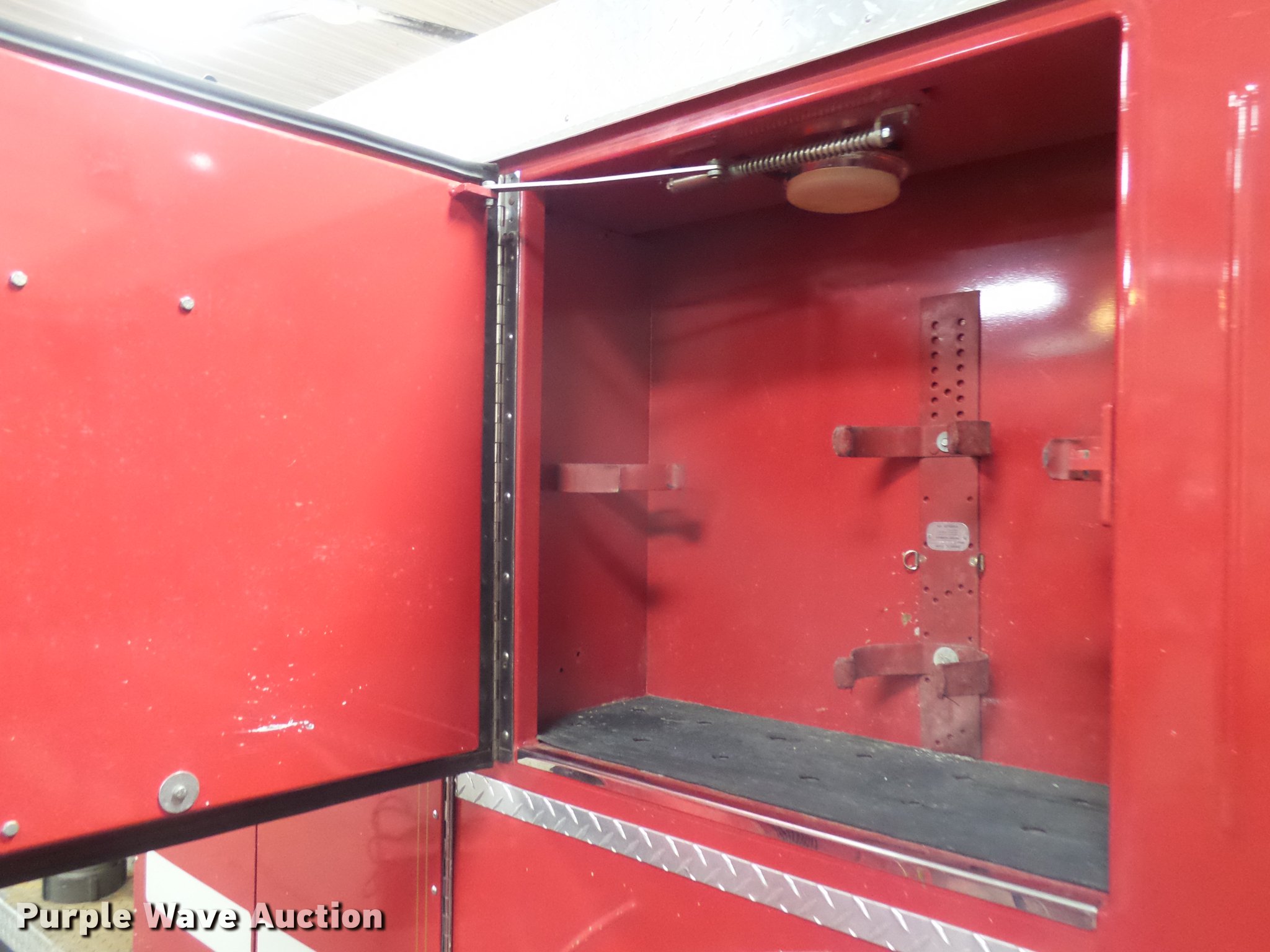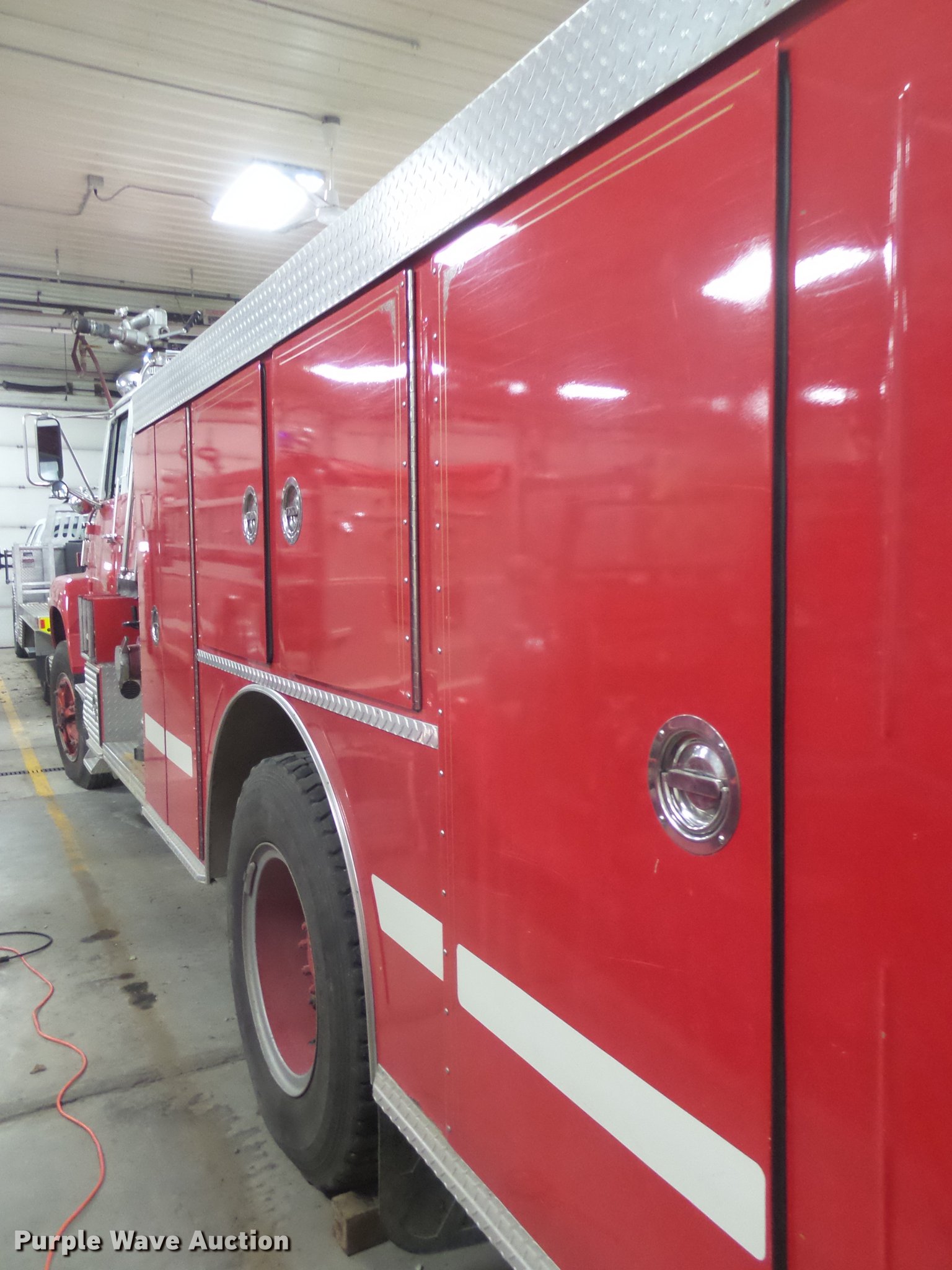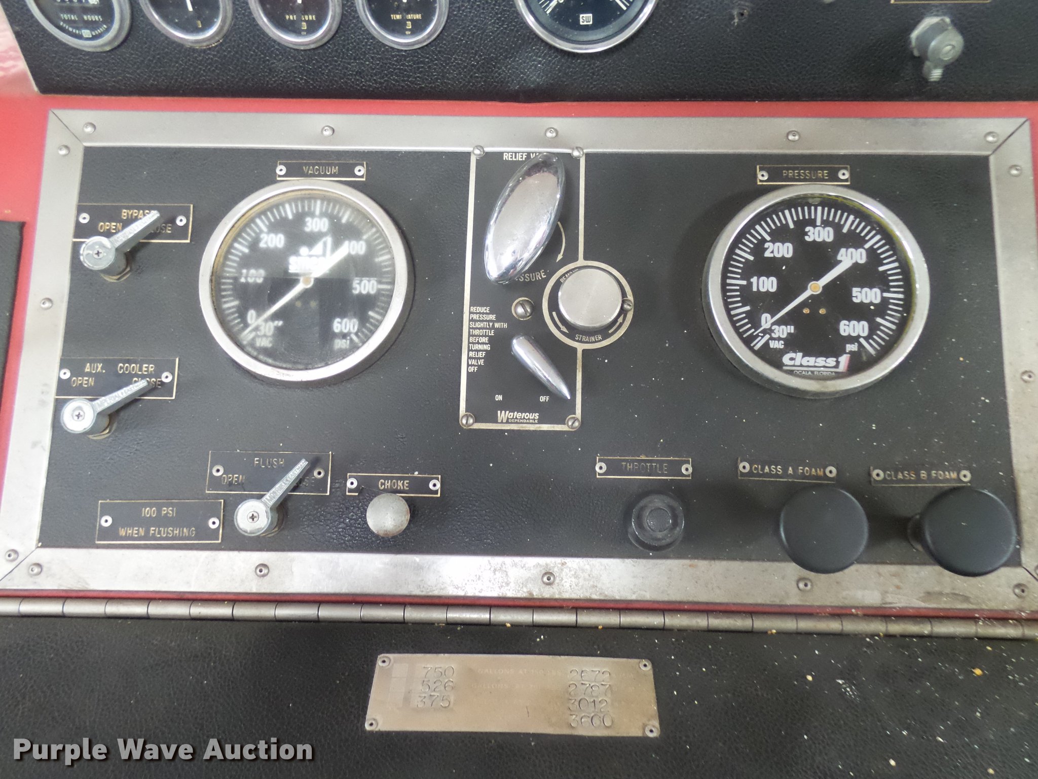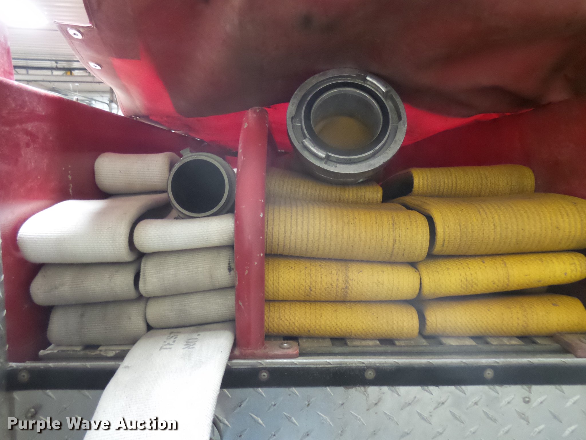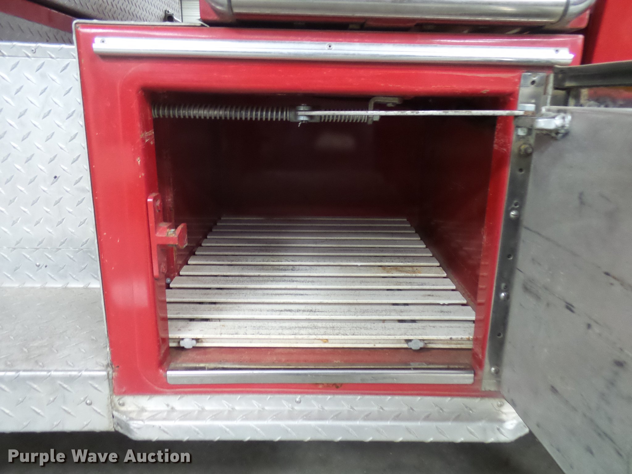 Purple Wave is selling a used Fire Truck or Emergency Vehicle in South Dakota. This item is a 1983 Ford F800 fire truck with the following: 21,267 miles on odometer, 7.0L V8 gas engine, Five speed manual transmission, Two speed rear end, Single axle, Heat, Suspension seat, Air horn, Brake controller, Block heater, Smeal V802XL platform, 467 hours on meter, Serial 388090, Elevated control station, Water gun, Electric cord reel, Outlet box, Work lights, Hose, Ladder, 450' of 2.5" hose, 150' of LDH hose, Roof ladder, Extension ladder, Air brakes, 10.00R22 tires