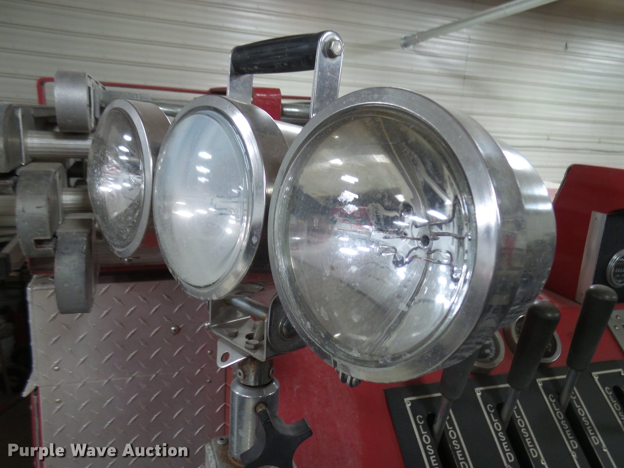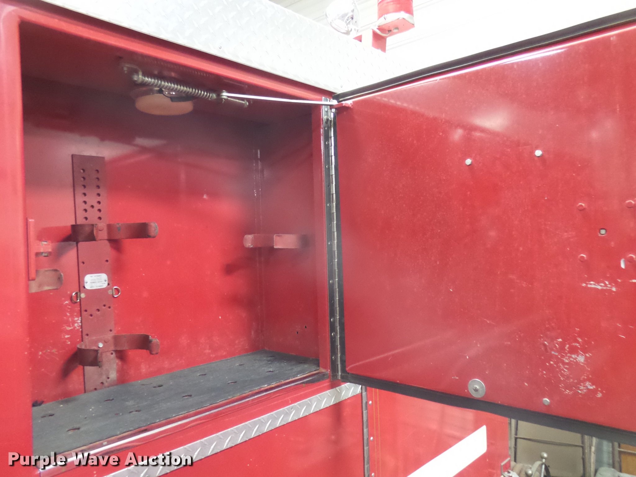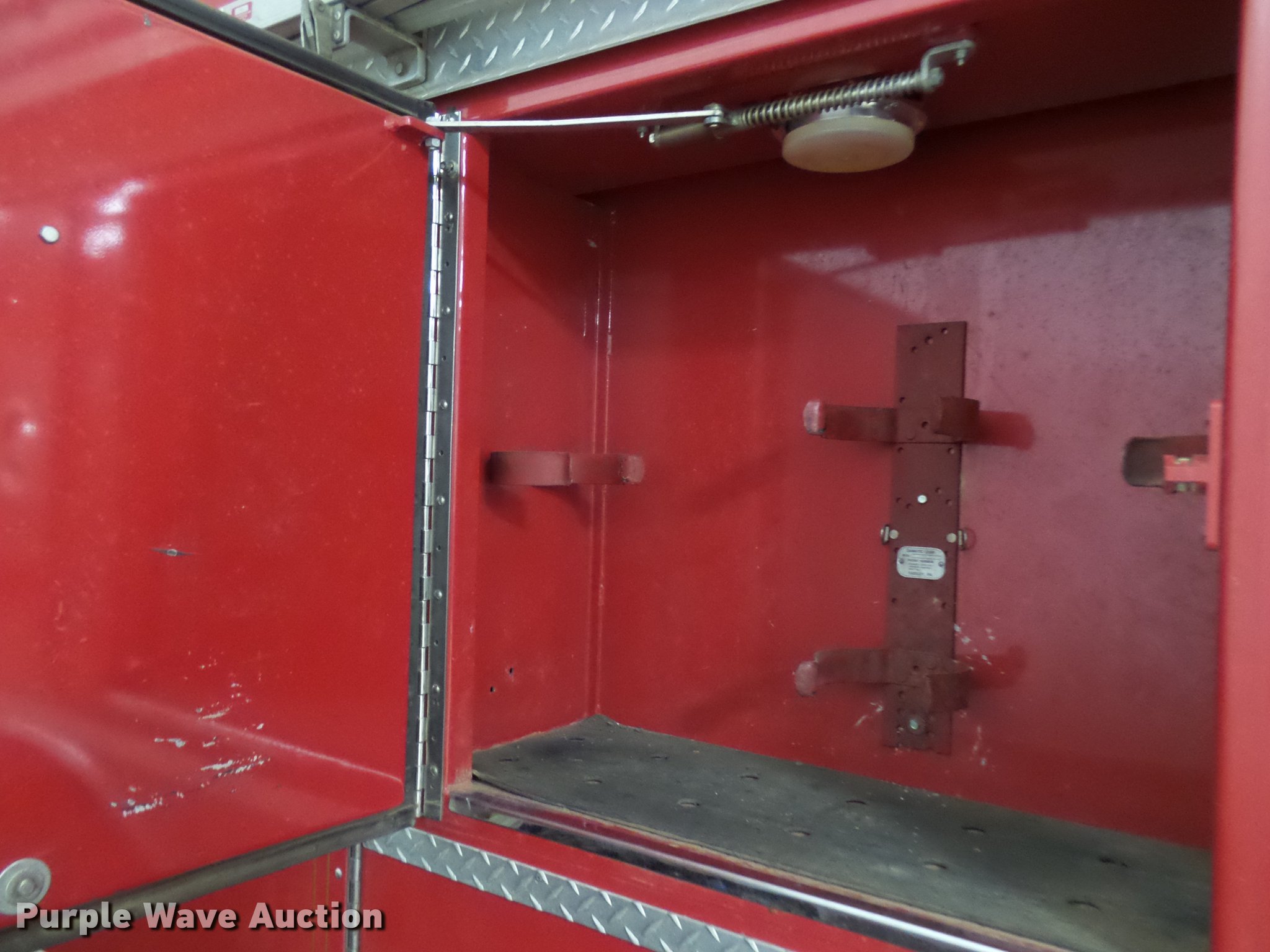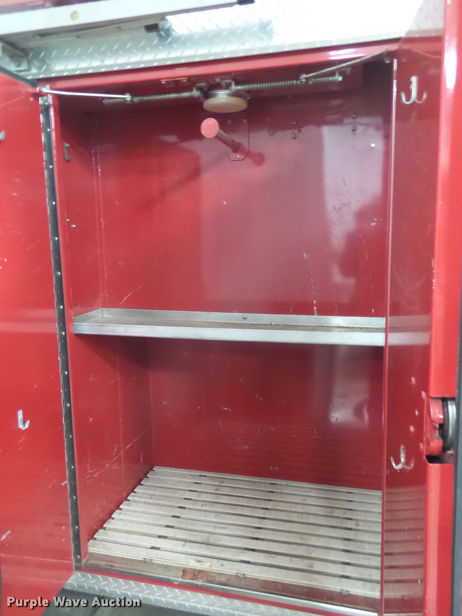 Purple Wave is selling a used Fire Truck or Emergency Vehicle in South Dakota. This item is a 1983 Ford F800 fire truck with the following: 21,267 miles on odometer, 7.0L V8 gas engine, Five speed manual transmission, Two speed rear end, Single axle, Heat, Suspension seat, Air horn, Brake controller, Block heater, Smeal V802XL platform, 467 hours on meter, Serial 388090, Elevated control station, Water gun, Electric cord reel, Outlet box, Work lights, Hose, Ladder, 450' of 2.5" hose, 150' of LDH hose, Roof ladder, Extension ladder, Air brakes, 10.00R22 tires