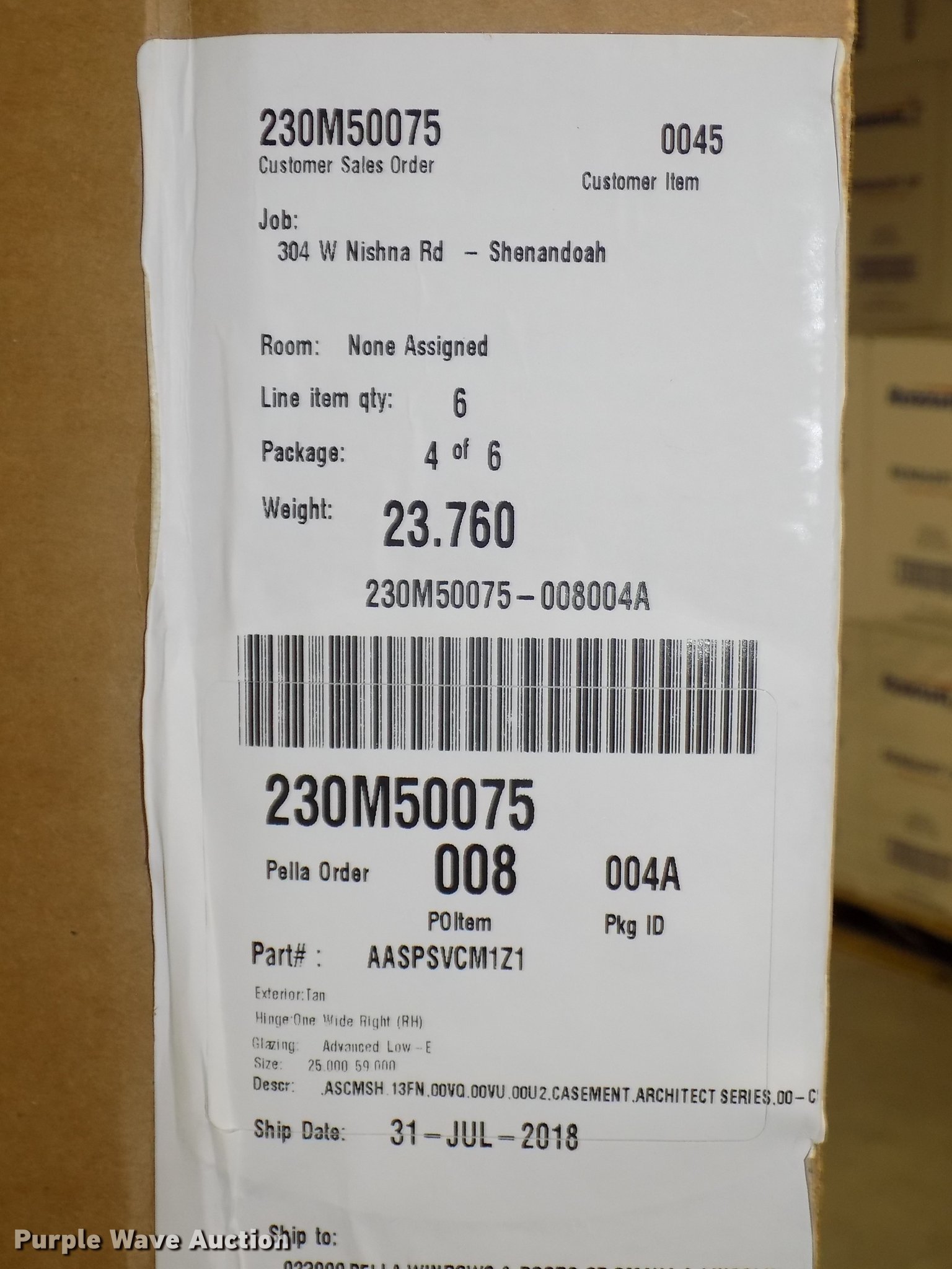 Purple Wave is selling a used Building Materials in Iowa. This item is a (19) Pella windows with the following: Approximately 22.5"W x 56.5"H, (3) boxes of seals, Hardware, Unused
