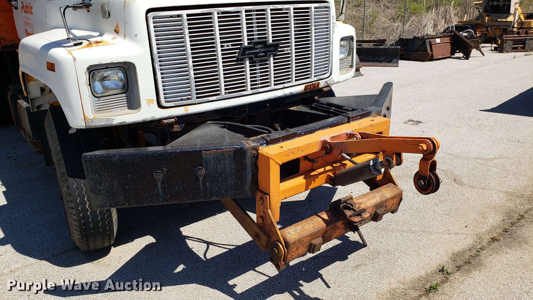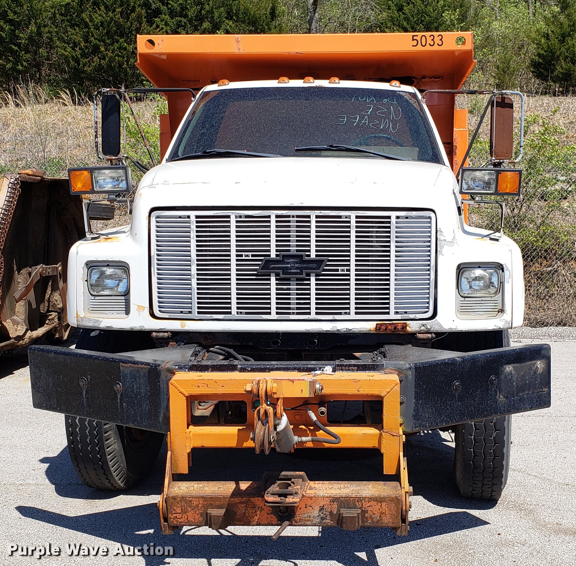 Purple Wave is selling a used Construction Dump Truck in Missouri. This item is a 1991 Chevrolet Kodiak C6500 dump truck with the following: 102,646 miles on odometer, Caterpillar 3116 6.6L six cylinder diesel engine, Automatic transmission, Heat, AM/FM, PTO, 11'L x 8'W dump bed, 30" side height, Plow bracket, Spring suspension, Air brakes, 10-20 tires, Dead batteries, Brakes need replaced, currently not road worthy, Unit# 8388