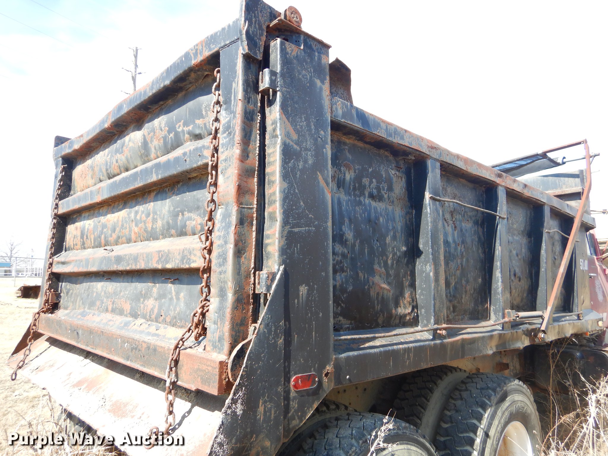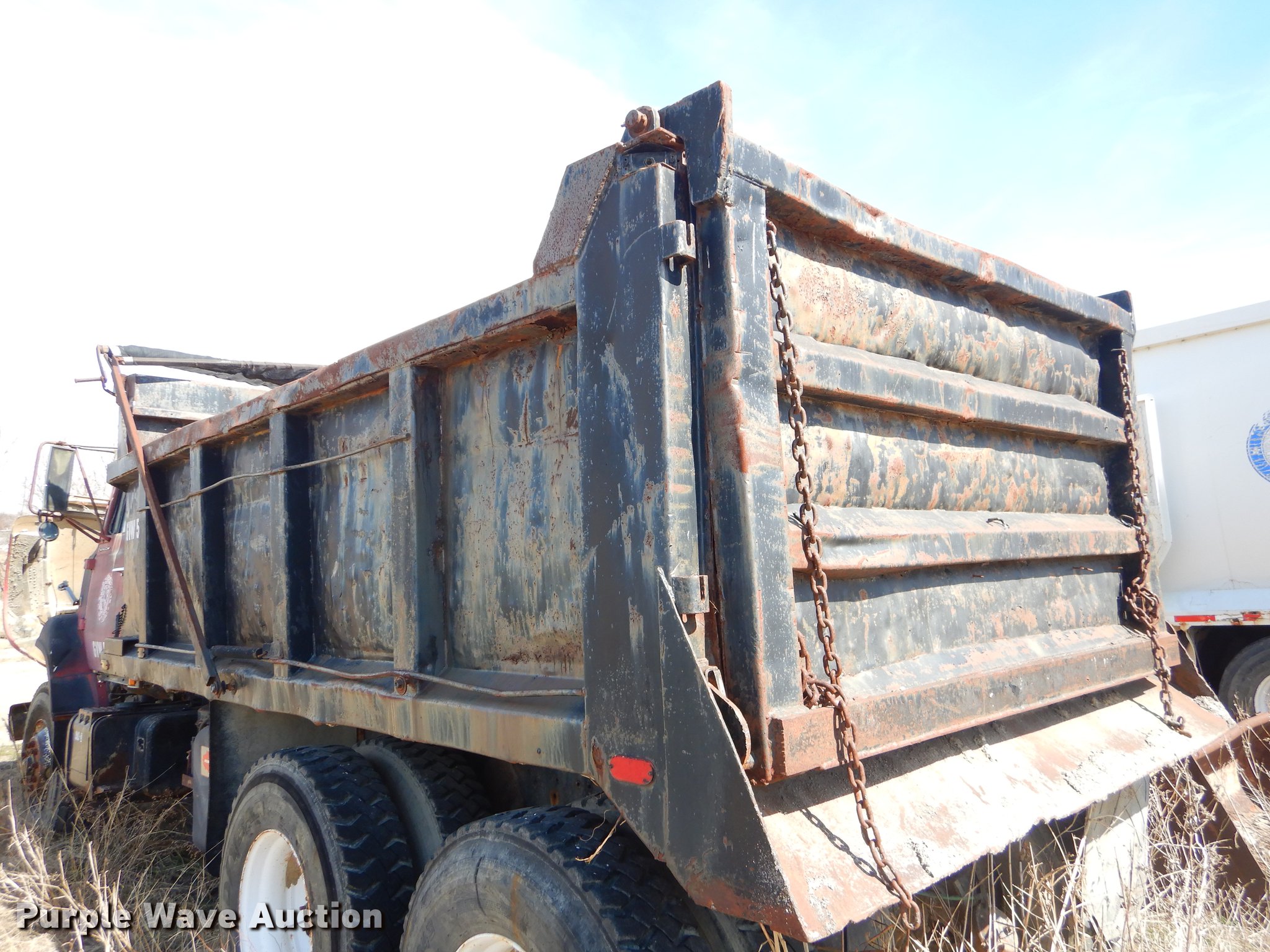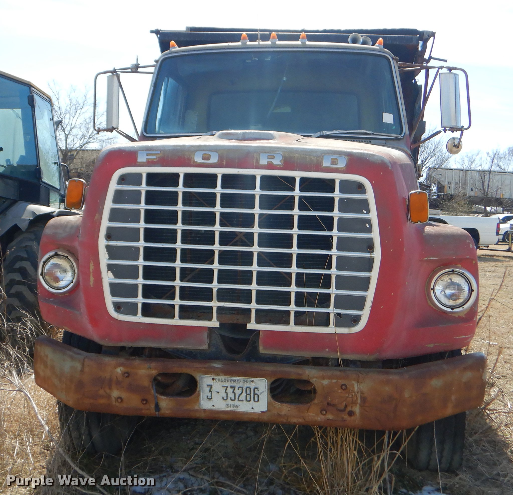 Purple Wave is selling a used Construction Dump Truck in Oklahoma. This item is a 1974 Ford Custom Cab dump truck with the following: 258,755 miles on odometer, Ford six cylinder diesel engine, Spicer 13 speed manual transmission, Tandem axle, Inter-axle differential lock, Heat, Air suspension seat, PTO, 14'L x 96"W steel dump bed, 40" side height, Roll tarp, Single ram hoist, Manual end gate, Dual fuel tanks, Spring suspension, Air brakes, 188" wheelbase, 12R22.5 tires, GVWR 51,000 lbs, Unknown operating condition