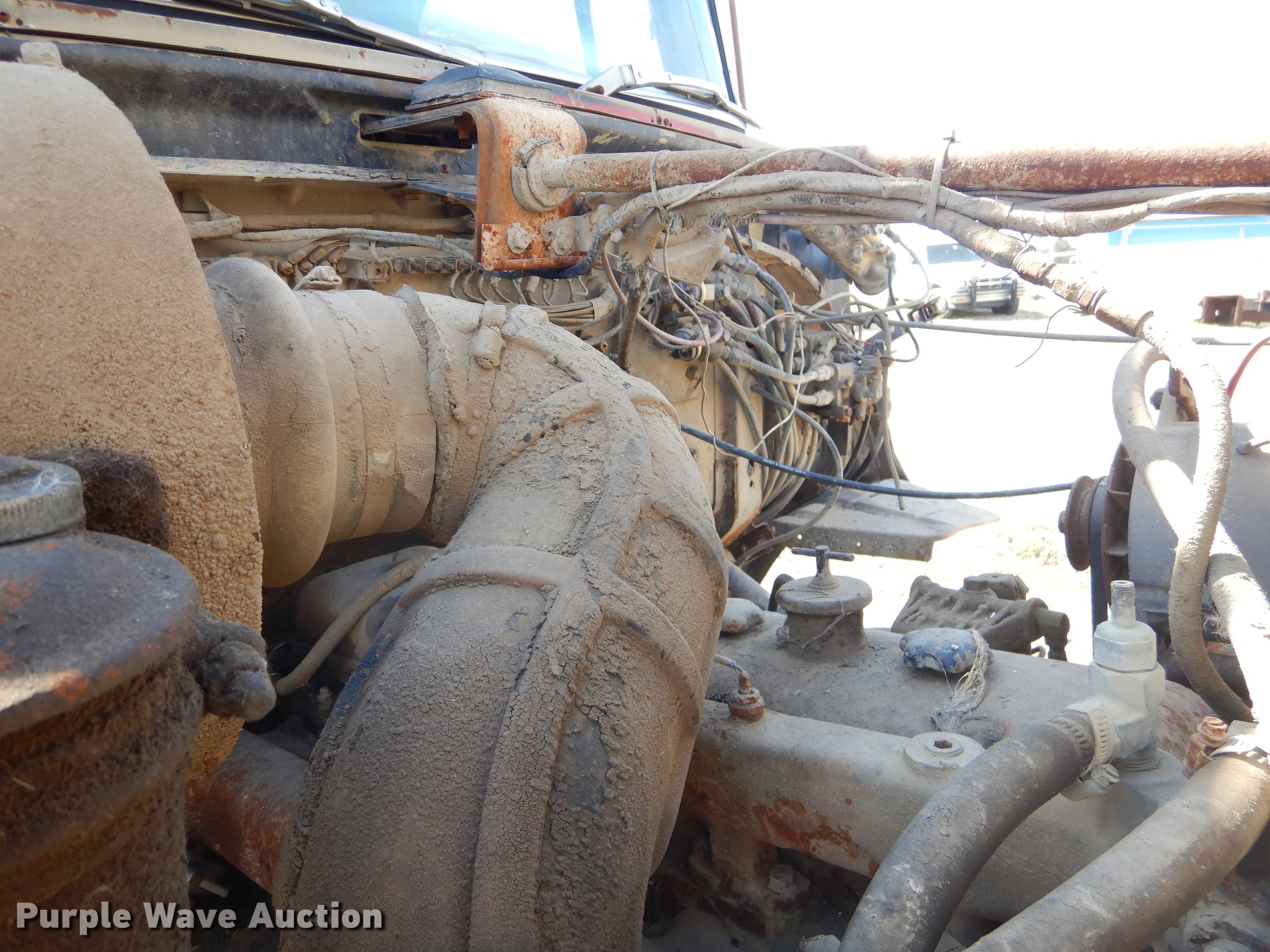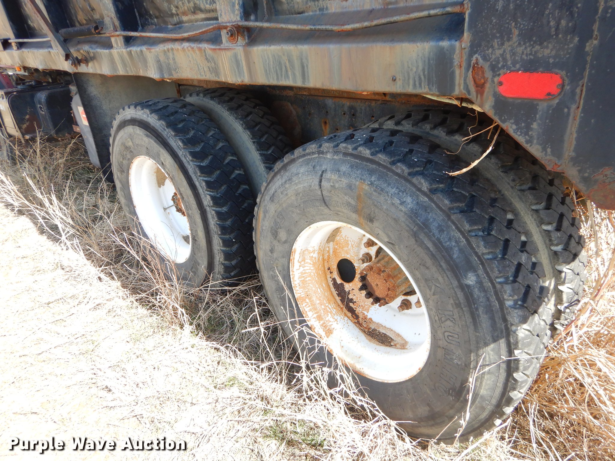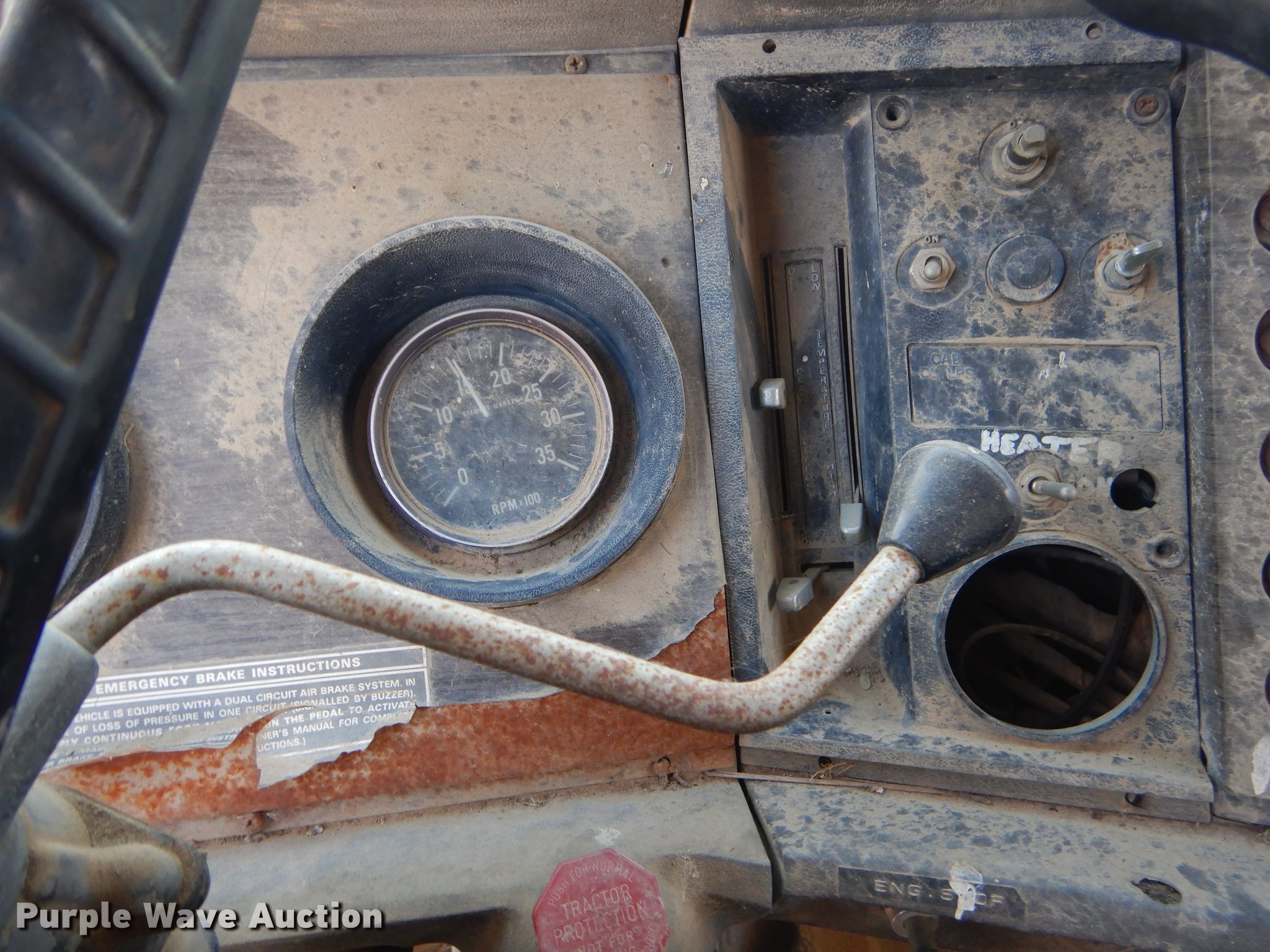 Purple Wave is selling a used Construction Dump Truck in Oklahoma. This item is a 1974 Ford Custom Cab dump truck with the following: 258,755 miles on odometer, Ford six cylinder diesel engine, Spicer 13 speed manual transmission, Tandem axle, Inter-axle differential lock, Heat, Air suspension seat, PTO, 14'L x 96"W steel dump bed, 40" side height, Roll tarp, Single ram hoist, Manual end gate, Dual fuel tanks, Spring suspension, Air brakes, 188" wheelbase, 12R22.5 tires, GVWR 51,000 lbs, Unknown operating condition